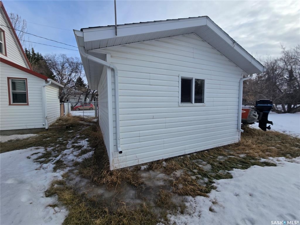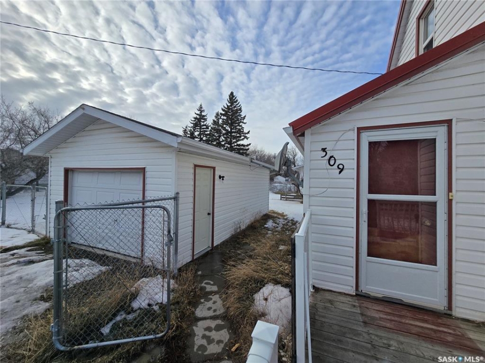 309 Poplar Street, Wolseley is an opportunity to become a home owner at an affordable price. Step in to home ownership in this 1940 - one and half storey home with 3 levels of living and a single detached garage. This beauty provides a total of 3 bedrooms and 2 baths. Main level has 2 porches, main floor laundry/ 4 piece bath, a cute kitchen /dining, small but cozy living room and the primary bedroom. Find hardwood floors in the living room and 2nd level. 2 nd level consists of 1 large bedroom and a small room that could be used for many purposes. Basement will "surprise" you with a large rec space and a small wet bar, a 2 piece bathroom and storage. Assets- new chain link fence, sunny spacious deck, past renos include extra insulation under the vinyl siding, vinyl windows, metal roof, HE furnace. Take a look quick , this property will not last long on the market.