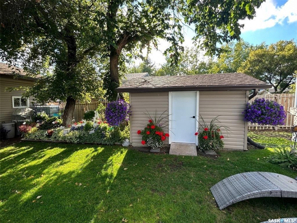 Welcome to 602 Ouimet Street; a beautifully maintained gem in the heart of Wolseley. From the moment you arrive, the pride of ownership is unmistakable. The manicured yard, exposed aggregate driveway and walkway, updated vinyl siding, and charming brick accented front exterior create incredible curb appeal. Recent updates include newer shingles and eaves with leaf covers, offering peace of mind for years to come. Step into your own private backyard retreat; a stunning oasis filled with mature perennials, a stone patio, and a fully fenced above ground pool surrounded by maintenance free wraparound decking. The pool is efficiently heated with solar panels and features a newer liner and added insulation. All pool supplies are included, making this outdoor space completely move-in ready for summer enjoyment. Entering through the attached single insulated garage (with gorgeous epoxy floor), you're welcomed by a convenient main floor laundry and half bath. The main level also offers a spacious kitchen and dining area, a bright and inviting living room, two comfortable bedrooms, and a 4-piece bathroom complete with a relaxing jet tub and beautiful tile. Downstairs, you'll find even more functional living space with a large family room, an additional bedroom, utility room, and a versatile bonus room perfect for a home office, gym, or hobby space. Throughout the home you'll appreciate the tasteful paint colors, updated flooring, modern light fixtures, and overall meticulous care. All appliances are included, along with a large rain collection tank for added convenience. This is truly a move in ready home in one of Wolseley's most desirable locations. Don't miss your chance to make it yours.