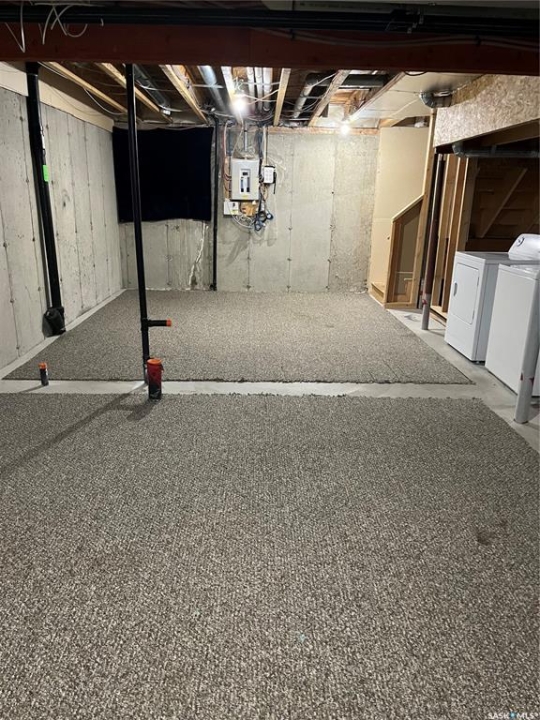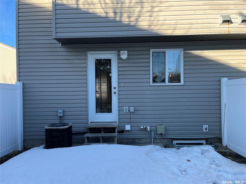 Step into this inviting two storey townhouse style condo located in Regina's desirable Lakeridge neighbourhood. This end unit offers a bright, open concept floor plan with 1,145 square feet of living space. Large living room flows seamlessly into the dining space and kitchen making it perfect for entertaining. Kitchen features maple cabinets, ample counter space, a functional island, pantry for additional storage and appliances which are included. Finishing off the main floor is a 2 piece bathroom located directly off the kitchen. Upstairs you will find 3 well sized bedrooms and a 4 piece bathroom. The unfinished basement provides excellent potential for future development and includes a laundry area with washer and dryer already in place. Outside enjoy a small yard with partial PVC fencing, ideal for a bit of outdoor space without the upkeep. Two electrified parking stalls are included and conveniently located directly in front of the unit. Situated close to all north end amenities such as grocery stores, coffee shops, retail and close proximity to an elementary school and two high schools. Don't miss your opportunity to check out this property.