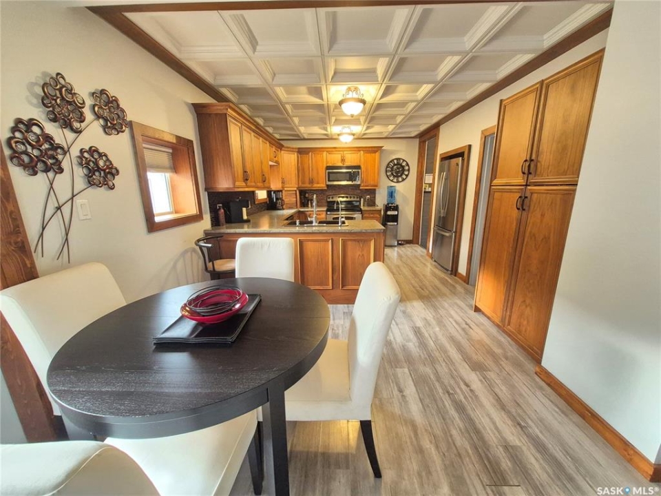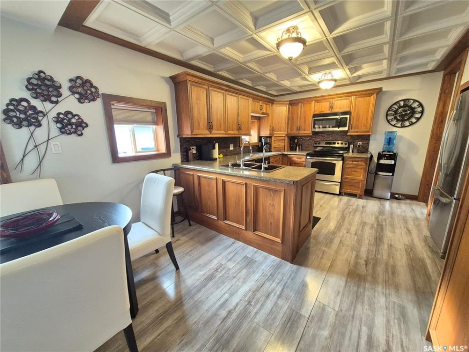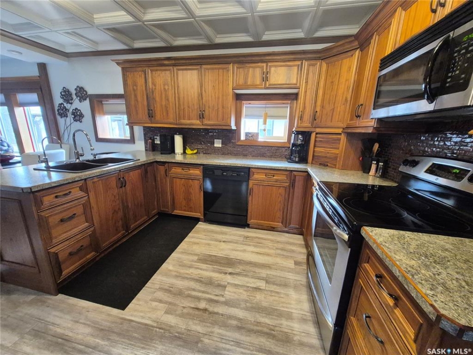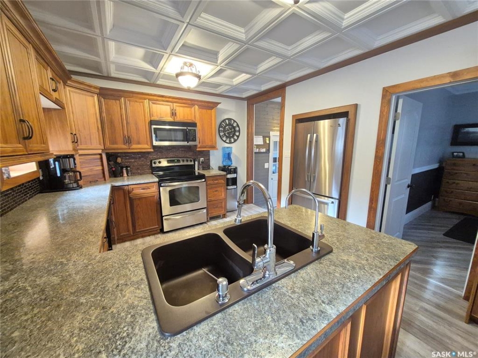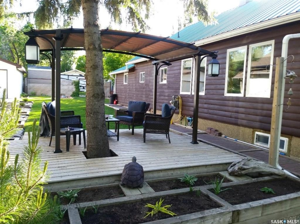 Welcome to this beautifully finished home located in the friendly community of Radville! From the moment you walk in, you'll appreciate the bright, spacious living areas filled with natural light and thoughtfully designed for comfortable everyday living. The stunning custom kitchen offers plenty of workspace and storage, making it perfect for cooking, entertaining, and gathering with family. Convenience continues with main floor laundry and a functional Jack & Jill bathroom layout. PVC windows and maintenance free metal roof and newer water heater add efficiency and peace of mind. Step outside to a well landscaped yard featuring a dog fence, large deck complete with gazebo, storage shed, and an impressive workshop — ideal for hobbies, projects, or extra storage. Additional features include reverse osmosis and water softener systems (currently rented and can be transferred to the new owner if desired). Fridge, stove, dishwasher, microwave, washer, dryer, garburator sheds and gazebo included! A fantastic opportunity to own a stylish, well cared-for home with great indoor and outdoor spaces — ready for you to move in and enjoy! Contact for your tour today!