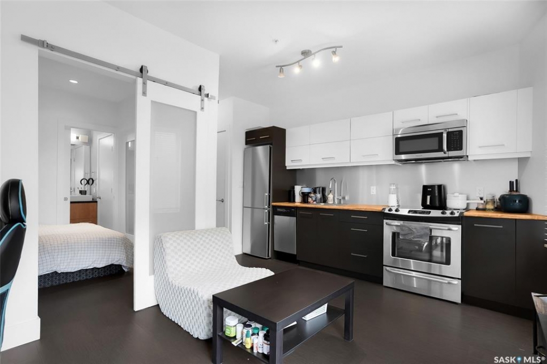 When you buy in The Banks, you're not just purchasing a condo — you're stepping into a lifestyle. A vibrant, walkable, community-driven way of living where minimalism meets convenience, and everything you need is just outside your door. Welcome to #325 – 404 Ave C North. A stylish studio designed for modern living, complete with underground parking and offered at an attractive $199,900. The true magic here is the setting. Step outside into a beautifully designed courtyard surrounded by local coffee shops, farmers' markets, salons, massage studios, and boutique services. Grab your morning latte downstairs, meet friends for an evening drink, or take a short stroll to River Landing and the river trails. This is urban Saskatoon living at its best. Inside, the space is thoughtfully designed to maximize function without sacrificing style. The fully equipped kitchen includes fridge, stove, dishwasher, and microwave hood fan. The multi-functional den with dual sliding doors creates flexibility for a bedroom, office, or guest space. A full four-piece bathroom and in-suite laundry add everyday convenience. Whether you're a first-time buyer embracing a simplified lifestyle, a student wanting walkability, or an investor seeking a high-demand property, this unit checks the boxes. The seller reports zero vacancy and consistent demand — plus there is excellent short-term rental potential. The underground parking stall is the cherry on top, offering safety and comfort year-round, along with a dedicated storage unit. And as an owner, you'll enjoy access to multiple rooftop patios — ideal for relaxing evenings, entertaining friends, or soaking in the city skyline. Students. Investors. First-time buyers. If you've been waiting for an opportunity to live where energy, community, and convenience meet — this is it.
