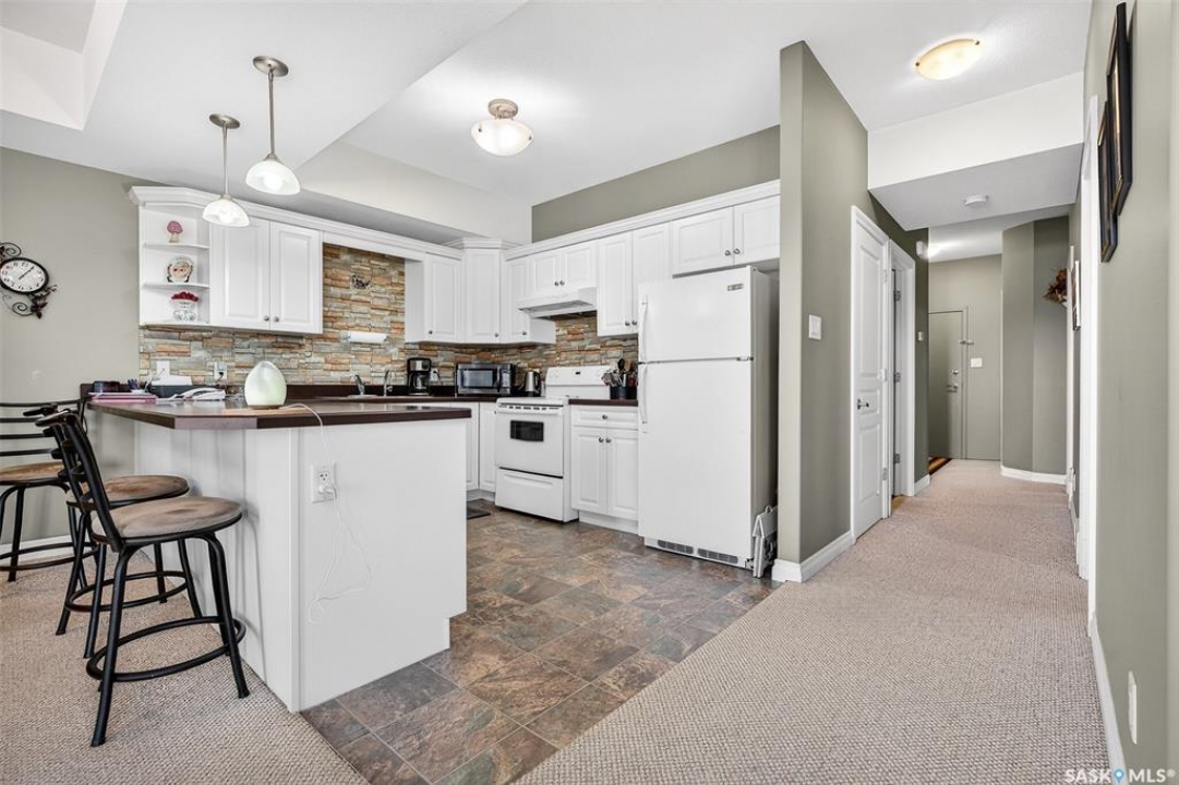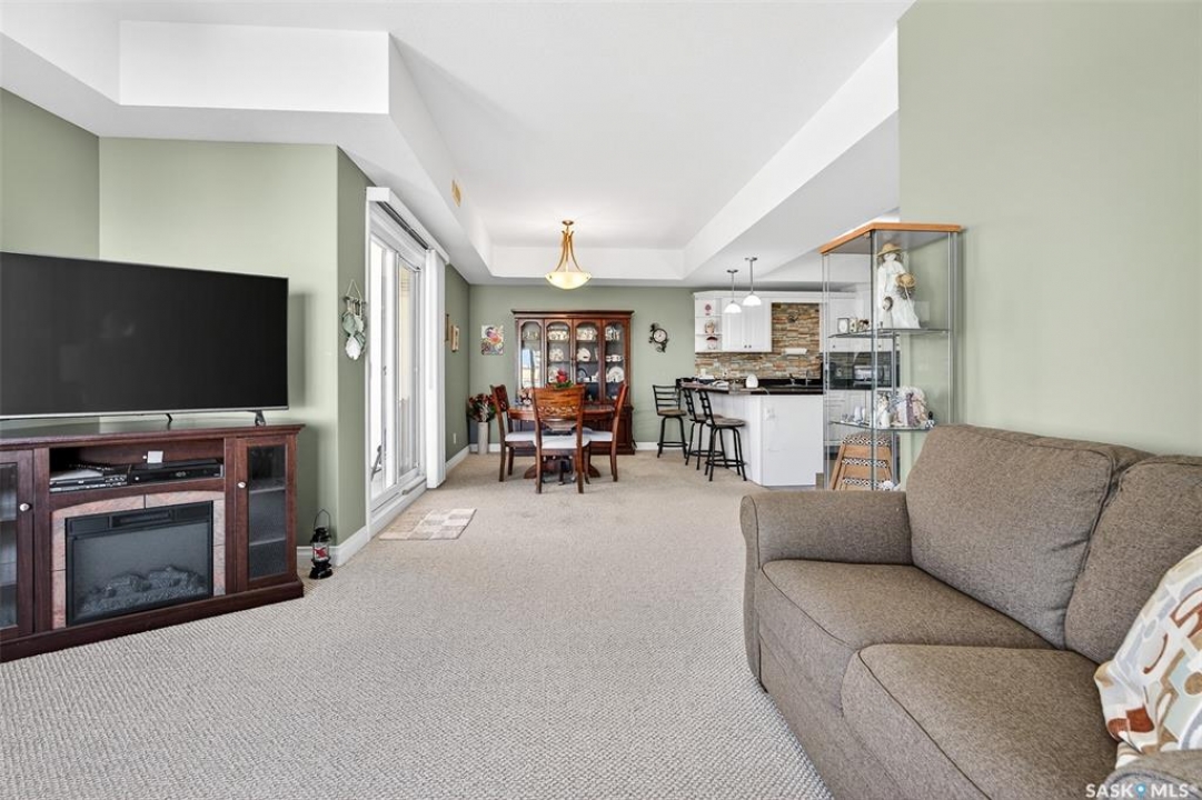 Welcome to this spacious 1,310 sq. ft. condo in Fairview Manor offering spacious, single-level living with a thoughtfully designed open-concept layout. The bright and inviting main living area seamlessly connects the kitchen, dining, and living room — creating an ideal space for both everyday living and entertaining. Large east-facing windows allow for an abundance of natural light, while direct access to the balcony provides the perfect spot to enjoy your morning coffee. The kitchen is well-appointed with ample white cabinetry, offering generous storage and counterspace. This condo features two comfortable bedrooms plus a versatile den that can easily serve as a home office, extra storage area, or hobby space. The spacious primary bedroom, complete with a walk-in closet and a three-piece ensuite for added comfort and convenience. A large main bathroom incorporates in-suite laundry, enhancing functionality without compromising space. You will appreciate the added benefits of elevator access to all floors, heated underground parking, extra storage space in the lower level, a guest suite for visiting family and friends, a furnished lounge, and a welcoming common room — all contributing to a lifestyle of comfort and ease. An exceptional opportunity for those seeking low-maintenance living with generous space and desirable amenities.