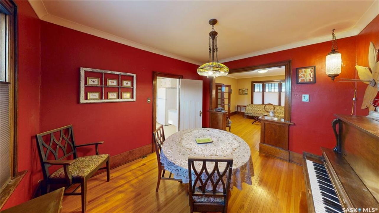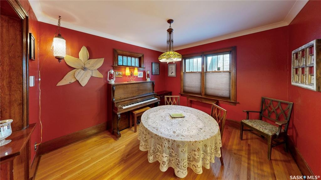 Welcome to 1517 Victoria Avenue in the General Hospital neighborhood area of Regina just minutes from downtown, as well as multiple local restaurants and the General Hospital itself. This 3 bedroom, One and � Storey house was built in 1925 and is 1085 sqft in size and sits on a 3377 sqft lot. The front of the home has landscaping and a brick path to the front door. The fully fenced, south facing backyard has a lawn, patio and garden area. There is also access to the oversized single detached garage which has both 220 V plug-in and a heater. There's also an additional parking pad adjacent to garage. You enter the home into the adorable covered porch. The living room is overflowing with original character with its hardwood floors, crown moulding, built-in cabinetry, classic piano windows and large picture windows with bottom up top down blinds and a decorative fireplace. The dining room has ample space for a table and chairs, and has a vintage, stained glass hanging feature light that enhances the home's historic appeal. The kitchen thoughtfully blends modern convenience with classic style. Something rarely found in homes of this era. It has a plethora of electrical outlets to run every kitchen appliance, a pull out cabinet, pantry space, lots of counter space and the fridge, stove, dishwasher and microwave are all included. Upstairs on the second floor the first stop is a good sized bedroom followed by the larger primary bedroom complete with two closets and crown moulding. There's a 4 piece bathroom with a clawfoot tub followed by the third bedroom. The full basement is unfinished but offers plenty of potential to expand your living space. It features a cold storage room, laundry area with included washer and dryer and the owned furnace. This home also has central air conditioning, an owned alarm system and the water and sewer lines were both replaced last year proving peace of mind for years to come. Some of the vintage furniture is also negotiable!