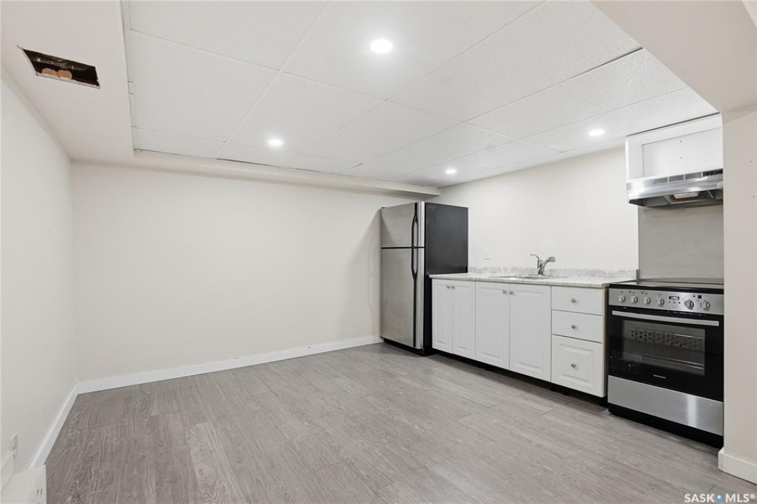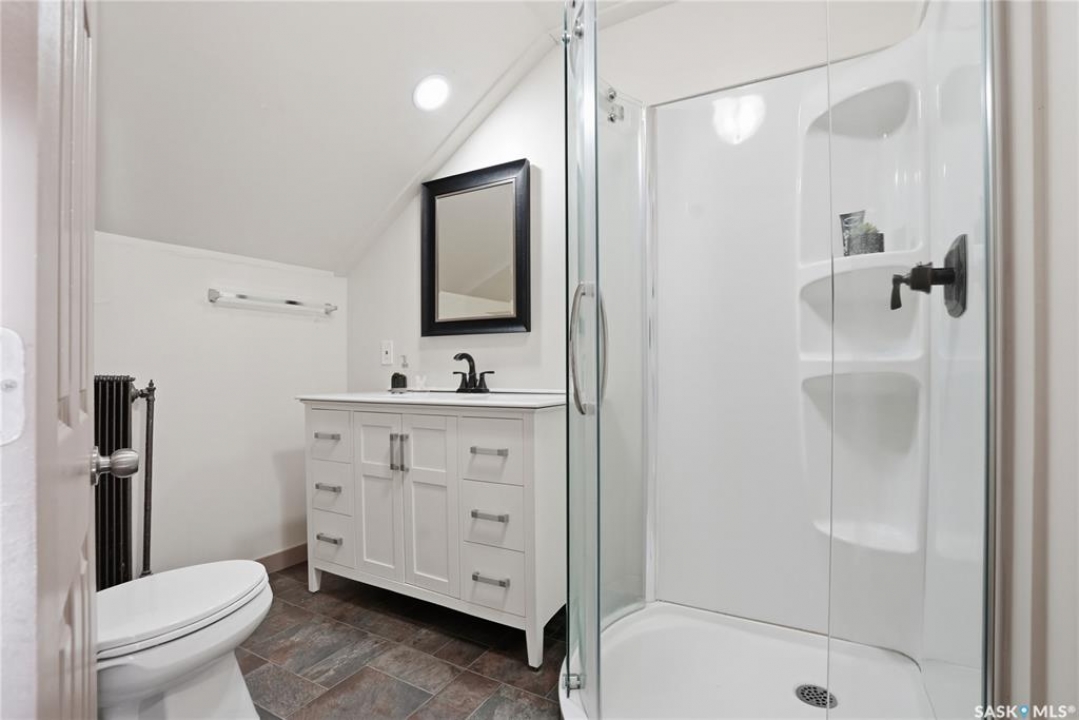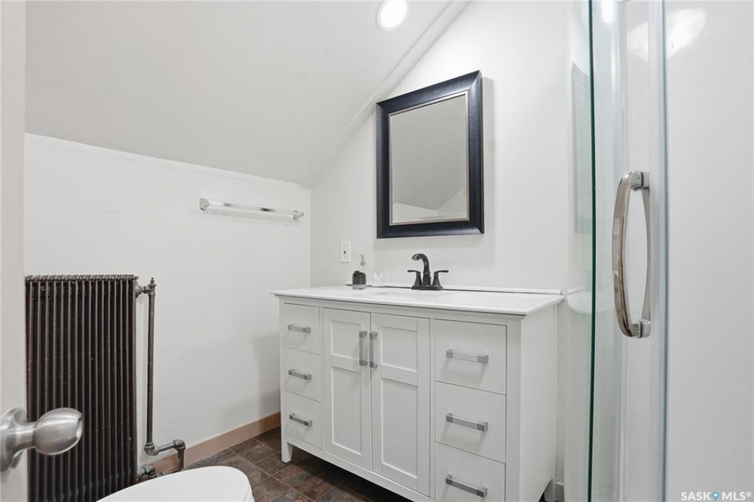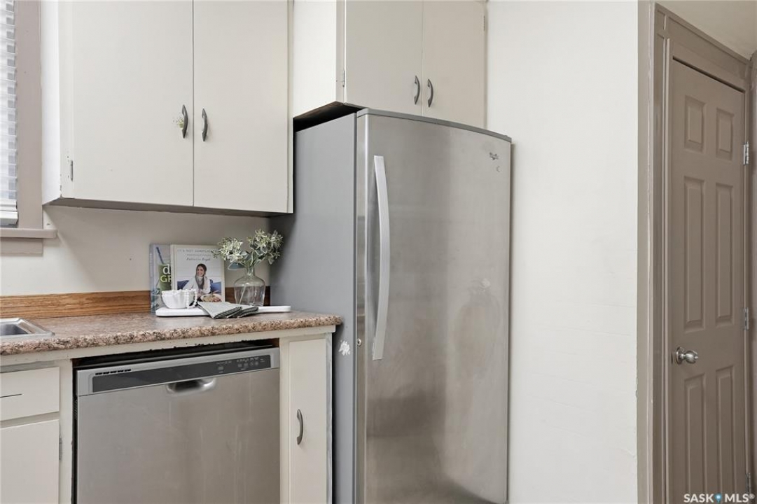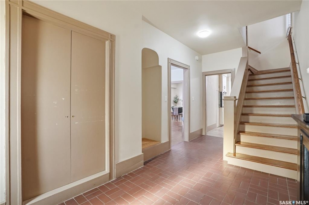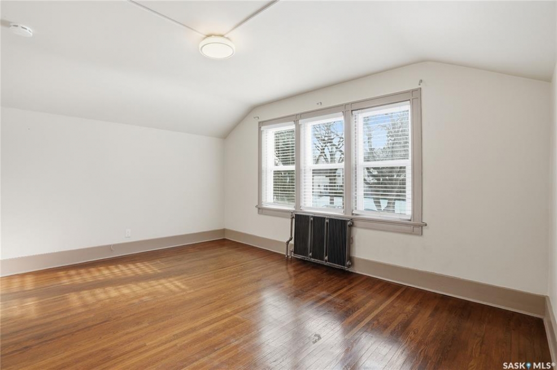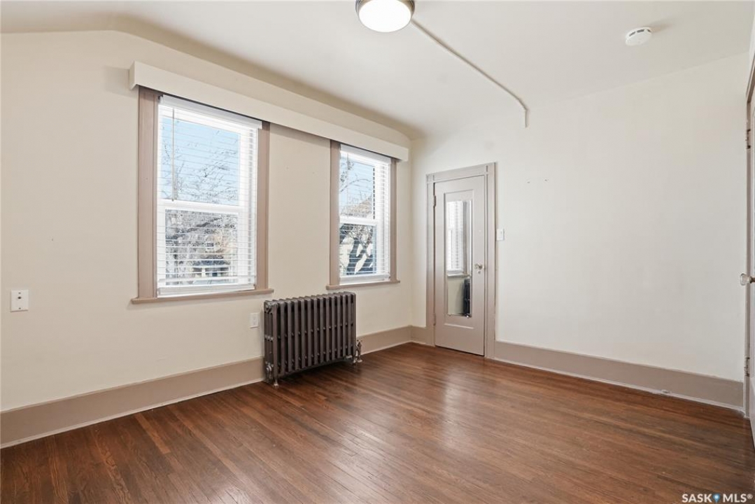 Opportunities exist here in so many ways — investment property, holding property, viable rental with several income streams incl 6 parking stalls, future Residential Corridor redevelopment, multi-family site, or luxury home building site: subdivision to 2 x 30' lots. This well-cared-for and updated home sits on a 60x140 ft lot on beautiful Elliott St E, 1 block to the University of Saskatchewan- the property offers incredible flexibility! Featuring a side entry, two kitchens, 4 beds on the second level, 3 beds in the lower level, and three bathrooms, this property presents strong rental potential or comfortable liveable holding value. Updates include shingles, windows (2025), updated boiler and 300 amp electrical, much more. The rear of the property provides an attached single garage plus six parking stalls, offering excellent additional revenue potential. The storybook front façade welcomes you with a winding sidewalk leading to a front entry. Inside, a foyer opens to the spacious and open great room showcasing the original fireplace with built-in shelving and beautiful corner windows. A large formal dining room is attached off the living area. The main floor also includes a large bedroom (or study) with additional built-ins, a 2-piece bath, and a roomy closet. The adjacent kitchen features wood cabinetry, a peninsula with eating bar, stainless appliances including a Bosch wall oven. Oak treads lead to the second floor where you will find three very large bedrooms, all with refinished hardwood floors, and a spacious 3-piece family bathroom. The fully dev basement offers a separate entry and includes a kitchen, living room, 3 bedrooms, laundry, and a 4-pc bath. The 8400 sq' lot presents long-term potential, including the option for subdivision into 2 x 30' lots or future redevelopment under the Corridor Residential Community Plan, allowing for potential Multiple Unit Dwelling development (see members' remarks), subject to development standards.