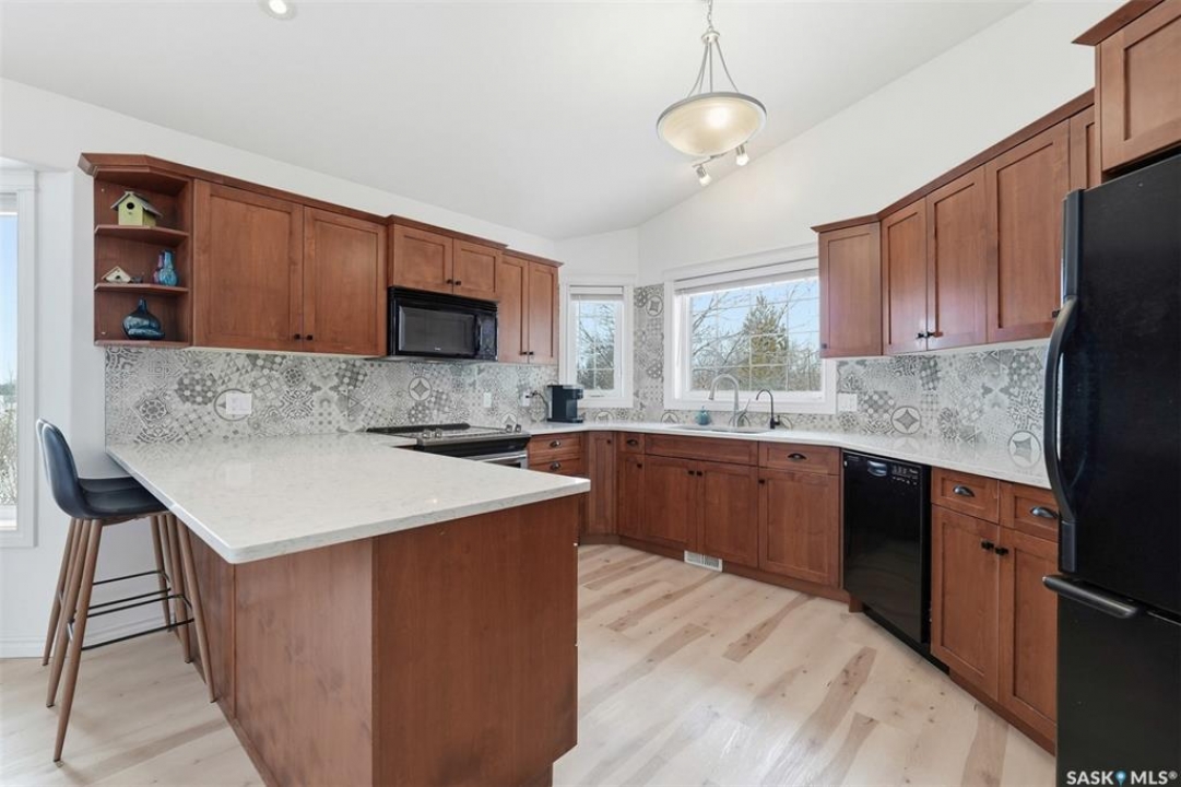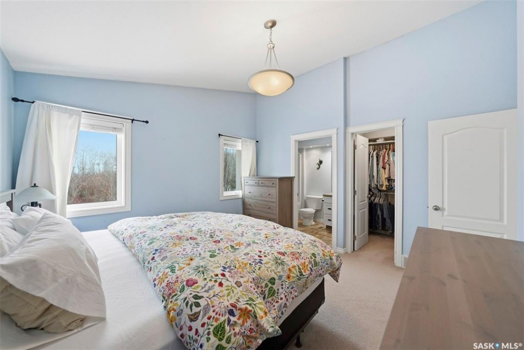 Rare opportunity to own a 14-acre acreage just 10 minutes from Saskatoon city limits. The perfect blend of privacy, efficiency, low utility costs and future potential. Built in 2005 by Ehrenburg, this quality home offers nearly 2,400 sq ft of fully finished well laid out living space. The layout is functional and inviting, with loads of natural light & numerous recent upgrades including new shingles (2023), professionally renovated bathroom (2021), updated flooring (2021), and a patio stone paved driveway. If vaulted ceilings, custom Alder wood cabinets, quartz countertops and countless other special touches don't do it for you, then surely the warm wood burning fireplace in the family room will. Operating costs here are exceptionally low thanks to the geothermal heating system. With healthy potable well water (reverse osmosis in place) and utilities limited to electricity only, this property offers highly efficient and predictable monthly expenses that are in uncharted territory for savings. The septic system is liquid discharge — considered best-case for rural properties — providing simple, low-maintenance operation with no anticipated future complications. Outside, enjoy a mature, established yard site with space to expand, develop, or simply enjoy the peace and quiet of acreage living under open Saskatchewan skies. This acreage is not inside a subdivision so there are no excessive building restrictions, architectural controls or animal restrictions. This property is a beautiful canvas that can be enjoyed today but could easily be transformed into a horse lover's dream. Opportunities this close to Saskatoon don't come up often - especially on 14 acres with a high a quality home, energy efficiency, a beautiful well treed and private yard with subdivision potential. Not to mention it's a paved commute to Saskatoon with very little gravel to your front door. Contact your favourite realtor today for an exclusive showing!