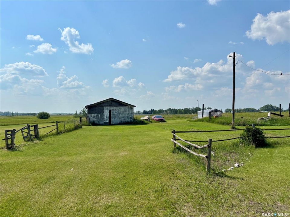 NEW LOW PRICE!! Affordable Acreage living calls! Great opportunity in a prime location. Nice 3+1 Bedroom Raised bungalow just 7 minutes from town south on Highway 7 and adjacent to popular Sitina Estates!. Nice raised bungalow, new Vinyl plank in Kitchen being installed. Lots of potential for upgrades. Great yard setting with Shelter belt, Firepit, mature trees, and west facing deck. Good L-shaped layout with laminate floor, large main bath with jetted tub. White Heritage Kitchen, nice Eating area with Garden doors to deck. Basement offers loads of potential with family room, Bedroom, and direct access to finished and heated oversized single attached garage. Septic tank and holding tank for water. Build equity and your future with this great acreage! Call today!