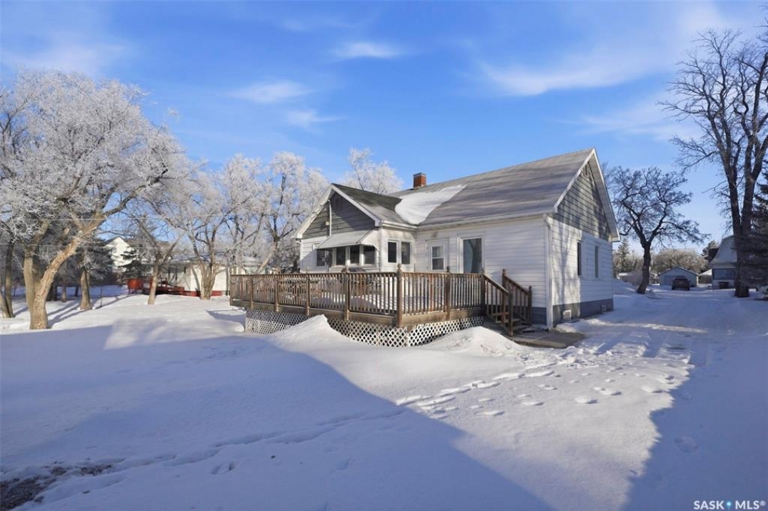 Pride of ownership is evident in this bright, open 3 bedroom bungalow. Floorplan has open flow between kitchen/dining room and living room, with large rooms and tons of natural light. Situated on a huge, park like lot in the centrally located town of Nokomis, this home is priced to sell and is move in ready. As you pull in the driveway, you'll notice the wraparound deck overlooking the expansive back yard. Step in the back door which accesses the huge eat in kitchen with built in bench seating in the dining area, and room for a portable dishwasher. There are tons of cupboards and counter space for the avid cook, and kitchen is open to the bright, spacious living room. Living room spans the west side of the house, with a huge bay window and updated luxury vinyl plank flooring. A small storage room (other) offers storage and closet space. 3 large bedrooms (one currently set up as office) and a 4 piece bath complete the main floor layout. Updates are many, and include windows, furnace, central air, concrete floor and piping in basement, and a 200 amp electrical panel. A central vac with attachments is included. The single detached garage is currently used as storage but has plenty of room to park inside. Nokomis is a progressive community with a k-8 school, daycare, health center, grocery, hardware and drugstore, automotive service station, co-op agro, rec center, craft brewery and more! Located about 1 1/2 hrs from Regina and Saskatoon, 30 minutes from Last Mountain Lake and under 40 minutes to Nutrien Lanigan and BHP Jansen potash mines homes are affordable and the community is welcoming. Call today for your private viewing!