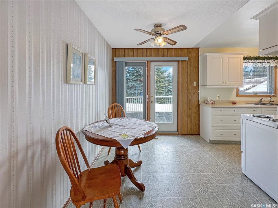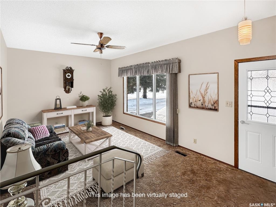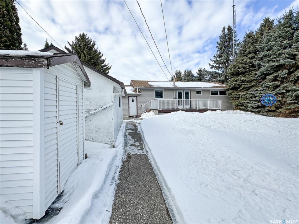 Welcome to this turn-key home in the friendly community of Balcarres — quick possession available! This well-maintained property offers comfort, functionality, and room to grow. The bright galley kitchen features an abundance of cupboards and workspace, making meal prep a breeze. The dining room includes direct access to the private deck — perfect for summer BBQs and morning coffee. The living room is filled with natural light, creating a warm and inviting space to relax or entertain. Upstairs you'll find two comfortable bedrooms, while the third bedroom has been thoughtfully converted into a convenient main-floor laundry. Numerous newer windows throughout the home enhance efficiency and natural light. The air conditioning unit was newly installed in 2022, providing added comfort during warm Saskatchewan summers. Outside, you'll appreciate the mature landscaping with established perennials, a well-treed and private backyard, alley access, and a large garden area for those with a green thumb. The solid foundation offers excellent potential for future development to suit your needs. Balcarres is a full-service community offering a K–12 school, rink, local shops, and essential services — all just a short 10-minute drive to the lake for year-round recreation. Move-in ready and packed with value — come see everything this home and community have to offer!
