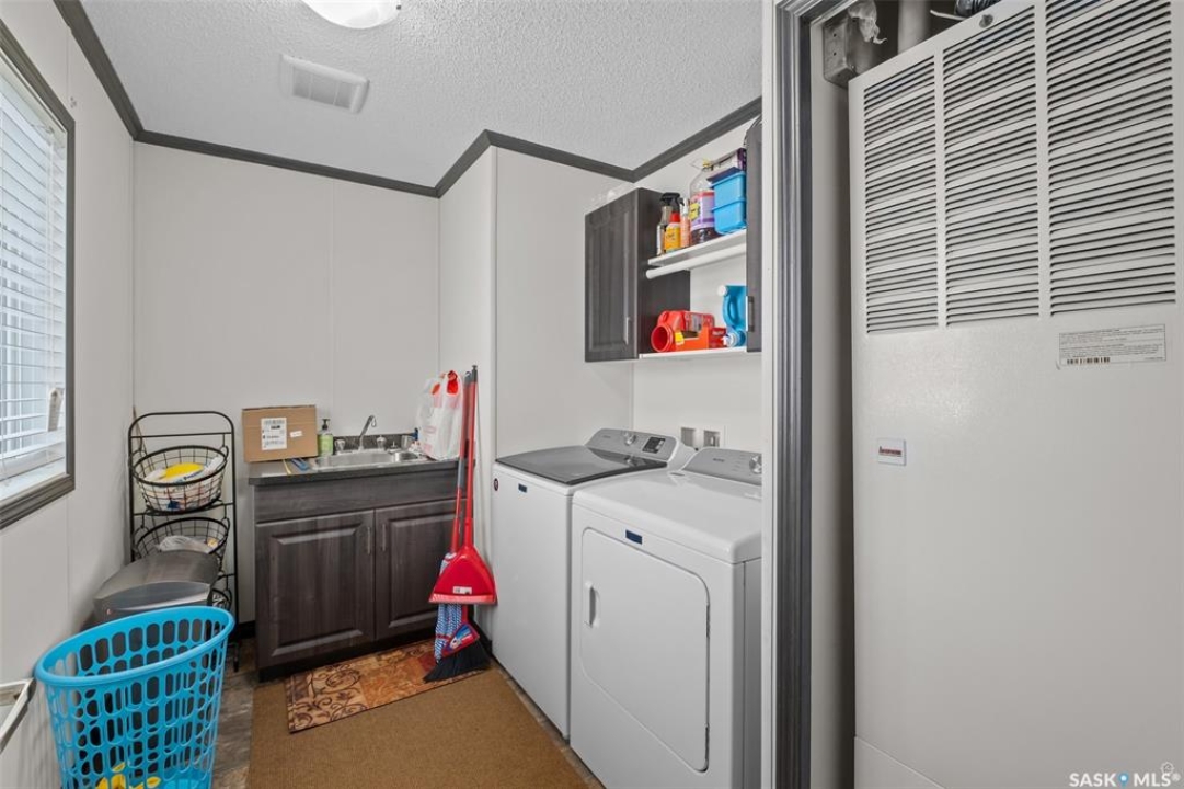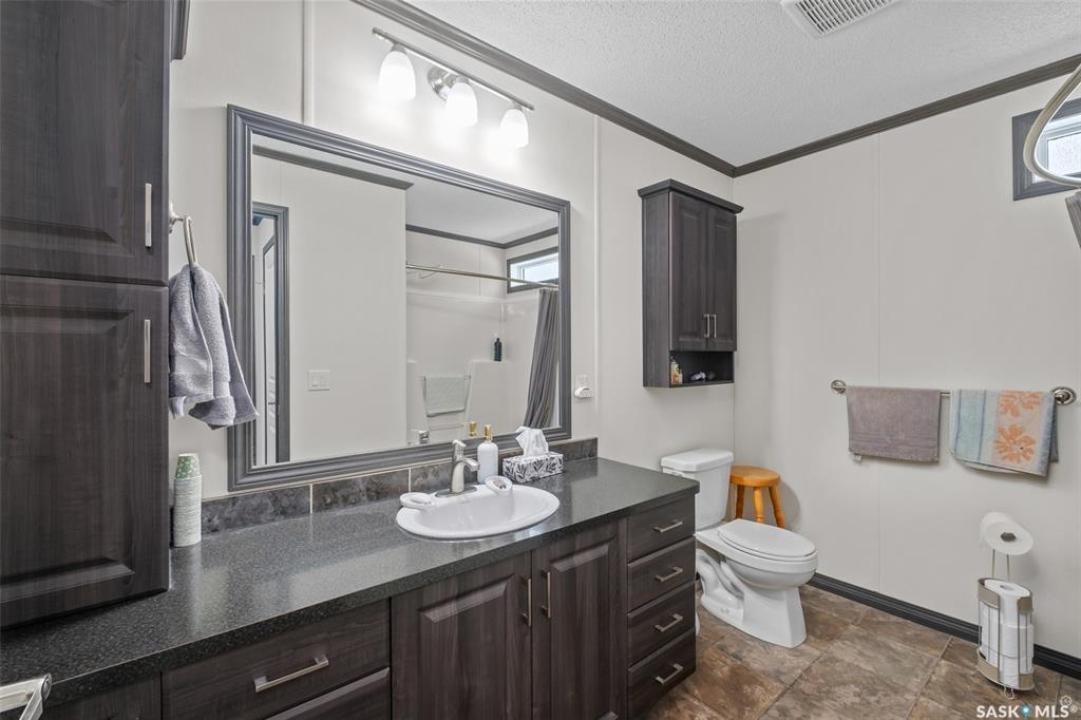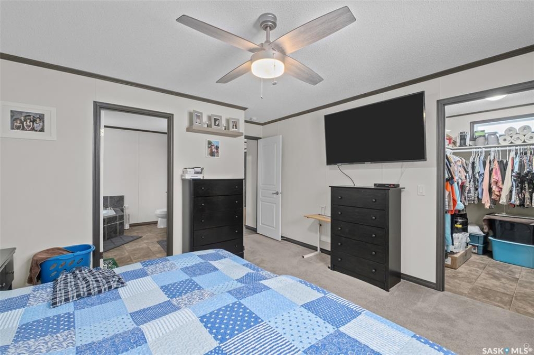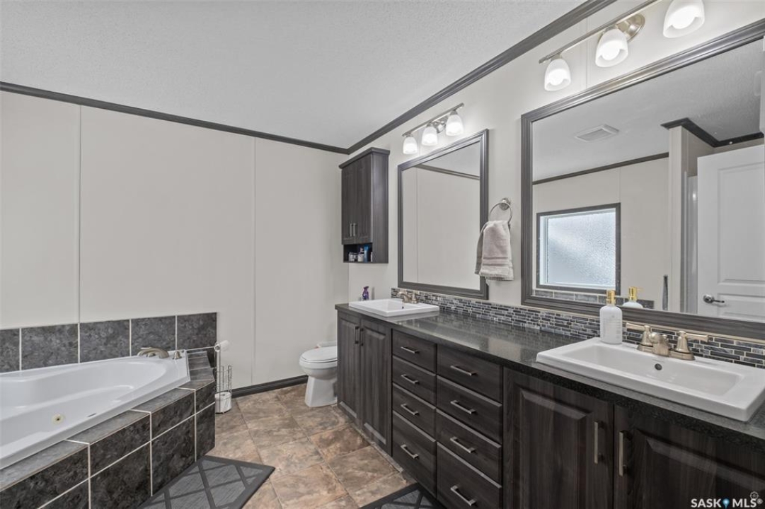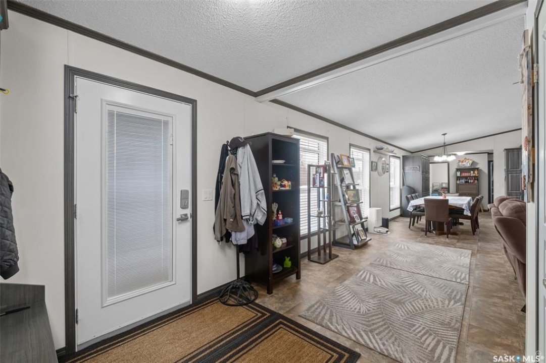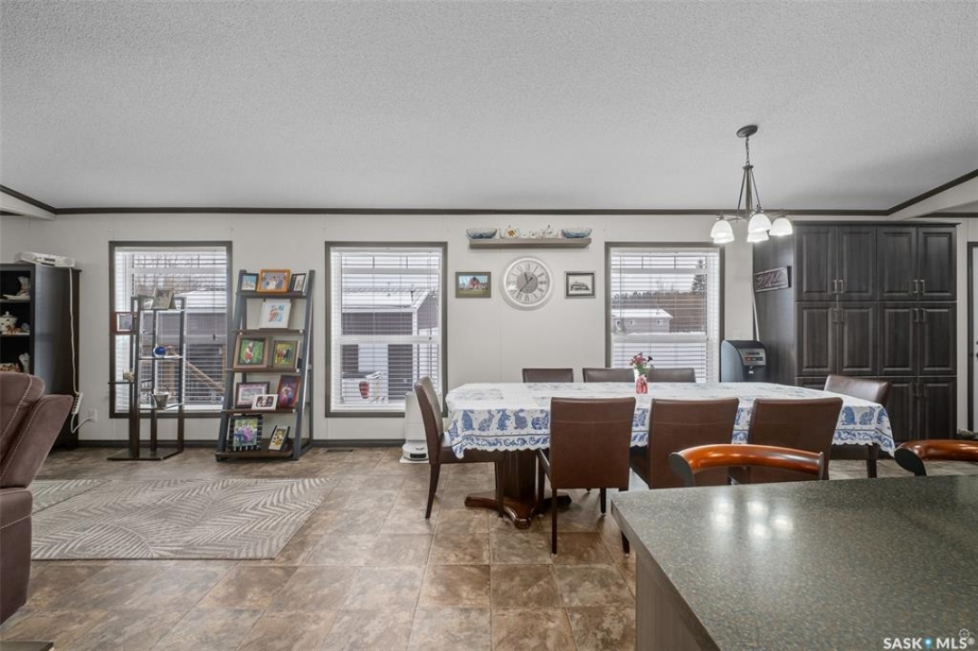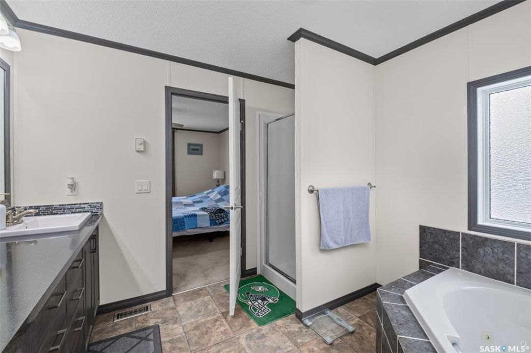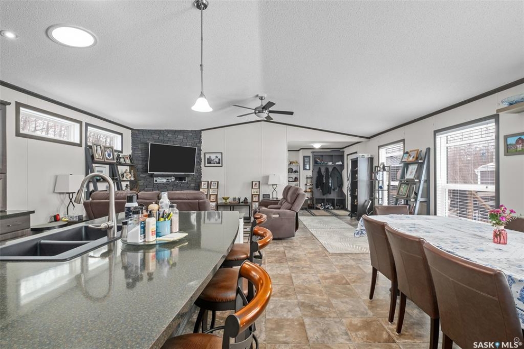 Exceptional 2016 built 3 bedroom and 2 bathroom premier show model manufactured home offering spacious design, quality finishes and small town living just minutes from the city. The open concept main living area is bright and beautifully laid out with vaulted ceilings, an abundance of windows and stylish pot lighting that enhances the modern feel throughout. The living room features a cozy gas fireplace with a dark grey stone surround and the dining area offers plenty of space for a large table. The kitchen showcases rich dark brown cabinetry, stainless steel appliances, an oversized fridge and freezer, built-in stovetop with stainless steel hood fan, built-in oven and microwave and a massive island with bar seating that makes gathering effortless. The primary bedroom offers a private retreat complete with a generous walk-in closet and a luxurious 5 piece ensuite featuring a jacuzzi tub, dual sinks and a stand up shower. Two additional well sized bedrooms, a full 4 piece bathroom and a convenient laundry room with its own sink complete the thoughtful layout. The property includes mature trees and a spacious deck ideal for relaxing or entertaining. A 24 x 32 heated two car garage with 10 foot ceilings and spray foam insulation provides ample space for vehicles, storage or a workshop. Located in the welcoming community of Holbein, just 20 minutes from Prince Albert and 10 minutes from Shellbrook, this property delivers rural charm and everyday convenience. A fantastic opportunity to enjoy modern comfort in a quiet small town setting. Call today to take the next step.