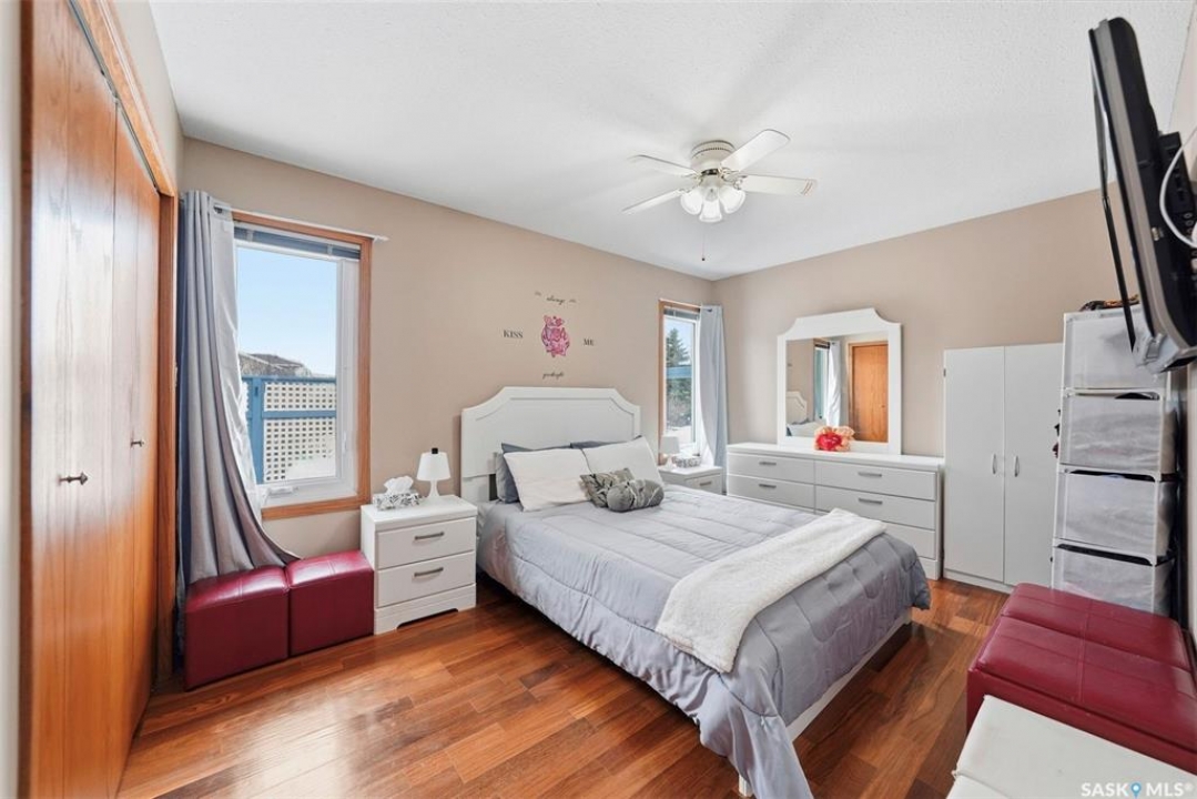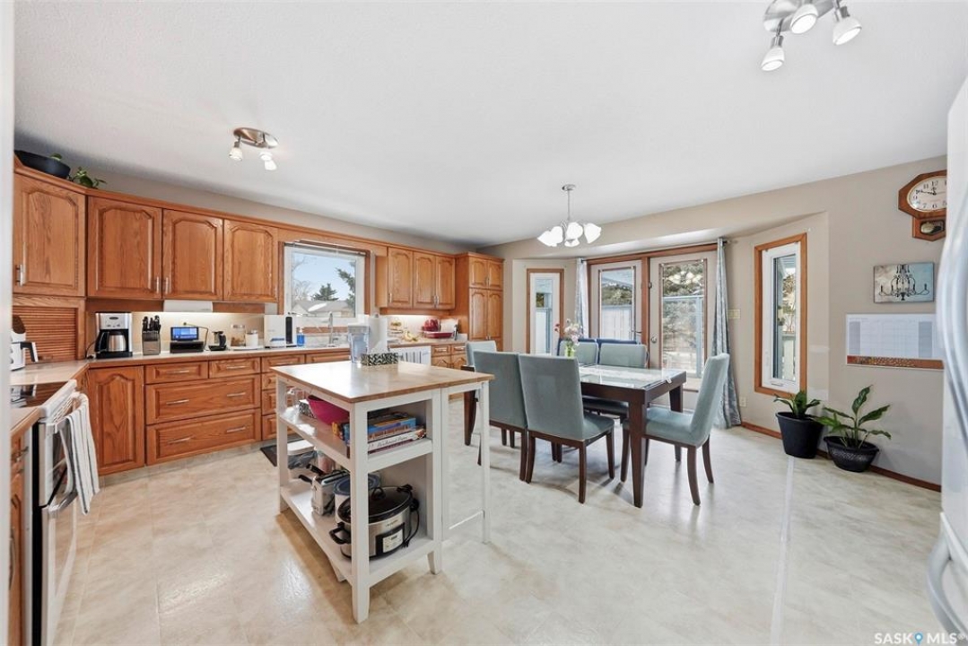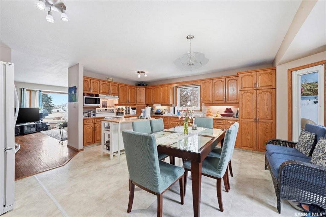 Welcome to this beautifully kept home in the heart of Watrous! The inviting front entry leads into a spacious living room filled with natural light. The main floor features a huge eat-in kitchen with plenty of room for family gatherings, a full main bathroom, and three generously sized bedrooms — including a primary suite complete with its own private ensuite. The fully finished basement offers even more living space with a large family room, two additional spacious bedrooms with custom study tables in each room, a 4-piece bathroom, a utility area with hobby space, and ample storage. Numerous updates provide peace of mind, including newer windows, shingles, garage door, and basement improvements. Step outside to enjoy the private patio just off the deck, complete with a pergola — perfect for relaxing or entertaining. A natural gas BBQ hookup adds extra convenience. Ideally located close to schools, ball diamonds, and the swimming pool, this home offers comfort, space, and an unbeatable location. Located just 5 minutes from the resort village of Manitou Beach