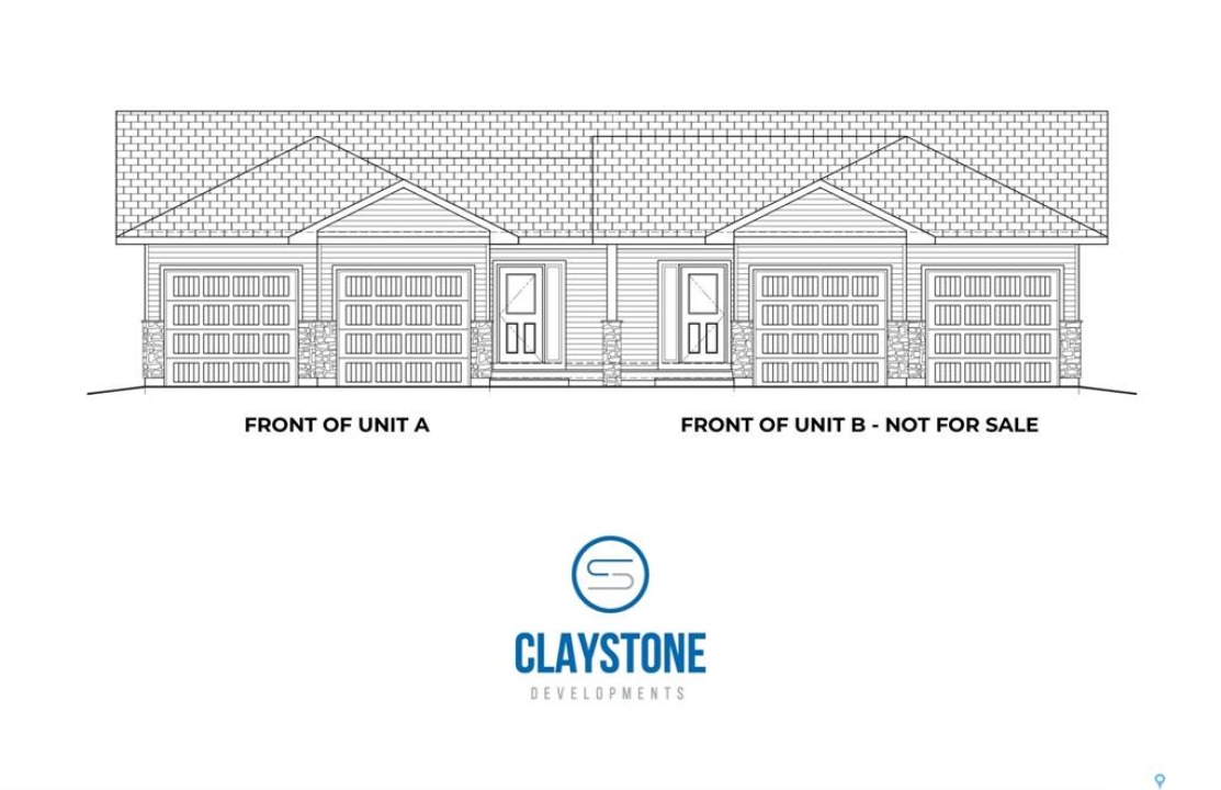 Brand new bungalow-style duplex living in the welcoming community of Hague. Welcome to 43A – 301 Centennial Road, currently under construction by Claystone Developments, with anticipated possession on July 31. This thoughtfully designed Unit A offers 1,145 sq ft of main-floor living, 2 bedrooms, 2 bathrooms, and an attached double garage. The open-concept layout features a bright living and dining area that flows seamlessly into an island kitchen designed for everyday ease and entertaining. The primary bedroom includes a walk-in closet and private ensuite, while a second bedroom and full bathroom provide flexibility for guests or a home office. Main floor laundry adds everyday convenience. Designed with minimal entry steps and true main floor living, this home is ideal for those seeking simplified, low-maintenance living without interior stairs. While not designated as accessible, the layout offers a comfortable, functional design. The attached double garage measures approximately 23' x 24'6” (per builder plans) and provides direct entry into the home. The basement remains undeveloped, offering excellent potential for future development, additional living space, or storage. Included in the purchase price are a concrete driveway, central air conditioning, laminate countertops, completed landscaping, and fencing, with a deck available at additional cost. Hague offers a strong community atmosphere with a K–12 school, daycare, arena, spray park, playgrounds, and local amenities, with Warman and Rosthern both less than 10 minutes away and Saskatoon within comfortable commuting distance. Call today to learn more about this upcoming property!