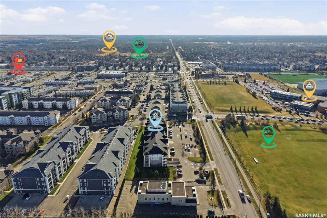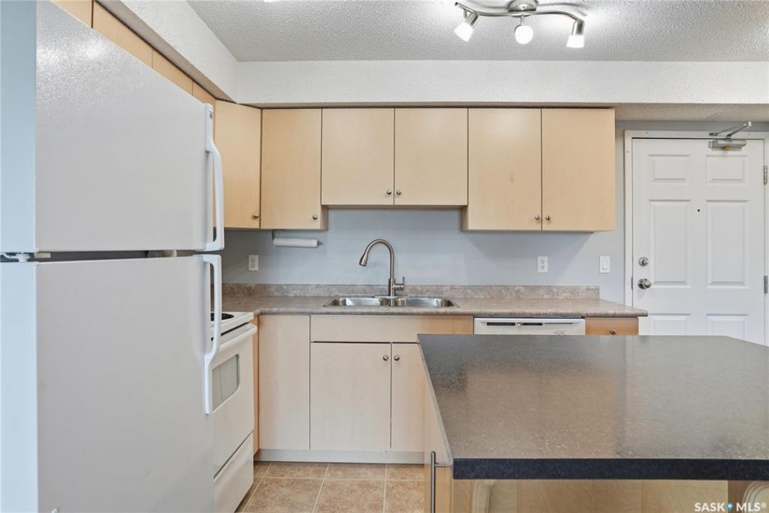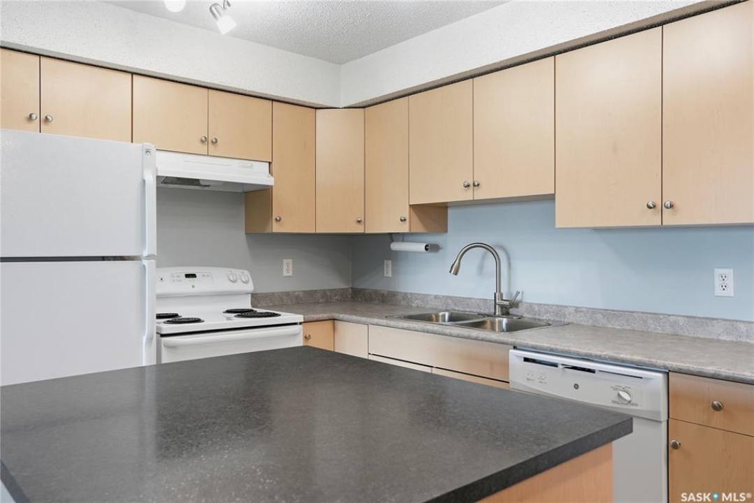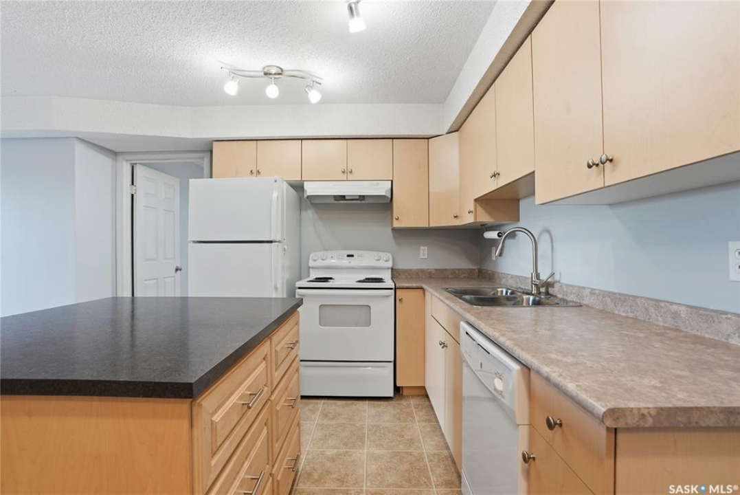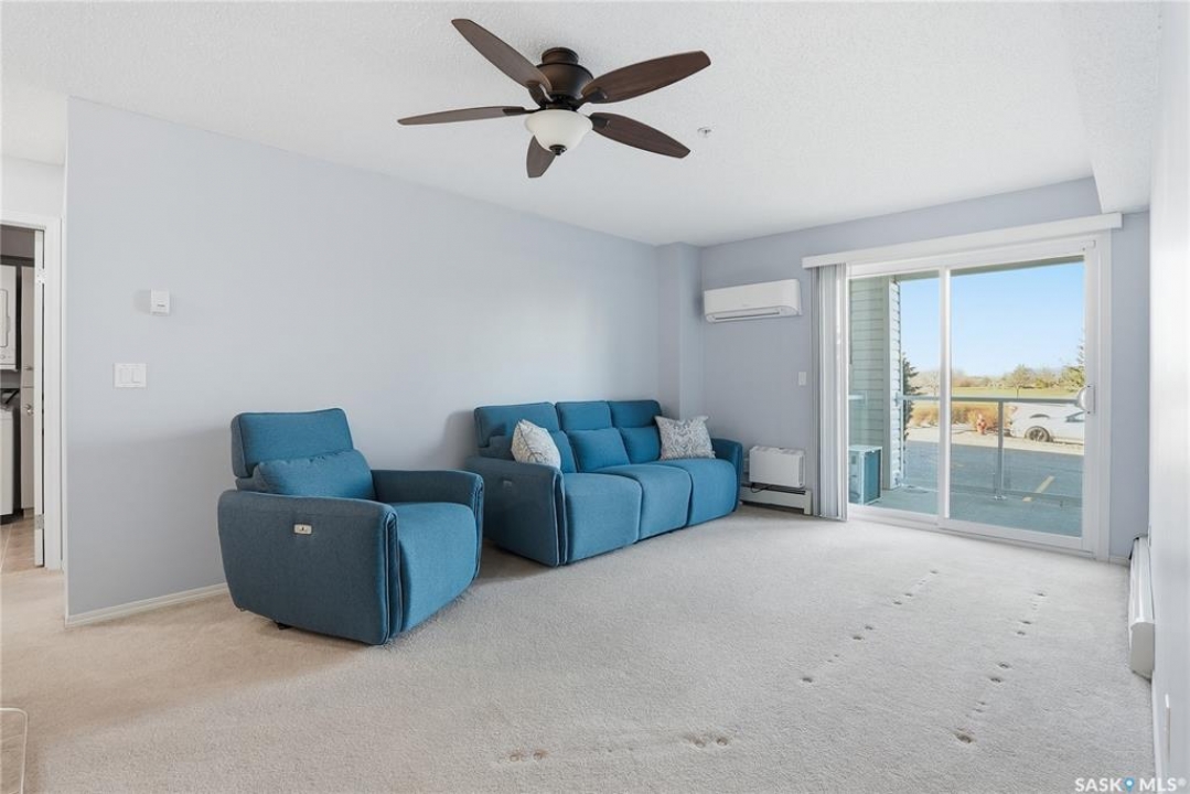 Welcome home to 303 Lowe Road unit 107. West facing views, underground parking, and a 1 + 1 configuration for a primary sized bedroom and large den - this condo shows 10/10! Step inside to find a bright main area with a kitchen that is clean and functional. Ample storage around with a custom built island that hosts drawers on either side! The living room features an updated Air Conditioner and is set for relaxing with plenty of natural light from the large patio doors. From here you have access to your own covered patio space. Inside you will find that the primary bedroom is a great size with room for a large bed and dresser. Opposite to this bedroom is a large den that could accommodate a bed and has an included closet system. The bathroom is a clean 4 piece design with laundry included. Located in University Heights you will find this to be one of the most walkable locations in Saskatoon! Steps to the bus stop and a short walk to grocery stores, restaurants, gyms, and walking paths through the Forestry Farm and the north swale. Amenities include an exercise room, elevator, and plenty of visitor parking. Well cared for and turn-key! Call today to see this exceptional home!