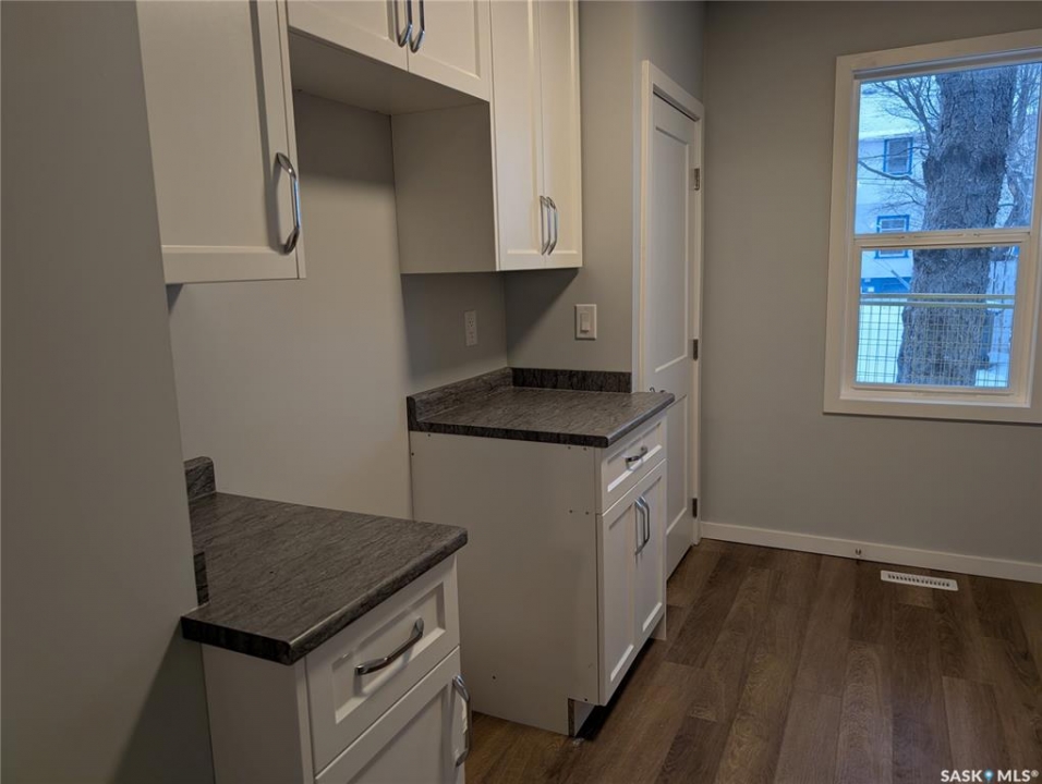 1188-square-foot one-and-a-half-storey home. Totally redone: new flooring, paint, shingles, windows, furnace, water heater, kitchen, bathrooms. Located one block from SIAST. Close to shopping, bus, schools and more. Short walk to downtown. This property is currently vacant and ready for immediate possession. No Appliances Included.