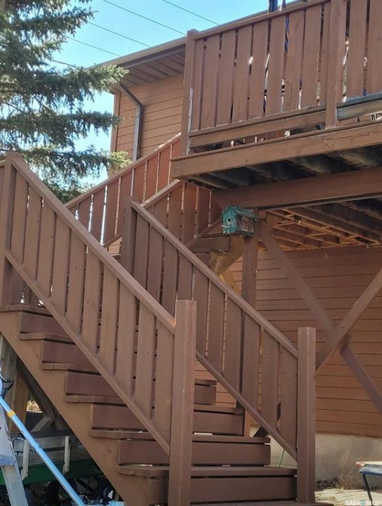 101 3rd St. W is located in Leader, SK. A friendly community in South West Saskatchewan with all the amenities required to live that a quiet, relaxing life in the prairies. This home is huge it will fit even the largest of families. It even has a playroom (could be office, library or craft room) just next to the kitchen, with patio doors that lead out to a deck at the front of the house. The kitchen dining and living room are open concept. The huge kitchen has a large island plenty of cupboard space and views of both the front and back of the property. There are garden doors off the kitchen that lead out to a deck which overlooks the huge, fenced back yard. The Primary bedroom comes complete with a large closet and 3pc ensuite. There are 2 other good sized bedrooms and the main (4pc) bathroom on the top floor. The next floor down is the living room, front entrance and the playroom. The ground floor level is where you enter from the 2 car garage. There are 2 bedrooms, laundry in the utility, 3pc bathroom and a familyroom on this floor. The basement houses a cold storage room, den and a bonus room that would be the perfect place to have a theatre room. There is also a detached garage on this property that was built in 1925 and is 38 x 24. This garage would make a nice work shop or storage for your toys. Don't wait get that showing lined up and check this property out. All measurements are approximate and all information is supplied by SAMA and the owner and can be verified by interested parties.