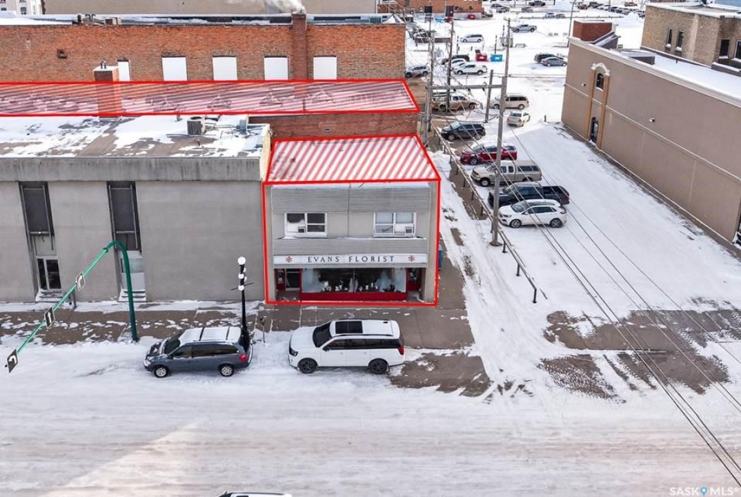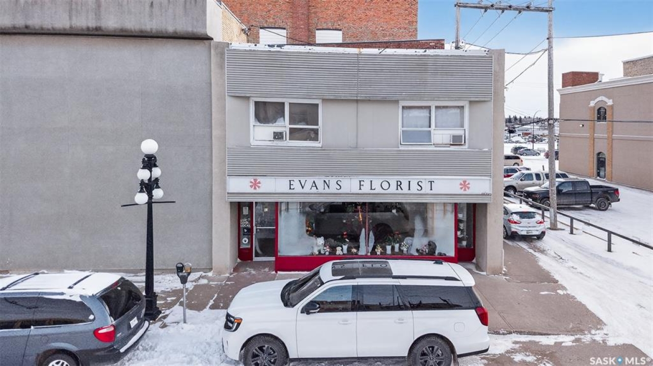FULLY-OCCUPIED PRIME COMMERCIAL BUILDING located in the heart of Moose Jaw's downtown core!! Unique Corner ‘L-SHAPED' construction allows for TWO SEPARATE STOREFRONTS – one on Main Street and one on High Street. Current anchor tenants include EVANS FLORIST, as well as ESSENTIAL ELEMENTS & METAPHYSICAL. The second floor features 8 separate suites – four bachelor suites & four one-bedroom suites, plus common laundry – all fully occupied. Each level is approx. 4000 sq/ft. Combined Rents for all tenants currently generate a gross income of $7590/month, and annually $91,080. Base 2025 expenses include property tax ($9,683), utilities ($18,108), insurance ($12,782). Evans Florist on long-term lease until 2030. All other tenants on monthly term agreements. Property has been well maintained over many decades by same ownership group. A true definition of Pride of Ownership! Steam boiler system upgraded and regular maintained/inspected. Solid masonry structure. Usable/functional basement. A treat to view and an exceptional opportunity to add to your investment portfolio!