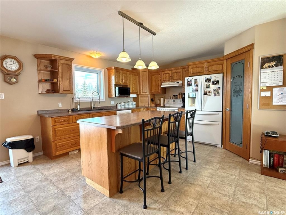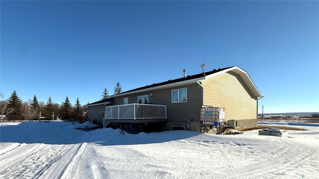 Are you looking for a pristine acreage in a great area close to the Battlefords? Check out this 12.67 acre listing located about 1/3 of a mile south of Denholm. This acreage offers a 1390 square foot raised bungalow built in 2004. The main level offers a large foyer with garage access, bright south facing living room, large dining and kitchen area, a master bedroom with three piece ensuite and walk in closet, a four piece bath, and an additional bedroom. In the lower level you will appreciate the large windows, two good sized bedrooms, four piece bath, family room with French doors, utility room, storage room, and a second access to the attached garage. The utility room offers the furnace, central air, RO system, air exchanger, and water softener. The 28 x 36 attached garage is heated and insulated and has cold and hot water. Outside you will enjoy river valley views to the south, highway access to the north, an 80 x 160 outdoor riding arena, and an 8'x10' heated tach shed. The park like yard includes a garden area, raised box gardens, numerous fruit trees, storage shed, and an awesome play structure. The well pump was replaced in 2025 and the upstairs windows within the last few years. When company arrives for the weekend you will be able to offer a 30 amp camper plug in, fire pit area, and quiet relaxing surroundings. This parcel includes an approximate 4 acres of pasture/hay and an additional 4 acres of alfalfa bromegrass. The school bus will pick up at the front door and North Battleford is only about 15 minutes away. Call today for more info.
