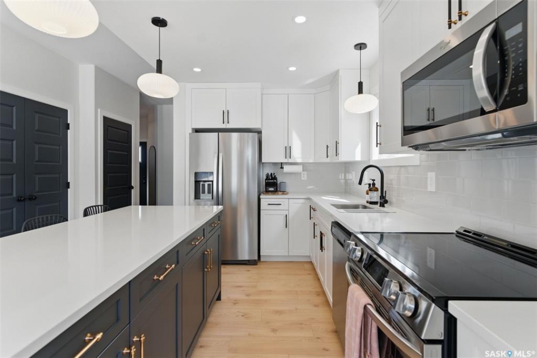 Beautiful fully developed 1560 sq. ft. two story home in the desirable Aspen Ridge. Features 4 beds and 3.5 baths, beautiful kitchen with quartz counter tops. Throughout you will find upgrades such as lighting, mirrors, feature walls and painted doors in a warm inviting navy blue that brings calm and peace to all the spaces. The main floor includes trendy accents complete with ceiling height cabinetry, with a beautiful tile backsplash. The living room features a warm inviting fireplace with an open concept design. The second level you will be greeted with a bonus room with built in cabinetry, perfect for family movie nights! Second floor also has an inviting master bedroom with walk in closet and large bathroom with double sinks. In addition you will find two additional bedrooms, bathroom and laundry room. The basement has been professionally completed with matching features as the rest of the home. The basement consists of a living room space, full bath, large storage closet with sliding barn doors and a unique bedroom that has a walk in closet with an additional full size washer and dryer making this a perfect space for a teenager or in laws!! The back yard has a fully manicured yard completely landscaped (sod in back yard was professionally installed after photos were taken in spring) and fenced, including shed, large two tier deck, pergola, fire pit, natural gas hookup for bbq. Additional feature is a separate gated area that can be used as a dog run or storage. Front yard is fully landscaped with underground sprinklers. The home features an attached heated double garage with finished interior that includes ceiling storage. This home is fully developed and in brand new condition. Home was recently professional appraised at the asking value and documents shown upon request. Includes all kitchen and laundry appliances, window coverings, central air, pergola, shed, and fire pit. Furnishings in the home are negotiable as well agent commission.