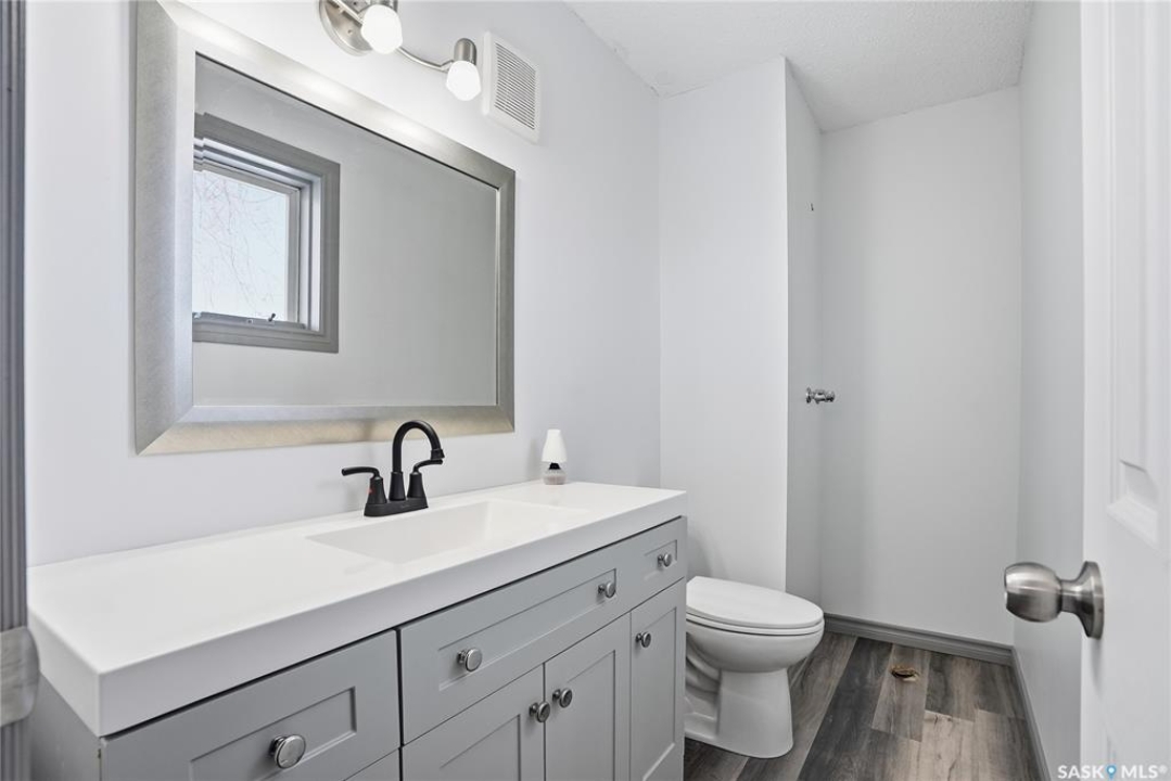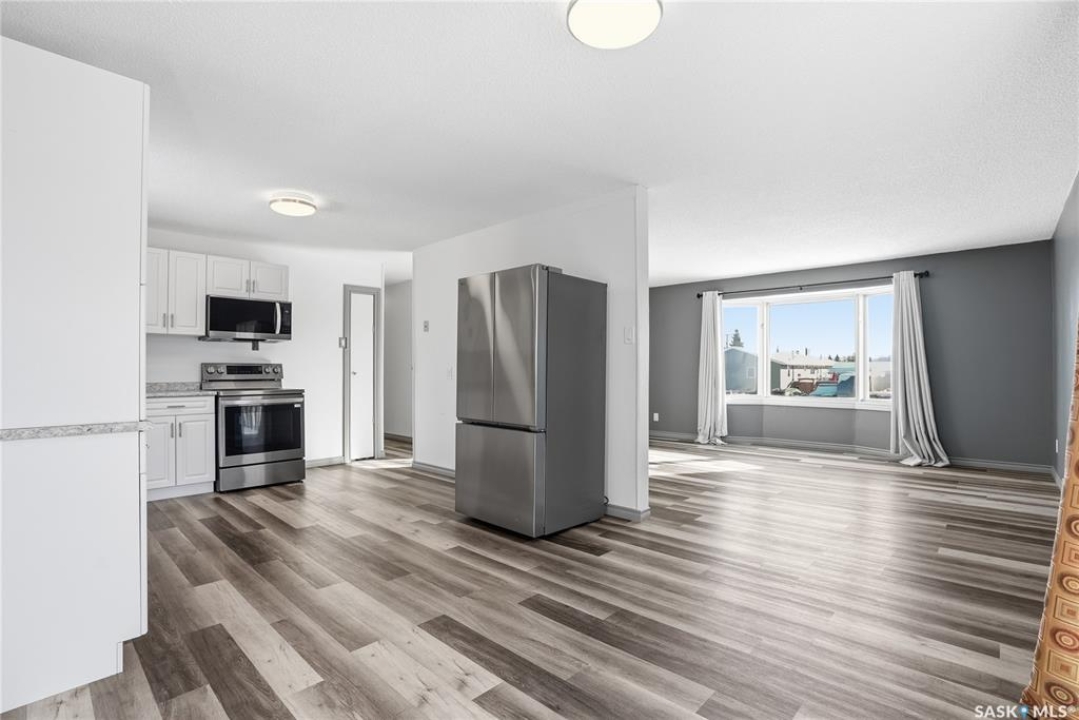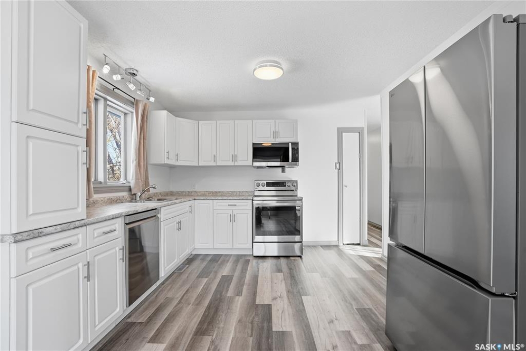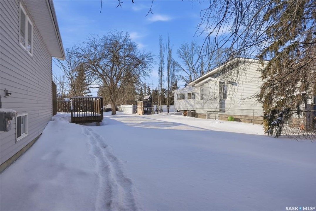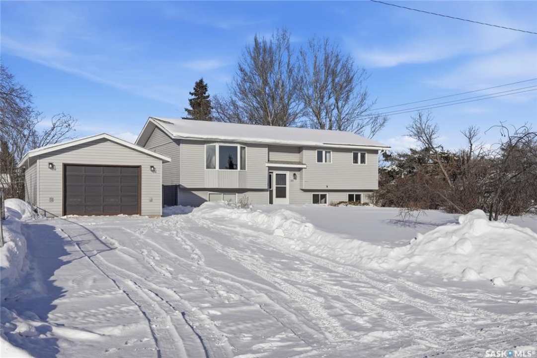 Space with excellent location! Welcome to 413-415 1st Street located in the growing, family-friendly town of Dalmeny, which is 12 minutes Northwest of Saskatoon. This beautiful 1174 sq.ft Bi-level style home with an oversized single detached garage is situated on a double corner lot with walking distance to the Dalmeny High school. There have been many updates including; New flooring, New paint, an updated kitchen, updated bathrooms, New furnace, New water heater, New central air conditioning installed and all newer appliances. The main floor is bright, open and spacious, the living room is front facing and the kitchen has plenty of cupboards with all new appliances installed. There is an updated 4-piece bathroom, 3 good sized bedrooms with the primary bedroom featuring a 2-piece ensuite bathroom that has the option to add a shower. The main floor also has a large dining area that walks out on to a deck overlooking plenty of green space – perfect for backyard entertaining. The lower level is finished with a spacious family room, bonus area, a 3-piece bathroom, 2 additional bedrooms and the laundry/utility room. The seller will be paying out the rental contracts for the new furnace, water heater and central air conditioning that were installed. This perfect family home comes complete with all appliances, central a/c, washer, dryer and all of the window coverings. (The tax total is for both lots combined), With all of this space and excellent location, Don't wait! Call to view!