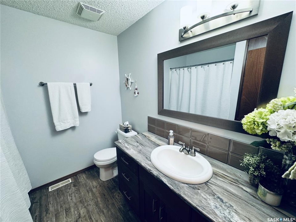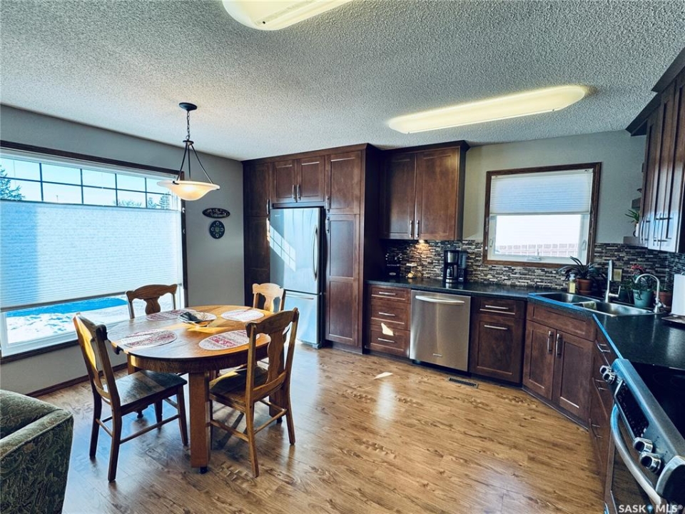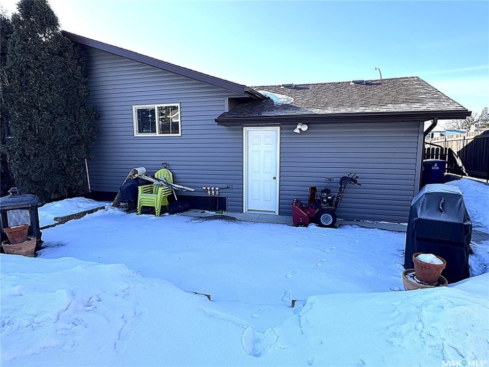 Welcome to this meticulous, move-in ready home offering a practical design and exceptional care inside and out. A spacious foyer welcomes you and provides access to the upper level, basement, side/main entrance, and direct entry to the attached garage — a functional layout perfect for busy families. The main floor features a bright, open-concept living space that seamlessly connects the kitchen, dining, and living areas. The beautiful custom kitchen is the heart of the home while the striking rock electric fireplace adds warmth and character to the living room. Central air conditioning keeps the home comfortable year-round. Down the hall, you'll find two bedrooms, the primary bedroom complete with a private 2-piece ensuite, and the 4-piece main bathroom. The fully finished basement expands your living space with a large family/rec room, a fourth bedroom, an additional 4-piece bathroom, laundry room, storage room, cold storage, and utility room — offering space for everyone and everything. The home is also equipped with central vacuum for added ease. Step outside to enjoy the fully fenced backyard featuring a patio, lush lawn, perennials, a garden area, and a storage shed. Front and back underground sprinklers help maintain the beautifully kept yard. The attached garage offers convenient access to both the home and backyard, and the front driveway accommodates up to four vehicles. With many updates throughout and located directly down the street from schools, this well-kept home truly checks all the boxes. The time has come for someone new to call this home. Could that be you? Book your showing today!