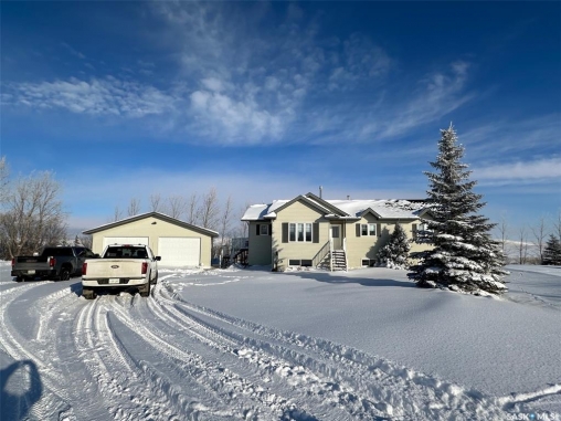 Here's your chance to own a beautiful acreage perfectly situated halfway between Moose Jaw and Swift Current, near Chaplin, SK. Whether you're looking for the ideal hobby farm or a valuable addition to an existing ranch, this property offers incredible versatility and potential. A spacious and meticulously maintained 2004 built bungalow featuring 5 bedrooms, 4 bathrooms, a 32' x 32' detached heated garage, and a large deck. The home is nestled within a mature shelterbelt, offering privacy and protection from the elements. Equipped with natural gas, power, (shared) well water, and a lagoon sewer system for convenience and reliability. The property is only 8 miles from Chaplin, SK, a community offering K-12 school, Post office, Gas station, Restaurant, and General store.