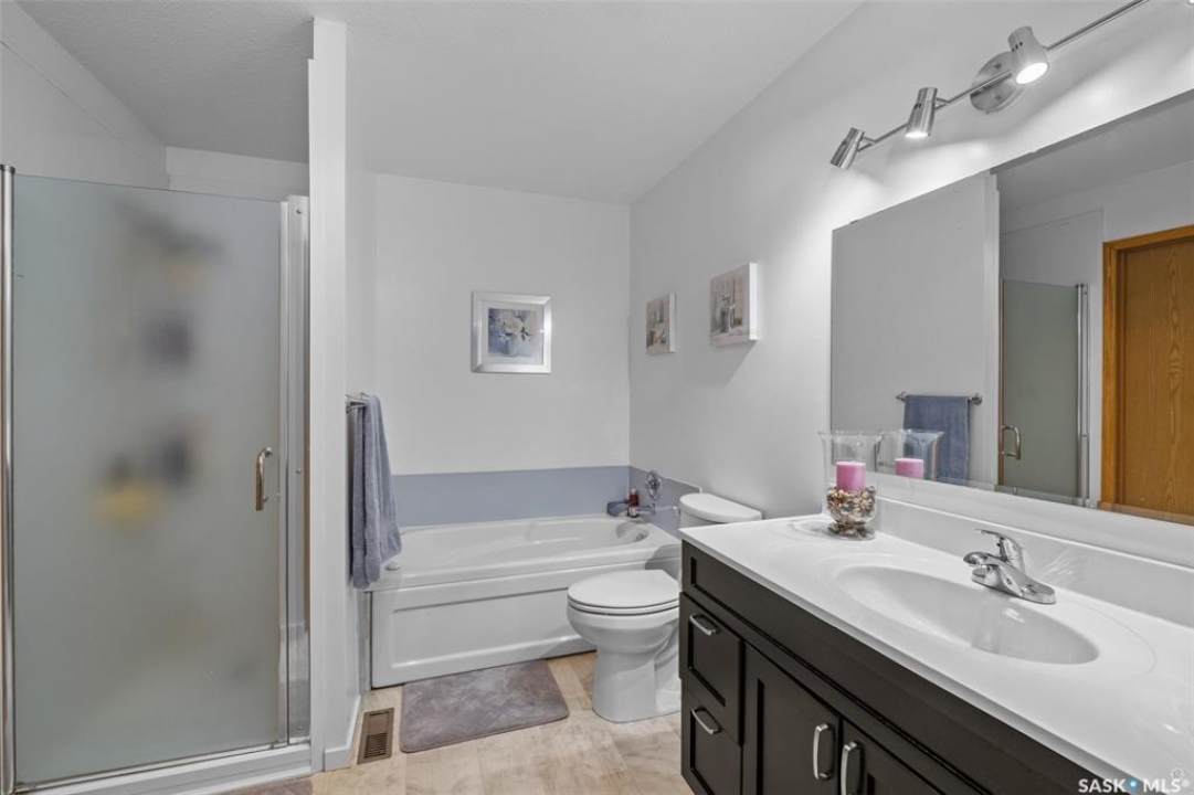Classic Crescent Acres bungalow! Move in and do absolutely nothing to this beautifully re-imagined 4 bedroom, 2 bathroom home situated within one of Prince Albert's most desirable neighbourhoods. The main level supplies a huge front living room, an upgraded kitchen with a combined dining area, newer flooring throughout and access to a ground level covered concrete patio. The lower level comes complete with a massive family/recreational, spacious laundry area, and loads of storage space. The exterior of the property comes fully fenced supplying front underground sprinklers and an extra wide driveway for extra parking.