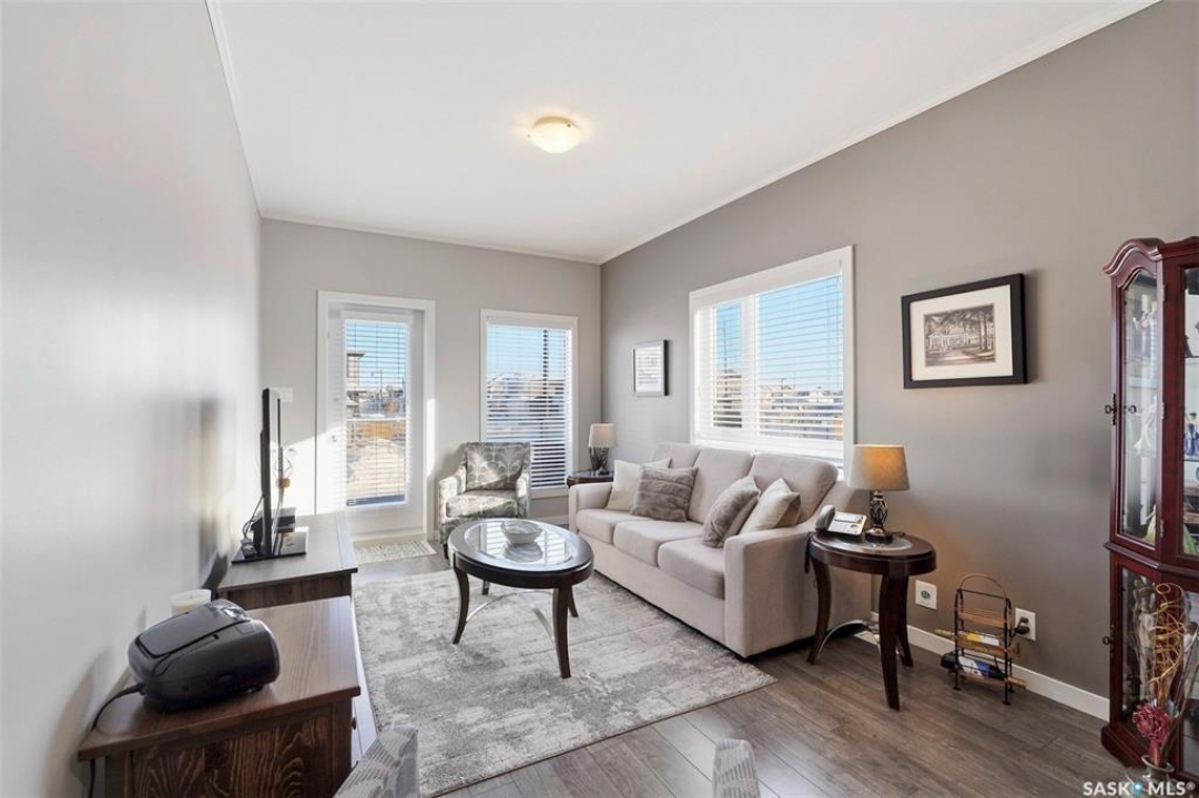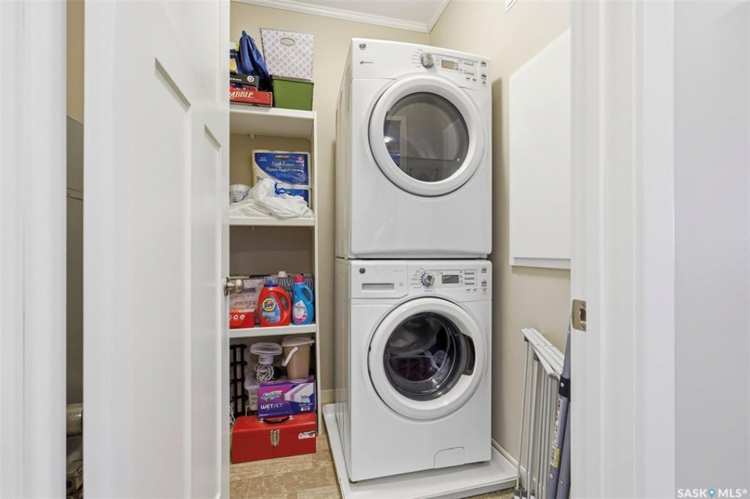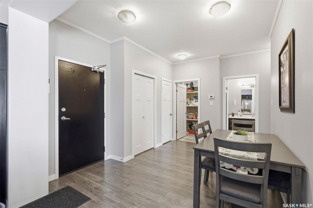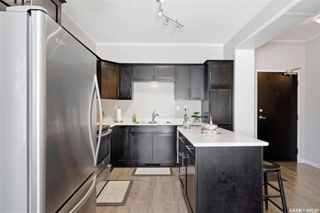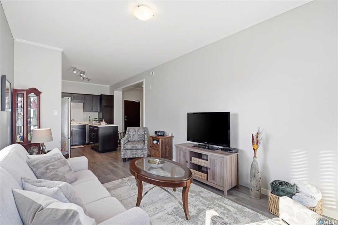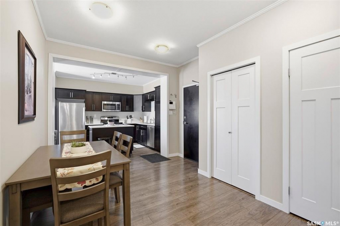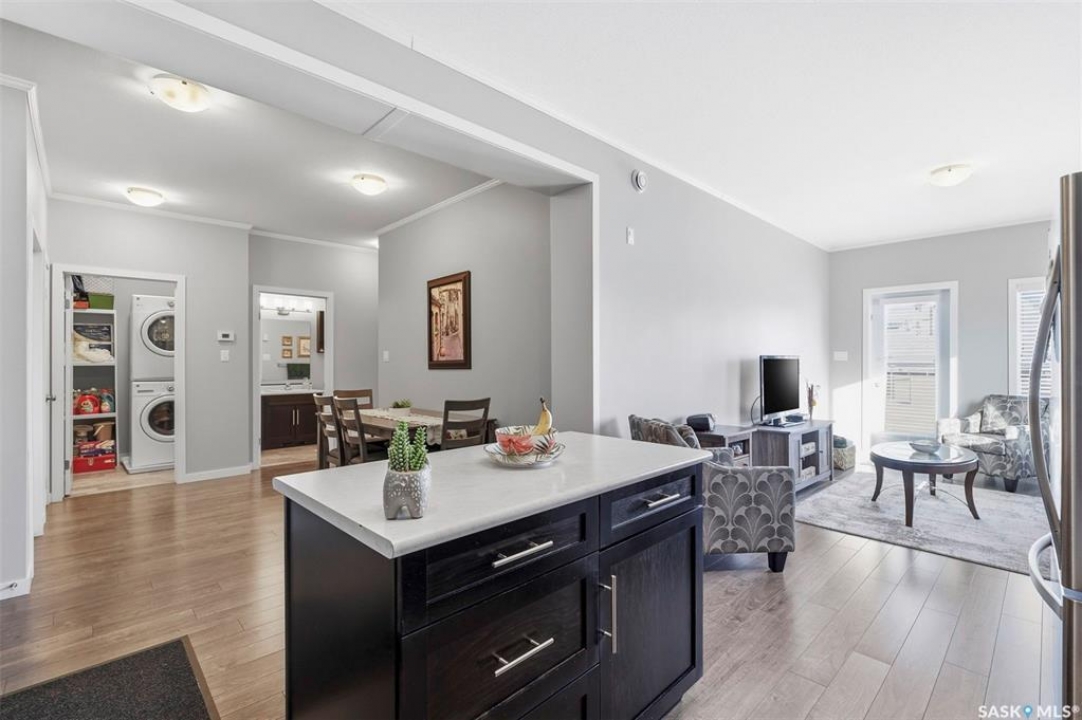 Welcome to #113 545 Hassard Close in Kensington. This main floor corner unit has an great floor plan - step inside to a generous sized entrance offering ample room for a large table or office area and leads rights into the modern kitchen. Great layout with bedrooms being separated from the main living spaces and 9' ceilings throughout with crown mouldings. Additional features throughout include laminate flooring, soft close doors and drawers, stainless steel appliance package, double sink and a convenient island. The living room is a great size and has East and North facing windows for plenty of natural light. Step outside to the large balcony that can be accessed from the living room - a great place to sit and relax! You are sure to appreciate the in suite laundry with stackable full size washer and dryer and plenty of additional storage space. The remainder of the condo is made up of 2 bedrooms and a four piece bathroom. There are 2 parking spots included (P9 & P72) - one heated underground stall with caged storage locker and one above ground stall. This convenient location offers easy access to many shops, schools, and parks! Don't hesitate to book a showing on this impeccable condo. Pets allowed with restrictions ~1 dog or 1 cat allowed but must have board approval. Central A/C and forced air heating. Theatre room, intercom and and elevator access.