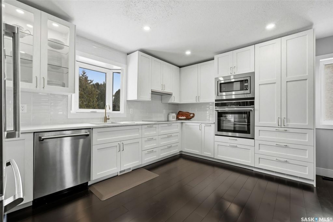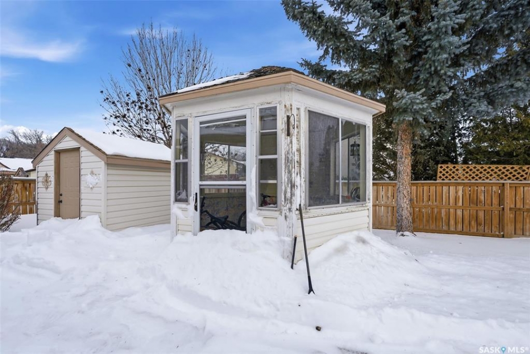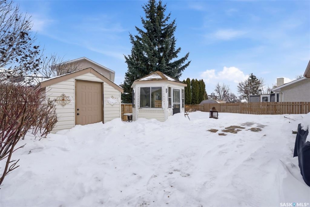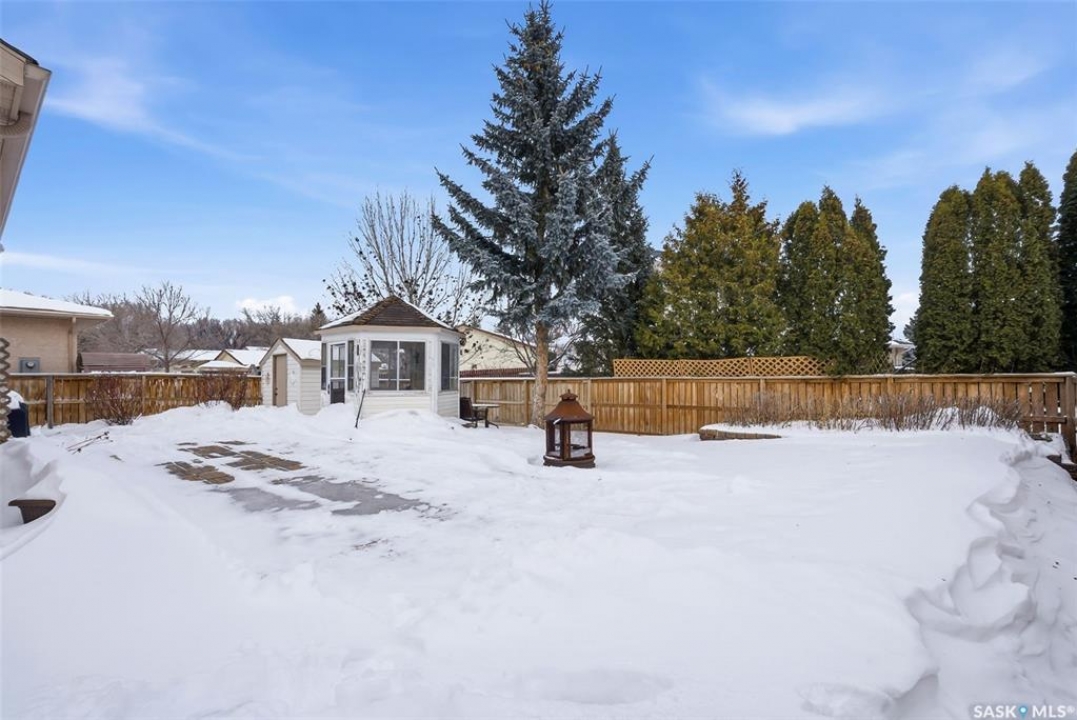 Welcome to 149 Krauss Street, a spacious and well-kept bungalow in Regina's family-friendly Mount Royal neighbourhood. This is a fantastic opportunity for buyers who value both space and lifestyle, with easy access to beautiful walking paths, open green space, and the water feature/creek area that makes this park such a standout in the neighbourhood. Whether you enjoy morning walks, biking, or simply being close to nature, this location offers a peaceful setting while still being close to schools, shopping, and everyday amenities. Inside, the home offers a bright and functional layout with hardwood flooring through the main living areas, a practical kitchen, convenient main floor laundry, and 2 bedrooms on the main level, including a spacious primary bedroom with a 3-piece ensuite, plus a full 4-piece bathroom. The fully finished basement provides excellent additional living space with a large family/recreation room, 2 more bedrooms, and a 3-piece bathroom—ideal for a growing family, guests, or flexible home office/gym use. Outside, the fully fenced backyard is perfect for relaxing or entertaining, featuring mature trees and shrubs, patio space, a storage shed, and a charming gazebo/sunroom-style structure for seasonal enjoyment. Complete with a double attached garage and ample driveway parking, this move-in ready bungalow combines comfort, space, and an unbeatable park-side location.