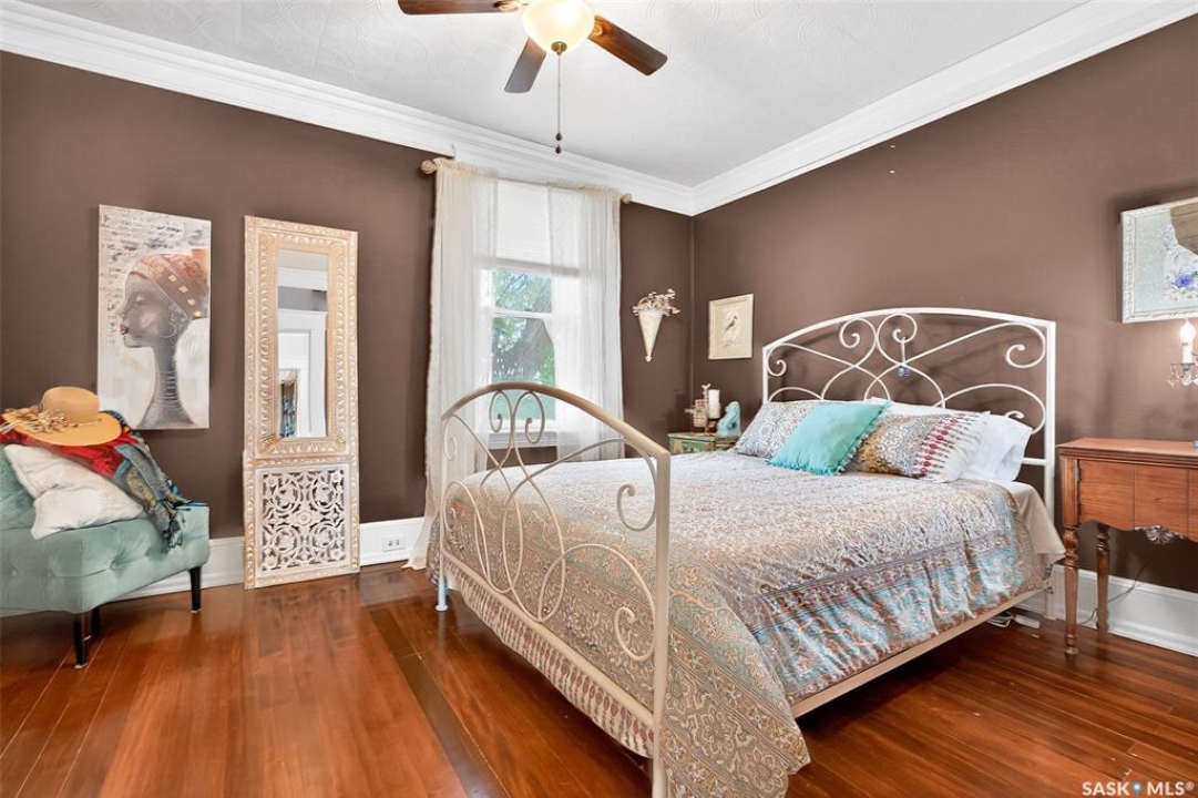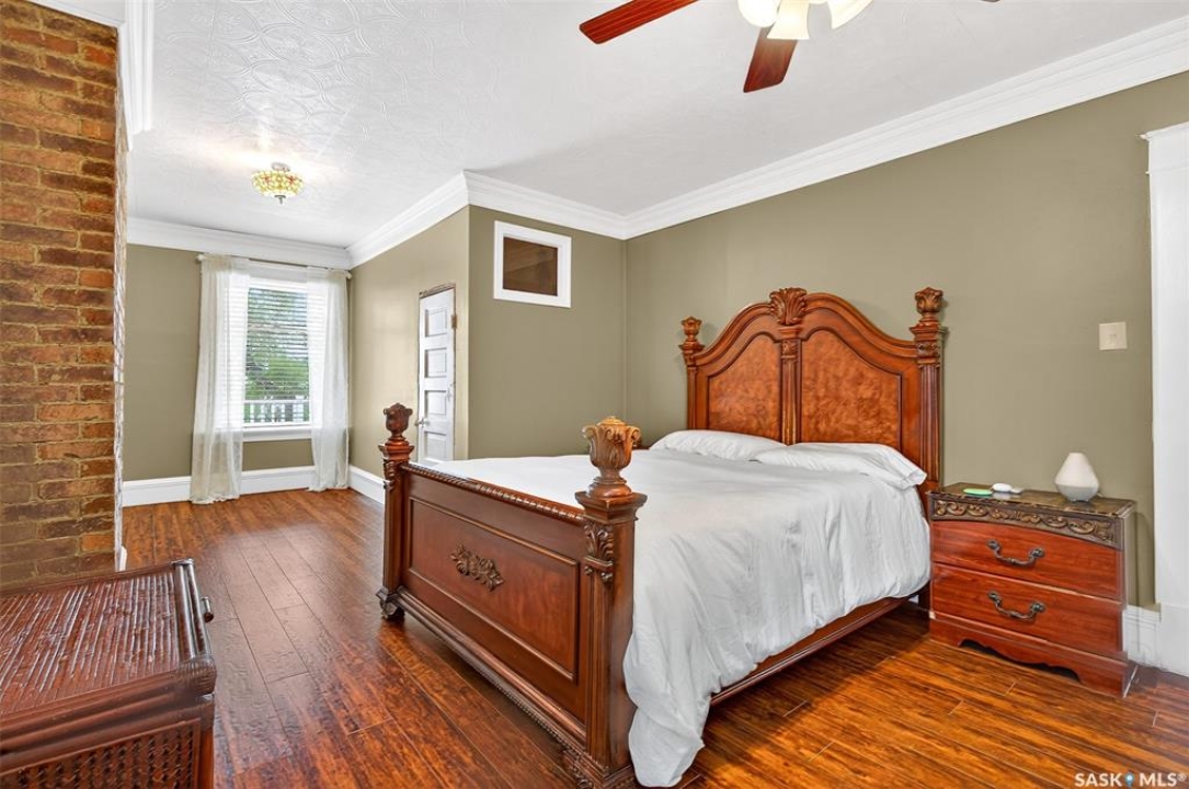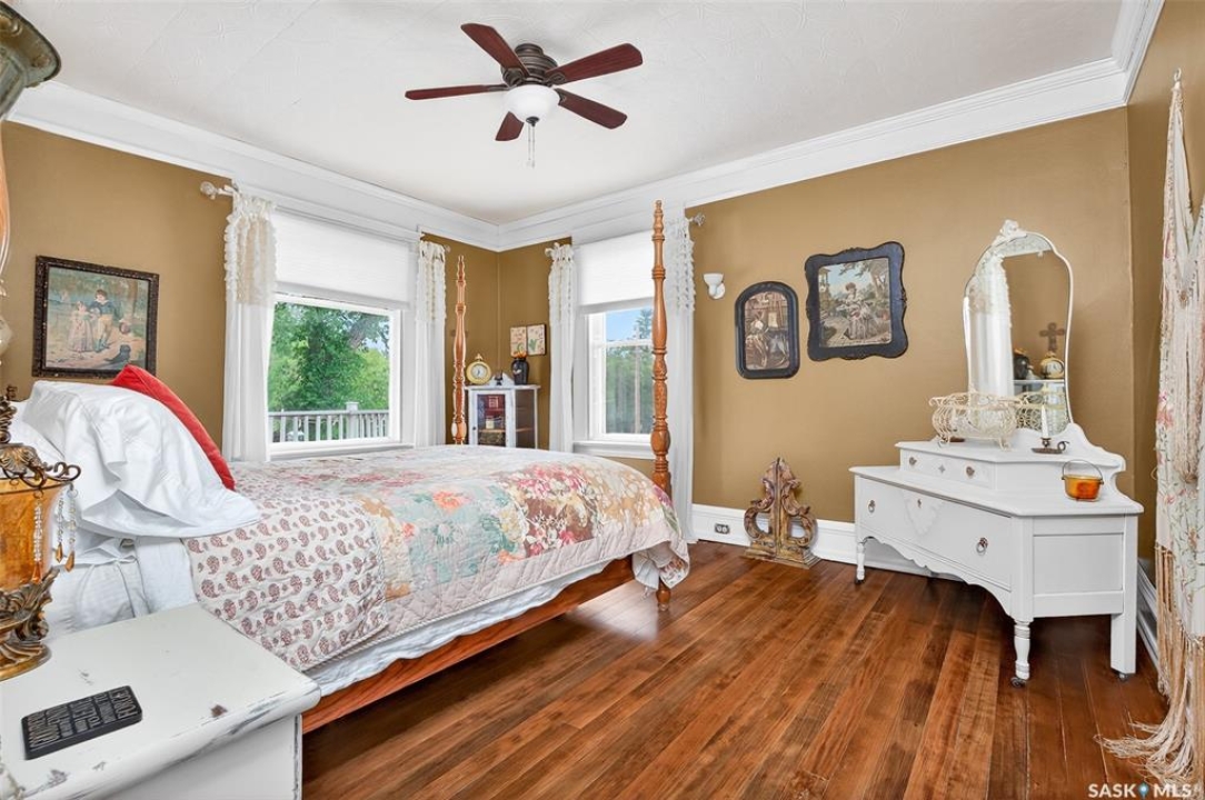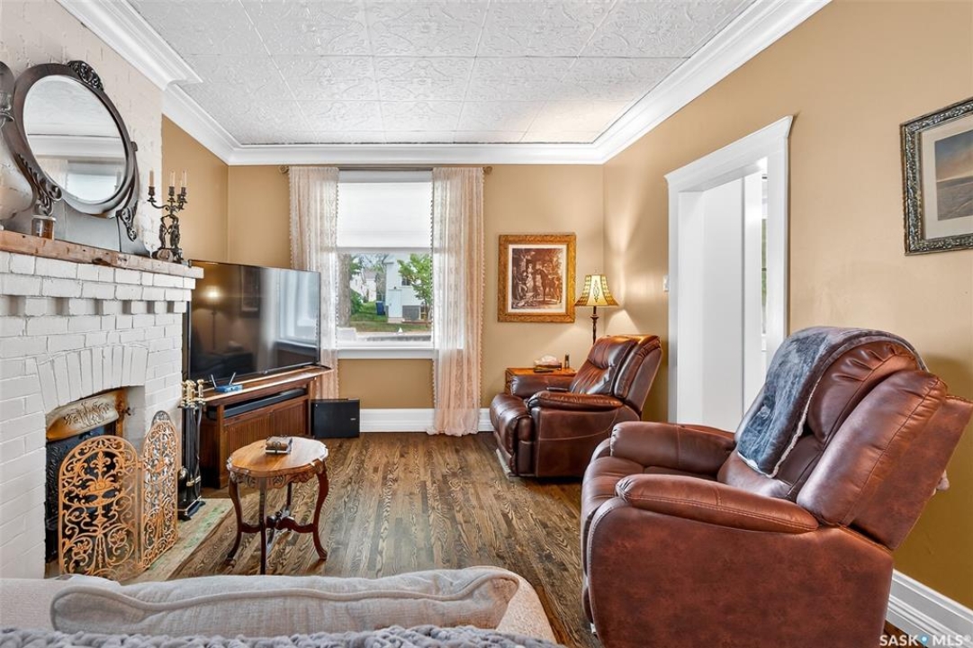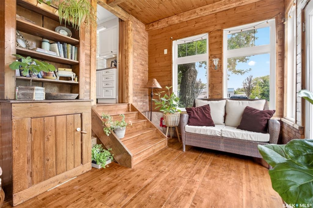 Looking for a once in a lifetime opportunity to own one of the most stunning character homes around? You won't want to miss this one! This 3 storey double brick home boasts 2,600 sq.ft. of living space on 3 floors with 3 bedrooms and 2 bathrooms. Sitting on 4 large corner lots with the most beautiful landscaping around. This iconic home stands out as soon as you see it with its excellent curb appeal. This yard features a vinyl fence, stunning gazebo, custom riverbed, stunning rock gardens, beautiful flowers and a stamped concrete pad with a rock fireplace. The home features a huge covered veranda which welcomes you into a beautiful foyer. Leading into a huge open living / dining room complete with a wood fireplace and beautiful hardwood floors. On the other side of the front door we find an office and second entrance - you are sure to love the real brick flooring. At the back of the home we have a huge kitchen which is sure to impress! Complete with a stunning custom gas stove that matches the era and a beautiful island that ties it all together. Off the kitchen we find one of the cutest sunrooms you can find - you will spend many hours here. Heading upstairs we find a huge second floor balcony with 3 large bedrooms! The primary bedroom features a seating area and a large walk-in closet. There is laundry on the second floor for added convenience. The absolutely stunning 4 piece bathroom will blow you away! From the clawfoot soaker tub to the copper sink or stunning vanity it will impress you. Heading up to the third floor we have a large loft space finished in pine that could be used as a 4th bedroom, playroom or yoga loft! The basement features a large family room, workshop, and lots of storage! If you are looking for a different pace of life Mortlach is an excellent little town. Located just 30 minutes west of Moose Jaw and boasting a K-12 school! There is so much more to see - book your walkthrough today!