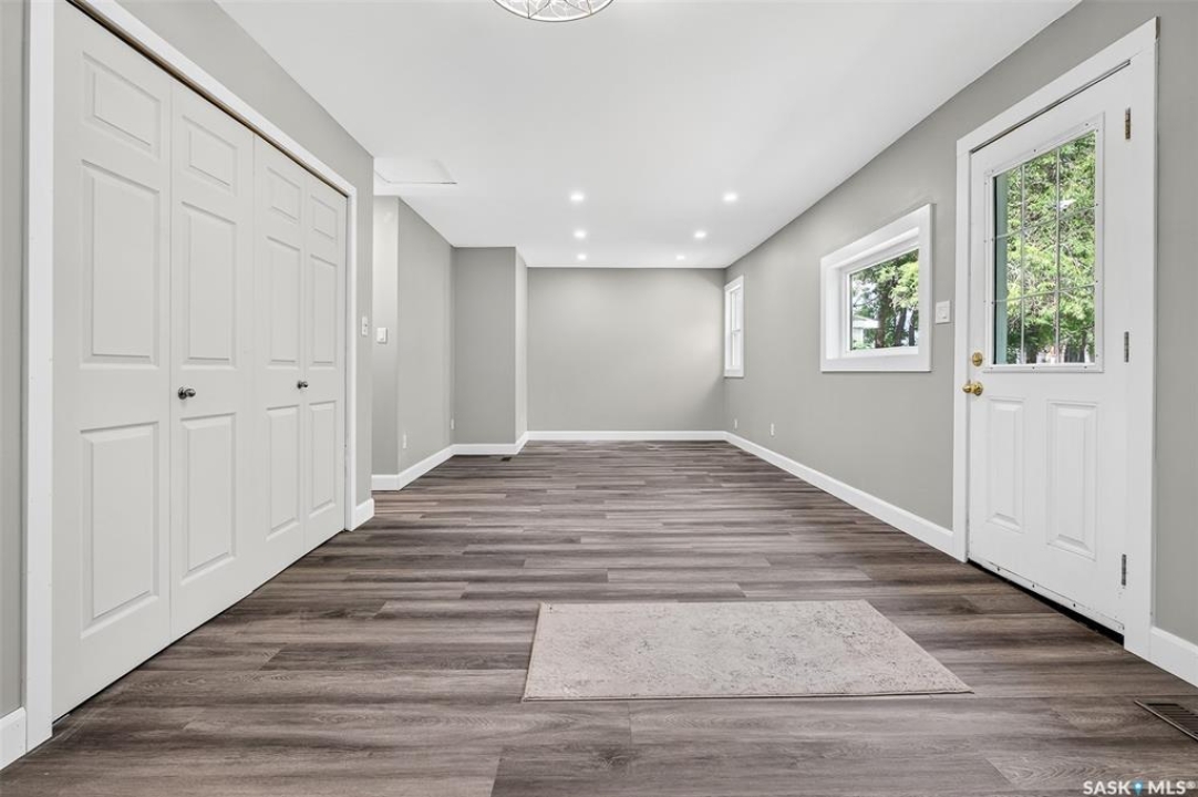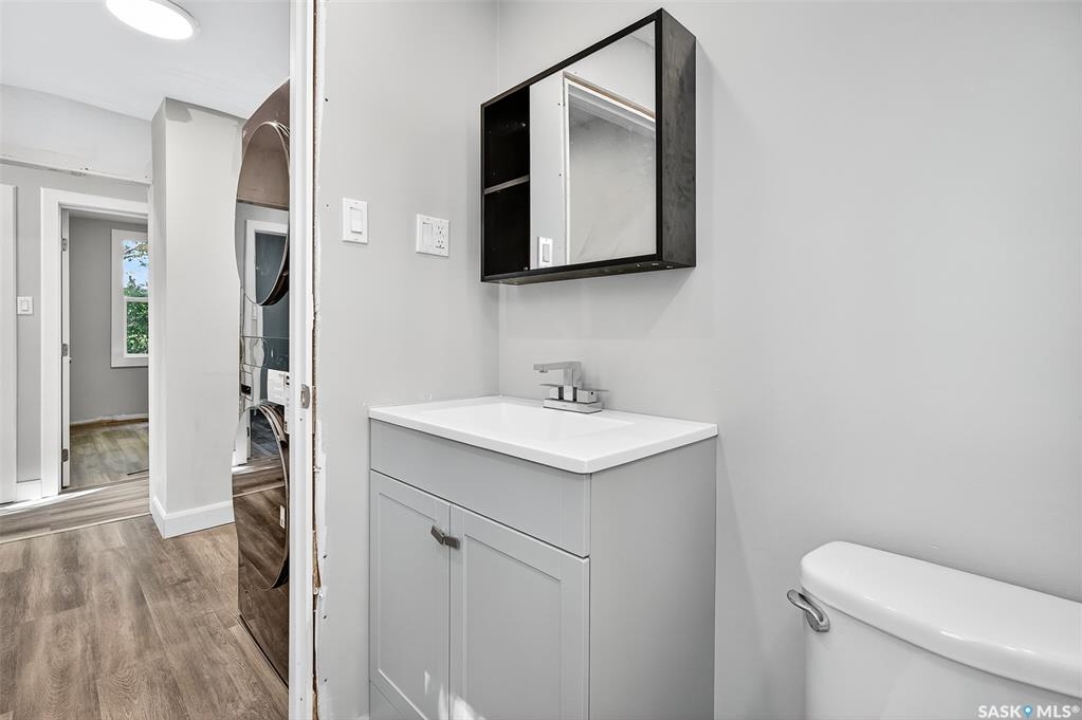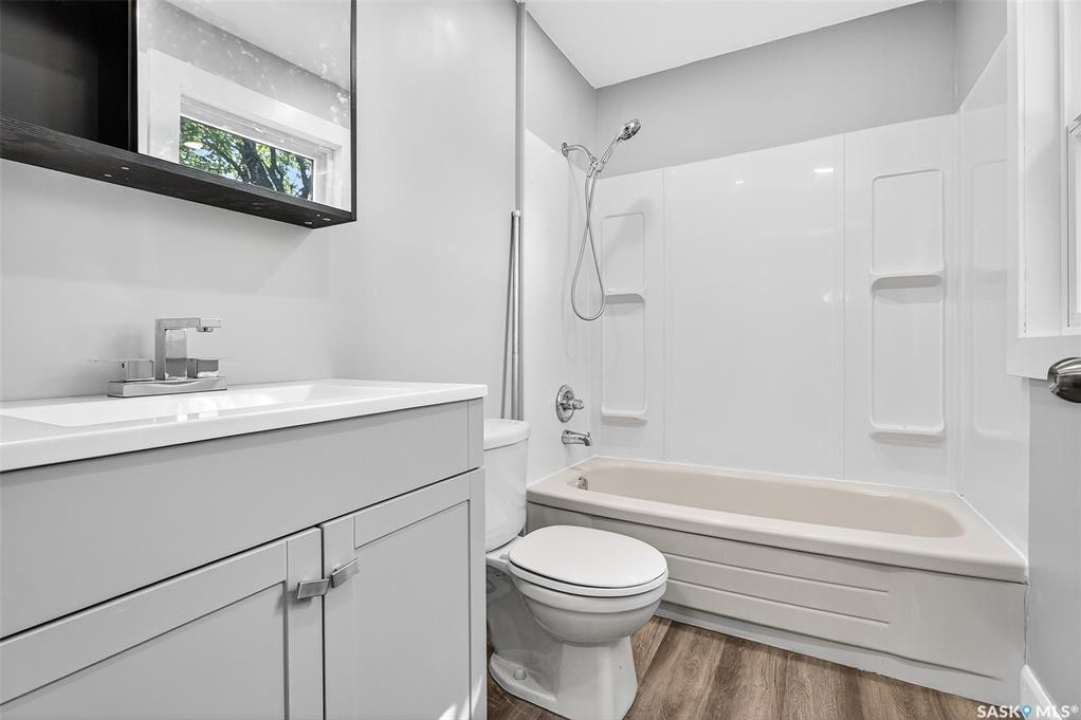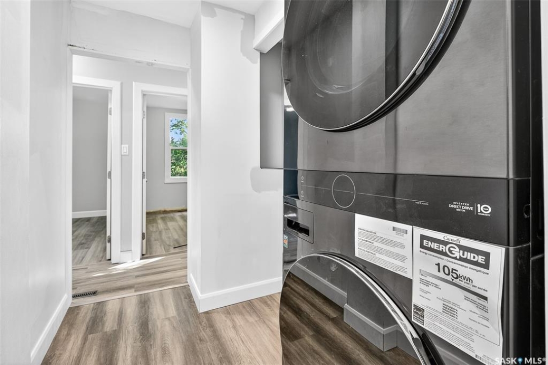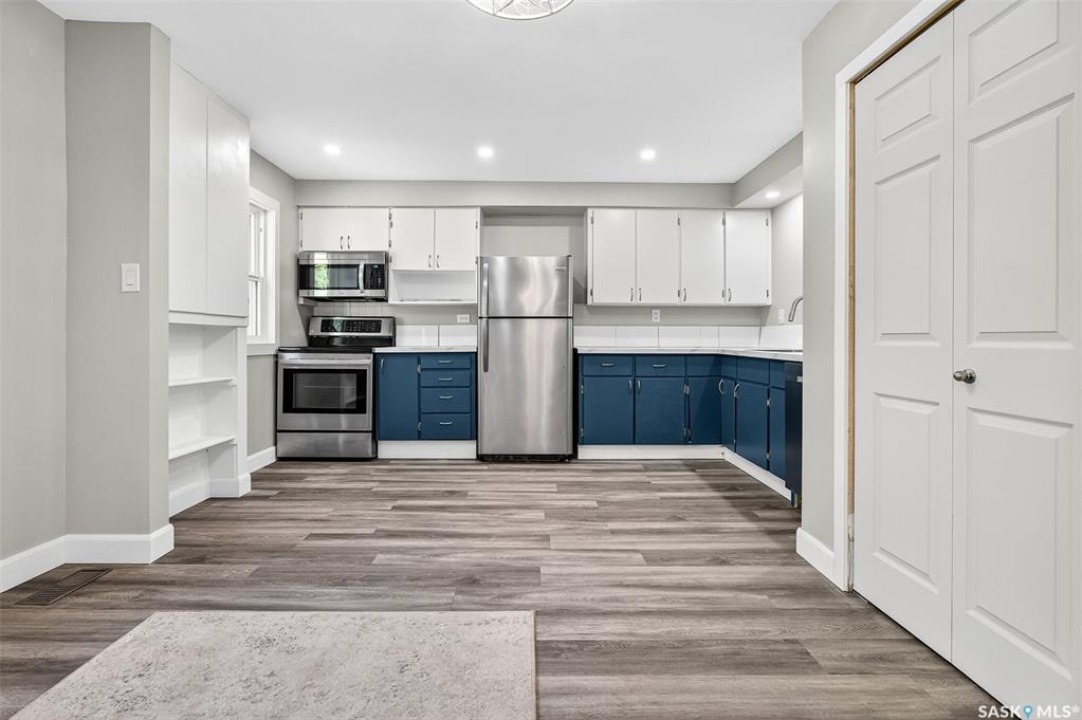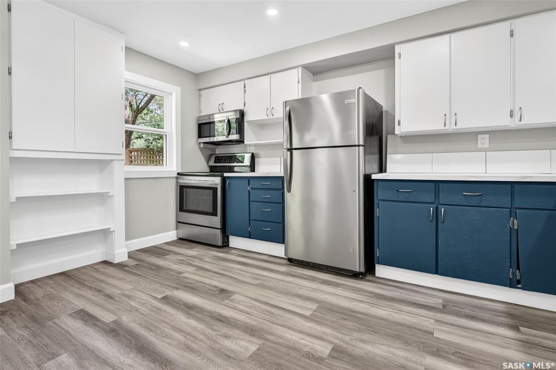 Are you looking for an updated starter home? This super cute 2 bed and 1 bath boasts just over 700 sq.ft. has just been extensively renovated. Excellent curb appeal as you pull up with one of the cutest decks! Situated on a beautifully treed corner lot! Heading in the back door you are greeted by an open concept living area with a living space to one side and kitchen on the other leaving space for a dining room in the middle. The kitchen boasts 2 tone cabinets, lots of counter space and a stainless steel appliance package. Down the hall we find 2 bedrooms as well as a stunning 4 piece bath and main floor laundry! So much work has just been done to this home - all that is left is too move in and enjoy it! Outside we have a 14'x22' garage complete with a new door and opener. You are sure to love the shade from all of the trees on your back deck or patio! So many updates just done - new appliances, new furnace, hot water tank, new bathroom, new drywall, updated electrical and plumbing, new flooring and paint throughout! If you are looking for easy and affordable living this could be the home for you! Reach out today to book your showing!
