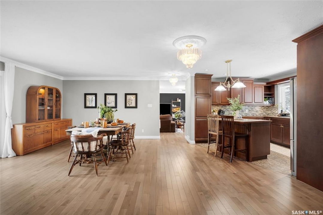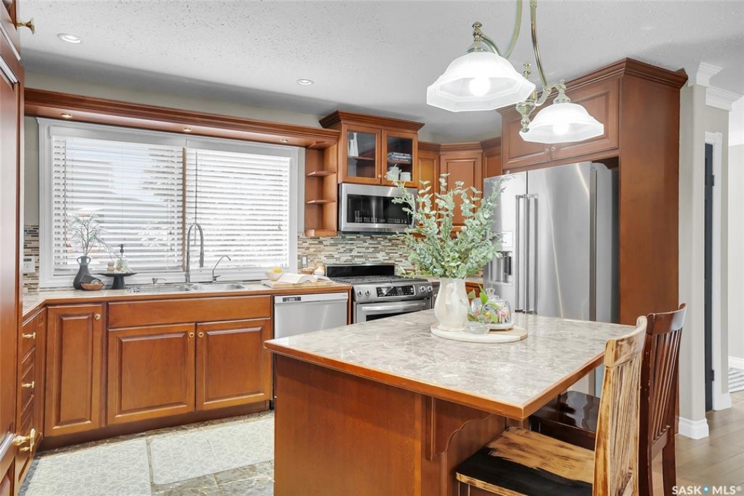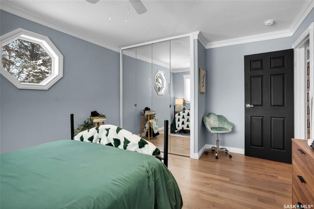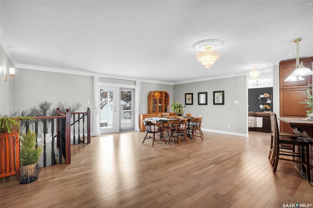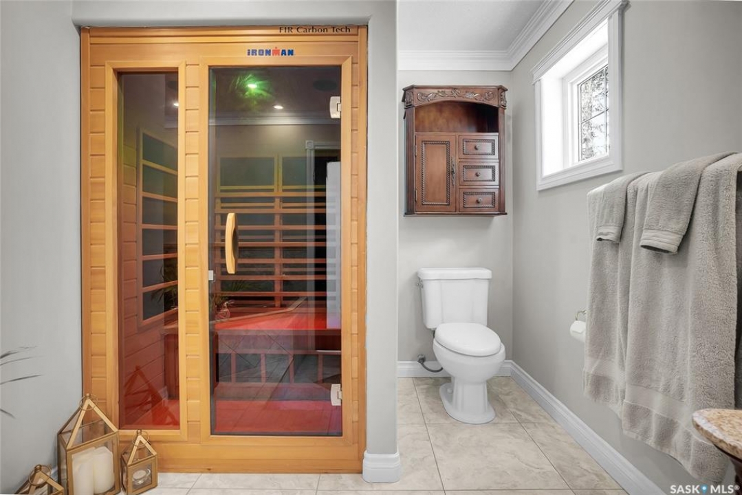 Welcome to 111 Norman Avenue in Aberdeen, where you get full on acreage energy without leaving town! Sitting on four lots wrapped in mature trees and privacy, this property feels like you're living at the lake, yet you're just minutes to Highway 11 for an easy commute to Warman, Saskatoon, or a quick escape north to Lakeland. This thoroughly updated bungalow brings the vibe with hardwood throughout the main floor, a bright modern 4-piece bath with updated plumbing (2025), and a primary bedroom that honestly feels like a boutique retreat — vaulted ceilings, skylight, built-in speakers, patio doors (replaced 2015) leading to the deck, plus a dreamy ensuite with soaker tub and your own dry sauna. The oversized living room (converted from the original attached garage) gives you that open, flexible space perfect for hosting, creating, or just spreading out, while the basement is wired for a projector so movie nights hit different. Major upgrades bring peace of mind: shingles redone in 2024, sewer line replaced from the town to the house (cost shared between seller and town), attic insulation topped up in 2022, plumbing updated in the kitchen in 2025, furnace tuned up with parts replaced in 2025, and appliances replaced in 2014 (fridge updated in 2016). With central air and thoughtful improvements throughout, this home is truly move-in ready….but the real flex? Two detached garages (single and double), with 220 power in the single garage, two driveways, nine off-street parking spots, RV parking, and endless room for hobbies, side hustles, car builds, boats, trailers, and all the toys. The massive back deck and private yard make everyday life feel like a weekend getaway. If you've been craving space, freedom, and a slower pace without sacrificing connection, this is that rare small-town lifestyle upgrade that just makes sense.