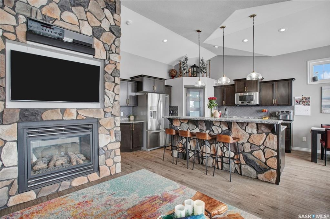 Welcome to 426 Lyle Cres, located in Warman Legends area! This bungalow backs park space and has unobstructed views of the golf course from the back yard and it is the perfect place to raise a family and call home. Upon entering, you are greeted with a large bright foyer, the open concept home with big kitchen space 8' Island with sink and a corner pantry and loads of cabinets. Dinning space with door to deck with park & golf course views. The living room features 2 sided gas fireplace, tons of natural light. Laminate flooring in living kitchen and dinning area in a tasteful neutral tone. Down the hallway to 2 additional bedrooms and a 4pce bath, the primary bedroom is spacious with a large walk-in closet, and 4pc ensuite with large soaker tub and a shower. The basement is partially developed with bedroom and 4pce bath bath & laundry room completed with permits closed. The remainder of the basement is fully framed with a large family room space, a 5th bedroom with walk in closet and a large storage room. The oversized 24W X (27.10 + 36.2) deep double attached with added work space and a drive thru door to back yard is heated/fully insulated. The backyard is a lovely oasis, fully fenced and landscaped, raised garden beds, overlooking green space and golf course. Located in the Legends area home is close to additional parks as well as a ton of neighbourhood amenities, making it the perfect option for any type of family. Call your REALTOR �? to set up a private showing today!