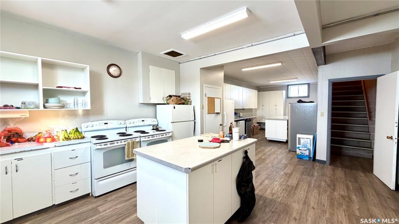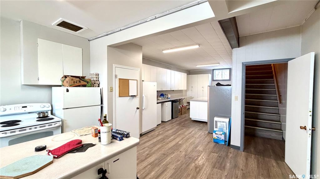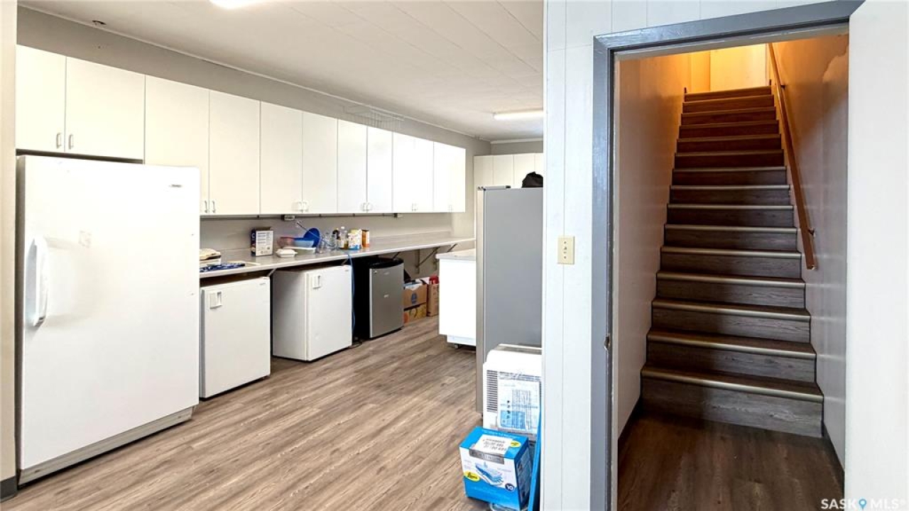143 ABERDEEN ST, ELBOW, SASKATCHEWAN HIGH-POTENTIAL INCOME PROPERTY in the resort community of Elbow, just minutes from LAKE DIEFENBAKER. Situated on two titled lots totaling approximately 0.27 acres, this recently retrofitted 3,376 sq ft commercial-zoned building offers MULTIPLE REVENUE POSSIBILITIES including short-term rentals, staff housing, retreat accommodations, or a mixed residential/commercial operation. The renovated lower level is ideally configured for rental use, featuring FIVE SPACIOUS BEDROOMS, a shared TV/lounge area, dining space, and a large working kitchen with updated appliances , a layout well suited for GROUP BOOKINGS, worker housing, or extended-stay guests. Two bathrooms serve this level, including a 3-piece with shower and a separate 2-piece. Each bedroom includes fresh air returns, electrical has been fully updated, and the boiler system is well maintained and regularly serviced for dependable operation. The main floor offers a LARGE GYM OR MULTI-PURPOSE SPACE that could generate additional income as event space, studio, or common area for guests. A raised stage has been set up as a living area with couches and large television, with an additional bedroom off the stage, plus a third 3-piece bathroom. A working elevator provides FULL WHEELCHAIR ACCESSIBILITY, expanding potential clientele and use options. Air conditioning, onsite parking, and included equipment and improvements allow for immediate use with minimal startup costs. This property is WELL POSITIONED FOR AIRBNB or SHORT-TERM RENTAL operation, BOUTIQUE LODGING, HUNTING AND FISHING GROUPS, SEASONAL TOURISM, WORKFORCE HOUSING, or a live/work investment strategy. Elbow's STRONG TOURISM BASE, including boating, fishing, golf, and fall hunting , creates year-round and seasonal demand for accommodation. Seller will consider vendor financing for a two-year term and may also consider a suitable trade, offering additional flexibility for investors.