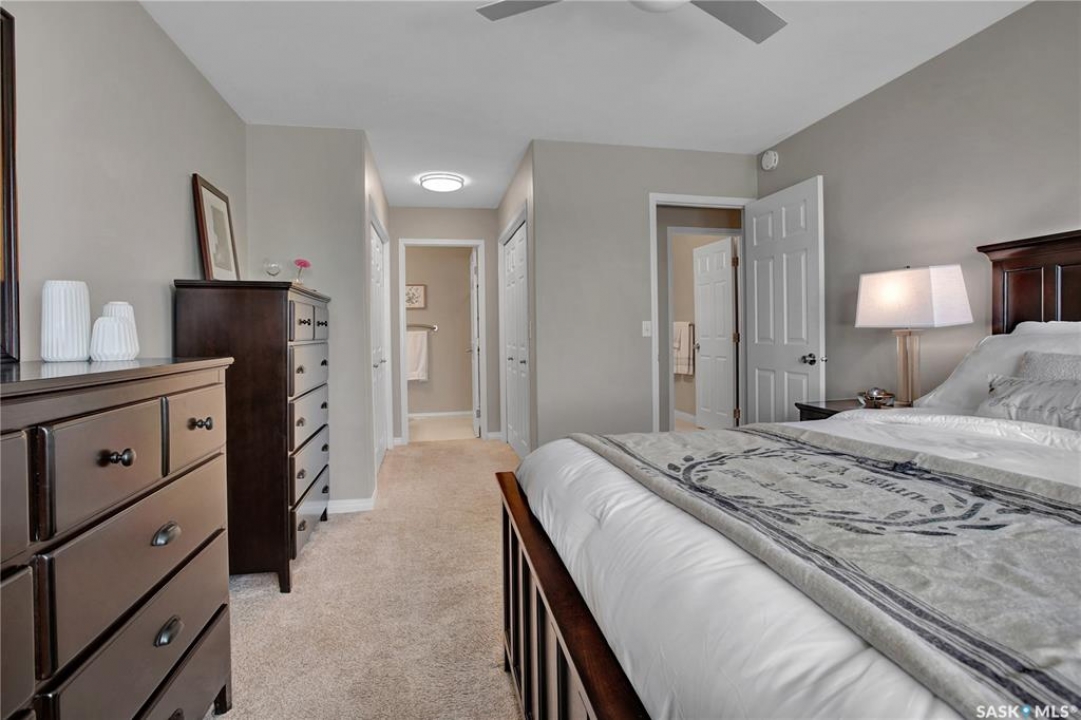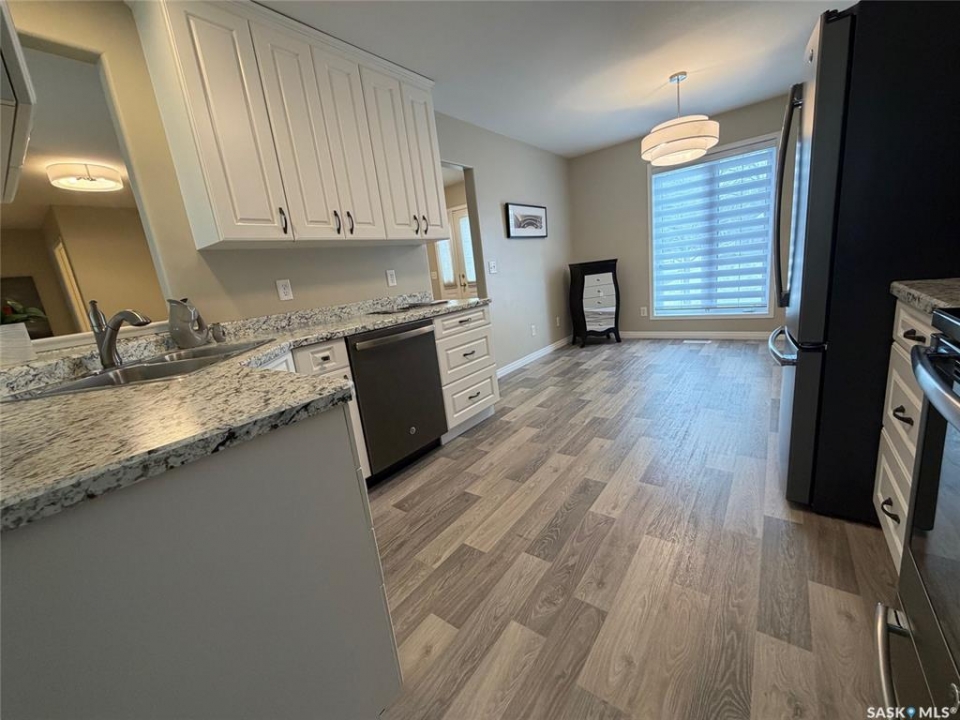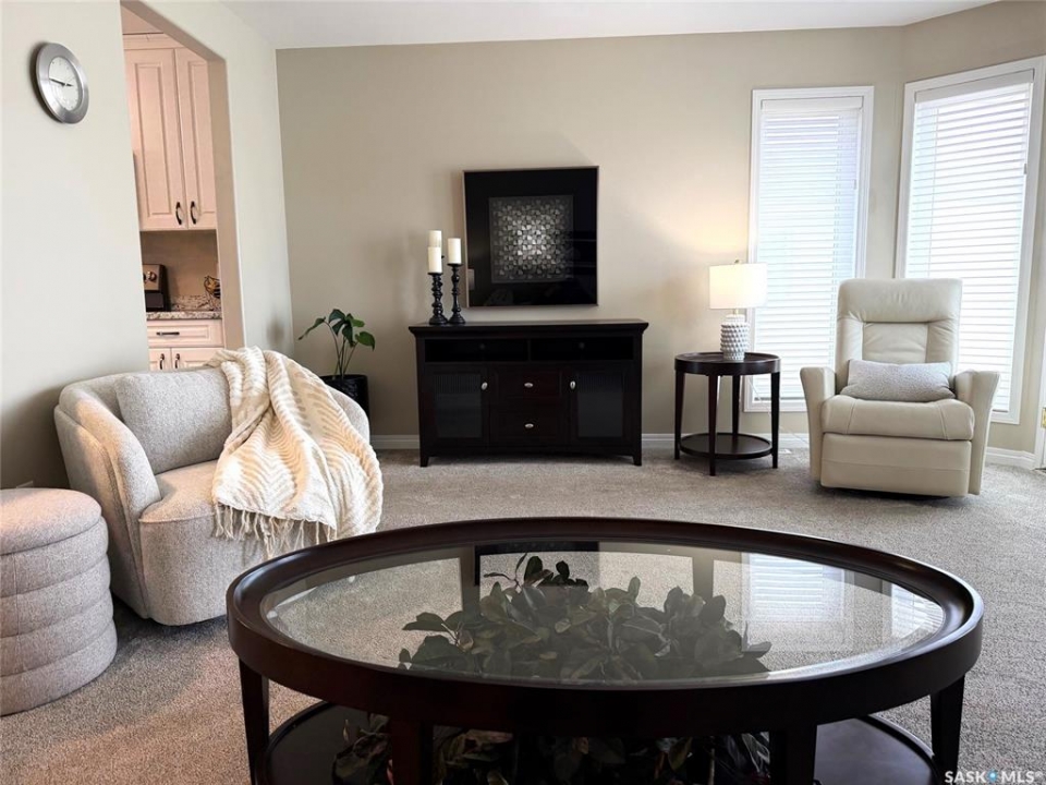 Welcome to ArborGlen Estates — Peaceful Living Backing Arbor Creek Park Unit 27 is the perfect place to begin your next chapter. Located in a gated community with minimal yard maintenance (handled by the HOA), this 1,198 sq ft bungalow offers comfort, quality, and convenience in the heart of Arbor Creek. Inside, you'll find a bright, open-concept layout with vinyl plank flooring flowing from the foyer into the spacious kitchen and dining areas. The kitchen features soft-close cabinetry and high-end stainless steel appliances — stove, fridge, built-in dishwasher, and microwave exhaust fan. A large pantry includes laundry hookups for those who prefer main floor laundry. The living room is filled with natural light thanks to multiple windows and garden doors that lead to a private deck backing green space. The deck is built with composite decking, acrylic glass panels, regal railing, and a natural gas BBQ hookup — perfect for relaxing or entertaining. The primary bedroom easily fits a king-sized bed and includes dual closets and a 3-piece ensuite with a spacious vanity. A second bedroom on the main floor is ideal for guests. From the front foyer, enjoy direct access to a 20' x 22' heated double attached garage, adding everyday convenience. Downstairs, the fully developed lower level offers a large family room, a den/office, a stylish 3-piece bath, ample storage, and a utility room with a newer furnace, hot water heater, and air exchanger. Additional Highlights: • Central air conditioning • Central vacuum • Quick access to Arbor Creek walking paths • Close to University Heights and Brighton amenities • Recent upgrades: shingles, furnace, water softener, flooring, garage overhead natural gas heater This one-owner home has been meticulously maintained and thoughtfully updated. A rare opportunity in ArborGlen Estates — turn-key ready for you to move in and enjoy.