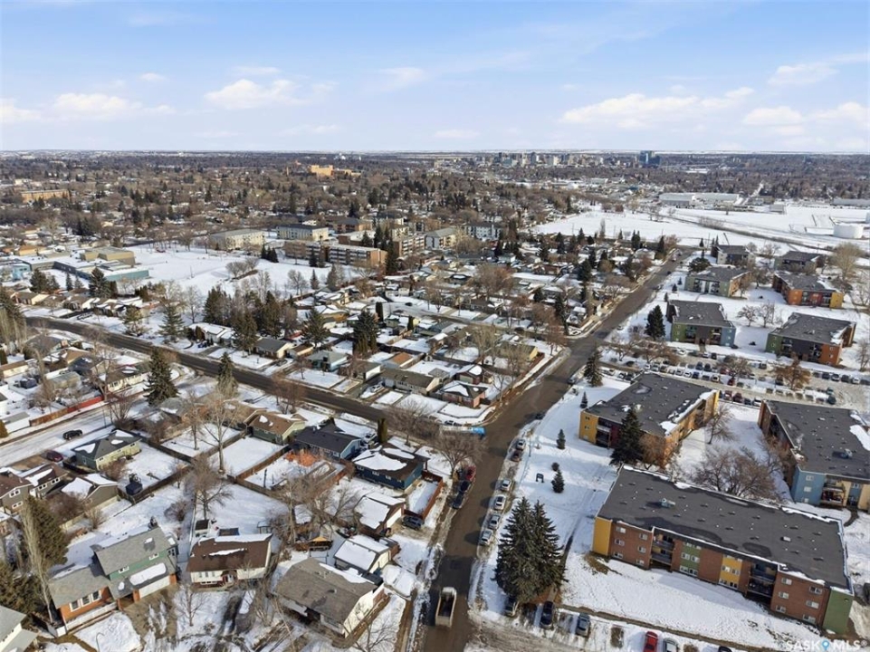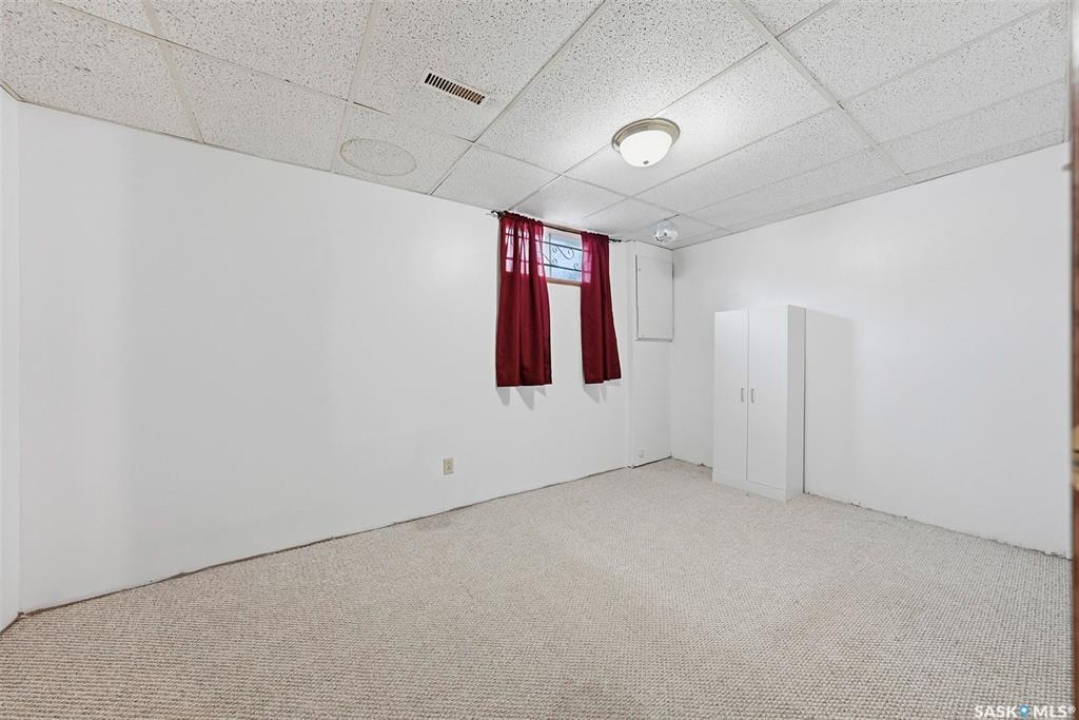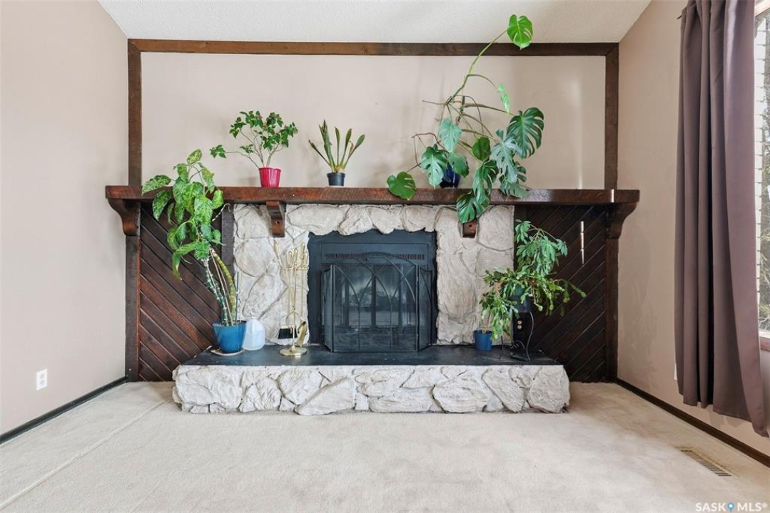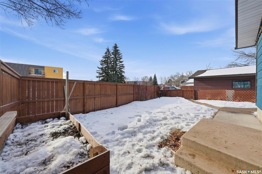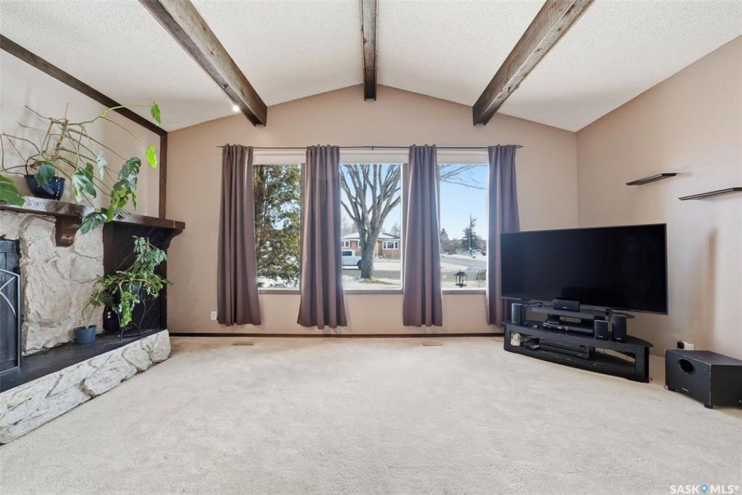 Located in Meadowgreen, Saskatoon, this 1,316 sq. ft. family home sits on a large corner lot and offers a functional layout with plenty of space throughout. The main floor features a sunken living room with vaulted ceilings, large windows for natural light, and a fireplace. There are three bedrooms on this level along with a four-piece bathroom. The kitchen offers good workspace, and the main floor also includes a separate laundry room and coat/storage area. There is ample storage throughout the home with multiple closets and well-planned spaces. The basement is spacious and includes a built-in bar area, additional built-in shelving, two bedrooms, and a large utility/storage room. A covered patio-style front porch provides a nice sitting area overlooking the lawn. The backyard offers additional space with fruit trees, lawn area, and an insulated two car detached garage. Situated in an established Saskatoon neighbourhood, this property offers solid space and layout with room to make it your own.
