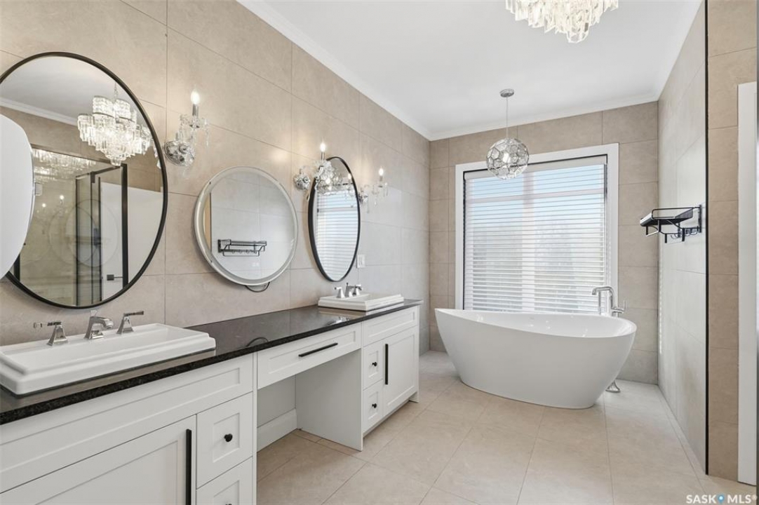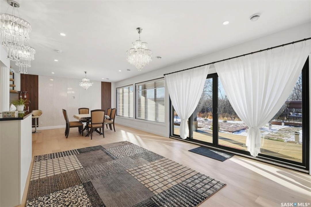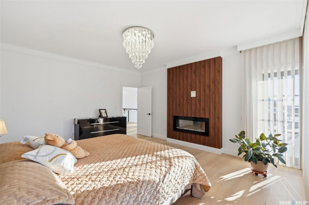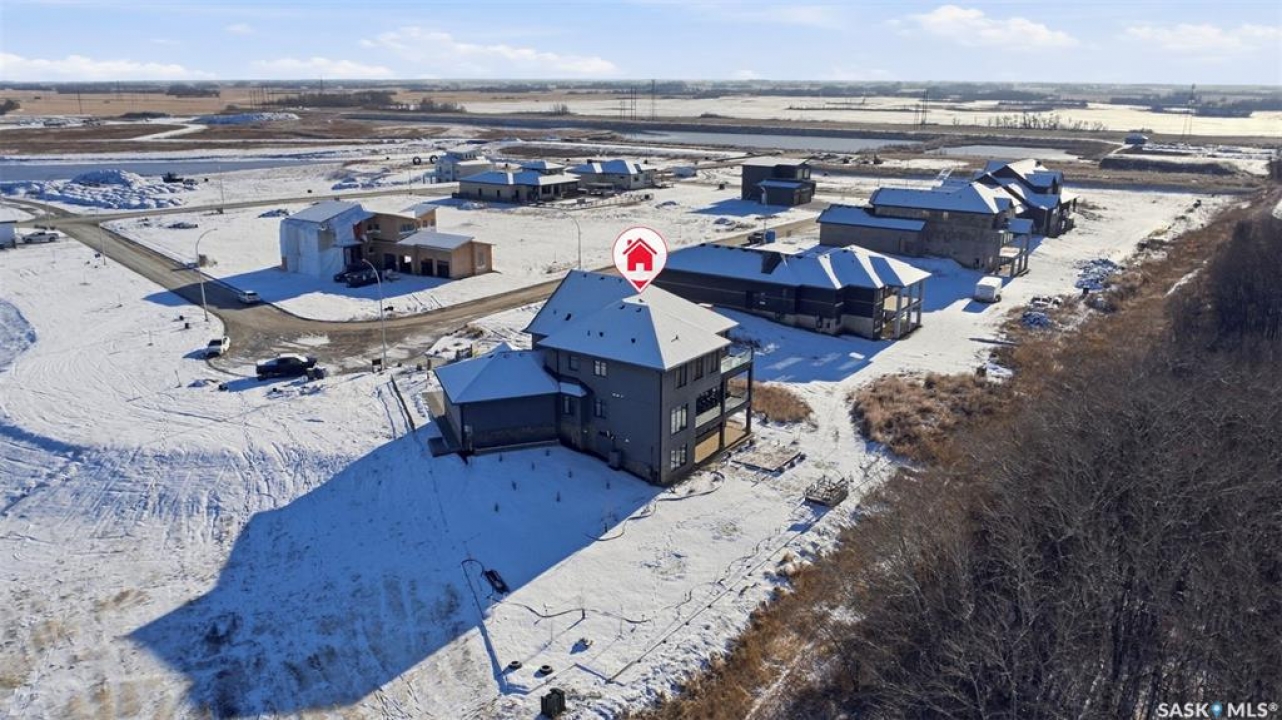 Welcome to 529 Greenbryre Bend—an exceptional walkout estate in prestigious Greenbryre Estates. Blending luxury, comfort, and modern design, this stunning home backs onto a private yard with breathtaking sunset views and abundant natural light. The main floor showcases 10-foot ceiling, expansive windows, and elegant open-concept layout. A spacious foyer leads to a den/office. The impressive living room features 22-foot soaring ceiling, gas fireplace, and panoramic views of the beautifully xeriscaped backyard. The chef's kitchen offers floor-to-ceiling custom cabinetry, marble countertops, tile backsplash, and premium built-in Bosch appliances, complemented by a fully equipped spice kitchen with gas stove. The generous dining area opens to a covered back deck. A custom wood floating staircase with solid oak treads and glass railing leads to the upper level, highlighted by 9-foot coffered ceilings. Three spacious bedrooms each include a walk-in closet and private ensuite. A bonus room and balcony add flexible living space. The primary suite is a private retreat with electric fireplace, expansive walk-in closet with granite island, and luxurious 5-piece ensuite featuring a soaking tub, dual sinks, and premium finishes. The walkout basement offers abundant natural light, a spacious family room, luxury wine cellar, two additional bedrooms, and a spa-inspired bathroom with sauna. Premium engineered flooring and in-floor heating enhance comfort. The low-maintenance backyard features a patio and artificial turf for year-round enjoyment. Additional highlights include marble tile at the entry, marble feature walls, in-floor heating in basement and garage, triple attached garage with 5–7 car driveway, motorized blinds, custom full-height tiled bathrooms, designer lighting with crystal chandeliers, and natural Golden Sesame granite with custom stone exterior coping. This extraordinary home showcases exceptional craftsmanship, thoughtful design, and luxury finishes throughout.