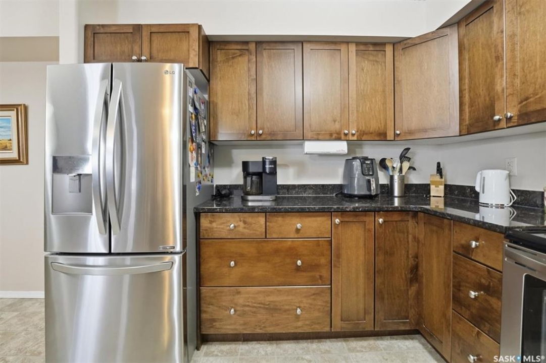 Welcome to this beautifully designed 979 sq. ft. condo located in the sought after Lakewood neighbourhood. This well appointed 2 bedroom, 2 bathroom unit offers a perfect blend of comfort, functionality, and modern convenience. The open concept layout features a stylish kitchen (microwave hood is new of Oct.2025) with granite countertops, ample cabinetry, and seamless flow into the dining and living areas. Ideal for both everyday living and entertaining. The bright and spacious primary bedroom includes a private ensuite, while the second bedroom is thoughtfully equipped with a Murphy bed and built in desk, making it an excellent option for guests, a home office, or flexible living space. Additional highlights include in suite laundry (new washer/dryer 2026), central air conditioning, and hot water in floor heating for year round comfort. The unit comes with two parking stalls, one underground and one above ground, offering both convenience and value. The well managed building boasts an impressive list of amenities, including a guest suite, exercise room, amenities room, two elevators, and ample guest parking. Ideally located close to shopping, walking paths, parks, and other Lakewood conveniences, this condo offers exceptional low maintenance living. An excellent opportunity for professionals, downsizers, or investors alike.