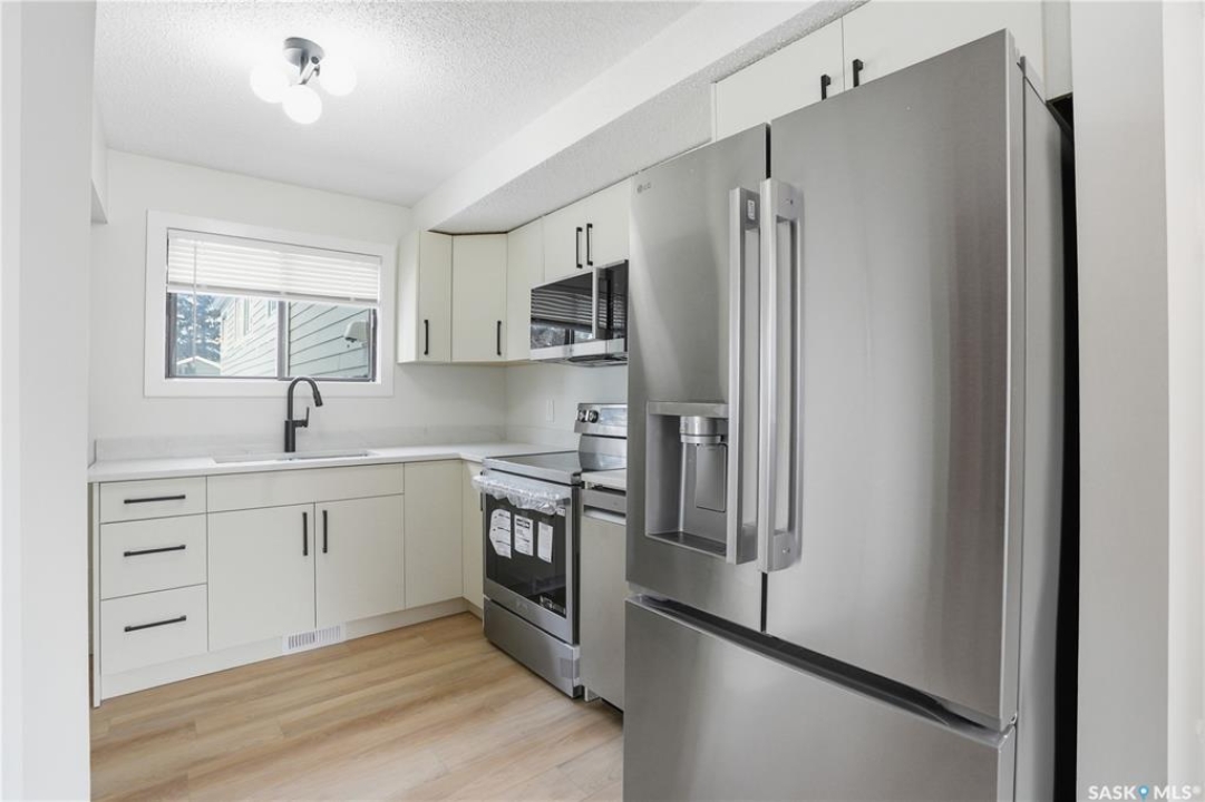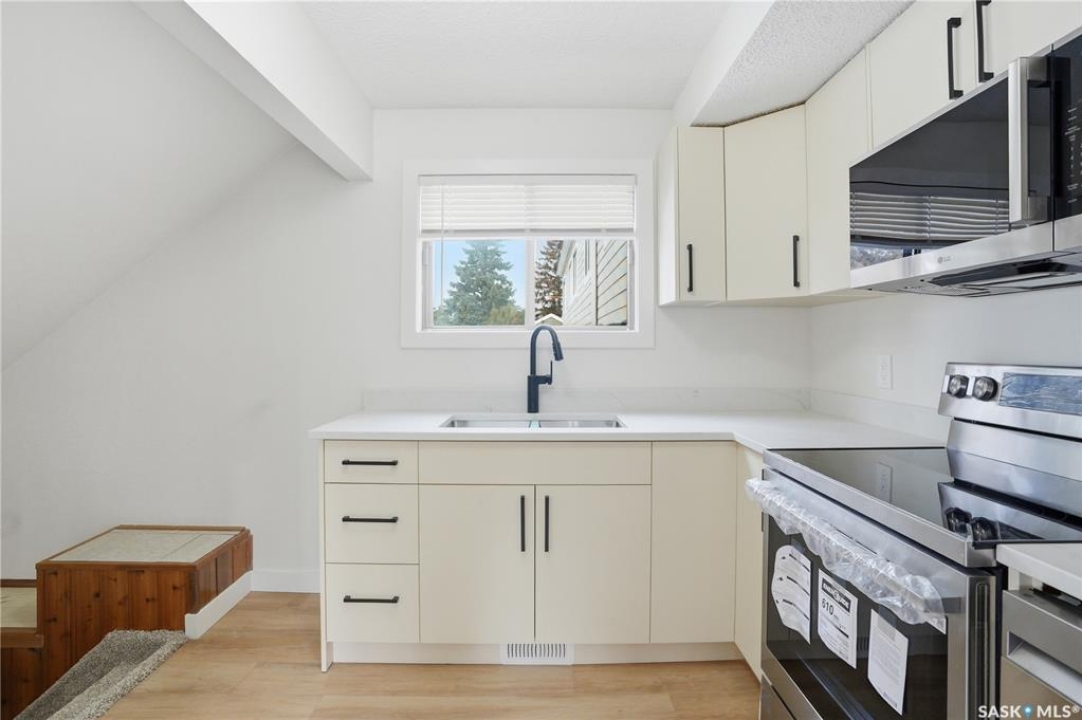 Welcome to 154-227 Saguenay Drive, a beautifully renovated townhouse in the sought-after River Heights neighbourhood. This impressive 1-bedroom, 1,238 sq. ft. two-storey home showcases high-end finishes throughout and offers a perfect balance of style, comfort, and functionality. The bright, open-concept main floor features rich hard-surface flooring and oversized windows that flood the space with natural light. The modern kitchen is thoughtfully designed with upgraded countertops, sleek appliances, and custom oak cabinetry—ideal for both everyday cooking and entertaining. The living and dining areas flow seamlessly, creating a warm and inviting atmosphere. Upstairs, you'll find a spacious loft-style primary bedroom with plenty of room to unwind, along with a beautifully finished 4-piece bathroom complete with contemporary fixtures and a glass-enclosed shower. Situated close to river trails, shopping, and major amenities, this home combines urban convenience with neighbourhood charm. A single detached garage adds extra value, providing security and practicality—especially for Saskatoon winters. Don't miss this opportunity to own a fully renovated, high-end home in one of Saskatoon's most desirable communities. Book your private showing today!