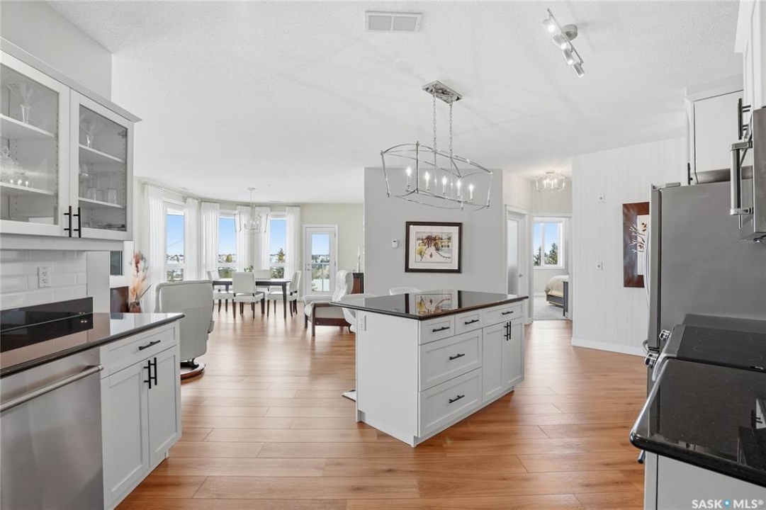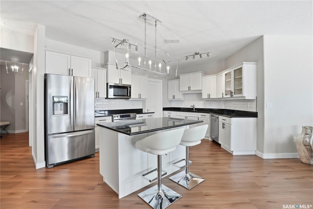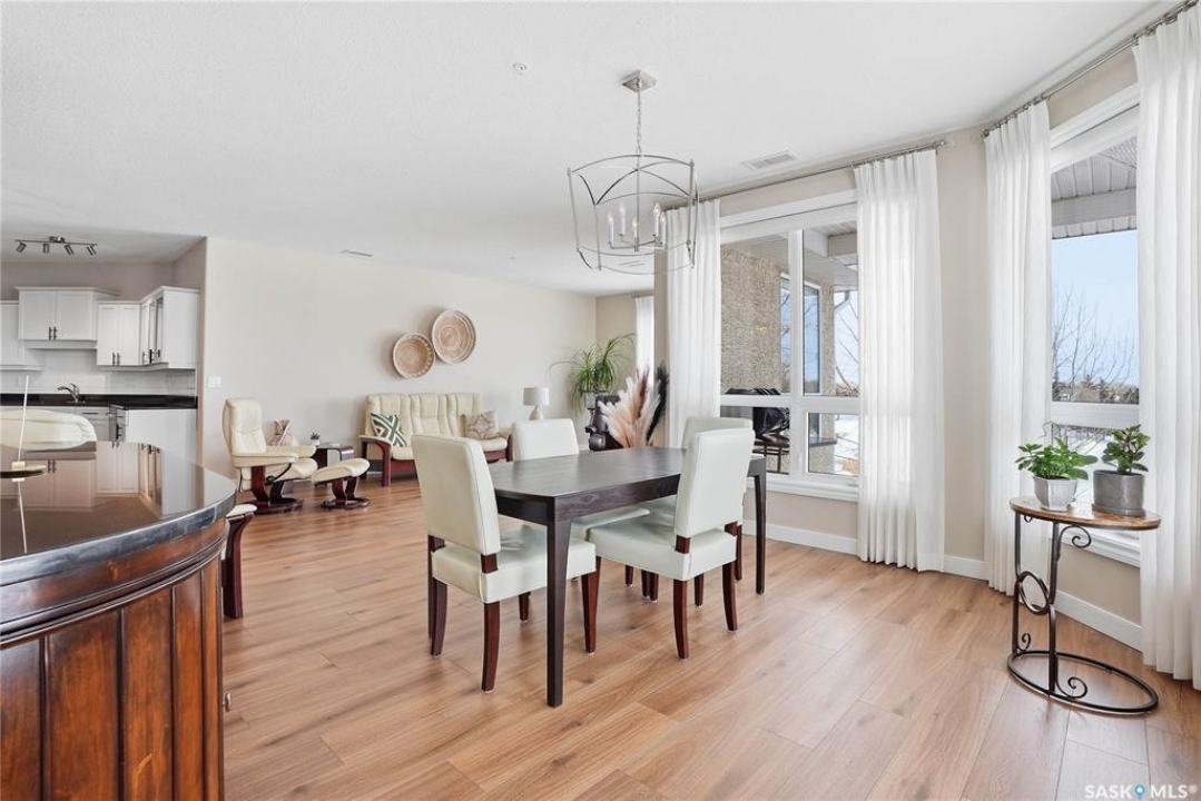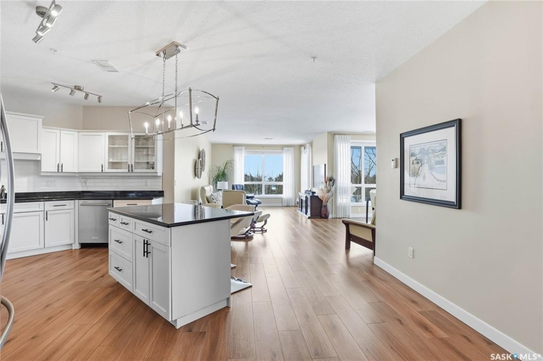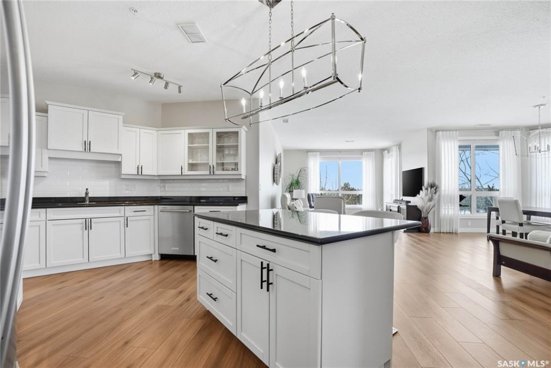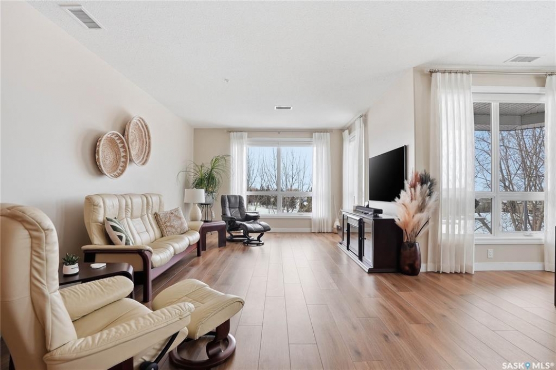 Welcome to Unit 302 – 405 Cartwright Street, an immaculate corner unit condominium overlooking the prestigious Willows Golf & Country Club. Perfectly positioned to capture serene views and exceptional natural light, this residence offers an elevated lifestyle in one of the city's most sought-after communities. Step inside to a beautifully designed open-concept layout featuring soaring 9-foot ceilings, luxury laminate flooring, and an abundance of natural light flowing effortlessly throughout the space. The kitchen is both refined and functional, showcasing granite countertops, a generous island with additional seating, refinished cabinetry accented with black hardware, under-valance lighting, crown moulding, ample pot and pan drawers, a pantry, and a full stainless-steel appliance package including fridge, stove, and a vented hood fan. Seamlessly connected to the kitchen, the living room invites relaxation and entertaining alike, with sliding door access to your private dura deck overlooking Zena #1, complete with a gas line for your BBQ — an ideal setting for quiet mornings or sunset gatherings. The king-sized primary retreat offers blackout blinds, a striking accent wall, and a walk-in closet with custom organizers. The adjoining 3-piece ensuite is thoughtfully appointed with a built-in linen closet, makeup vanity, and tile surround, creating a spa-inspired atmosphere. An additional bedroom, a beautifully finished 4-piece bath with tile flooring and granite countertops, a spacious office, and in-suite laundry with extra storage complete this exceptional home. This unit includes two underground parking stalls and a generous 5' x 10' storage space. Additional features include air conditioning, double-pane PVC windows, newer light fixtures, premium Hunter Douglas blinds package, amenities room with gym area and washing bay in underground parking. An exquisite blend of comfort, style, and golf course living — Unit 302 is a residence you'll be proud to call home.