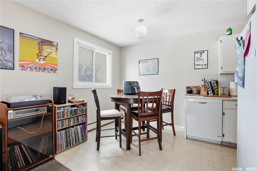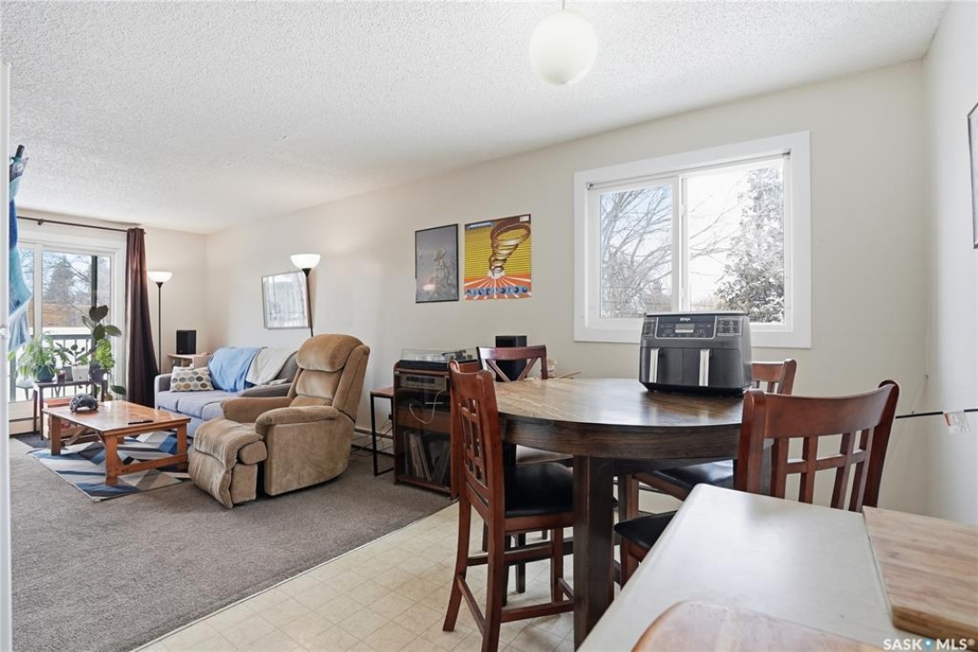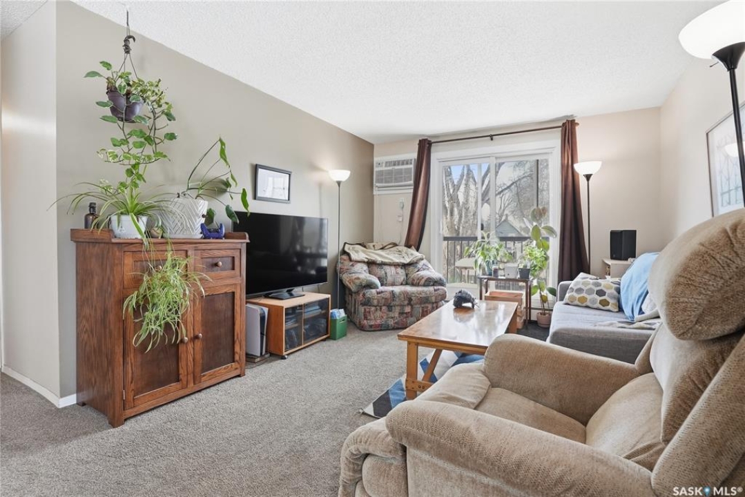 Corner unit in Nutana — walk to Broadway and the river! Welcome to 18-719 10th Street East. This well-maintained two-bedroom condo offers the perfect blend of location, comfort, and charm in one of Saskatoon's most desirable neighbourhoods. Inside, the functional kitchen provides plenty of counter space and opens to a spacious dining area, which flows naturally into a bright, welcoming living room. Patio doors lead to your private balcony — an ideal spot to enjoy fresh air and evening sun. Both bedrooms are generously sized and feature comfortable carpet, with linoleum in the kitchen and other high-traffic areas for added practicality. The 4-piece bathroom is conveniently located near both bedrooms. You'll also appreciate the large in-suite storage room, air conditioning, an exclusive parking stall, and very reasonable condo fees. Laundry facilities are available within the building for added convenience. As a corner unit, you'll enjoy extra natural light and added privacy. The exterior of this charming building has also been fully updated, offering even more value and peace of mind. Don't miss your chance to own in one of Saskatoon's most walkable and vibrant neighbourhoods — call your REALTOR � today to book a private showing!