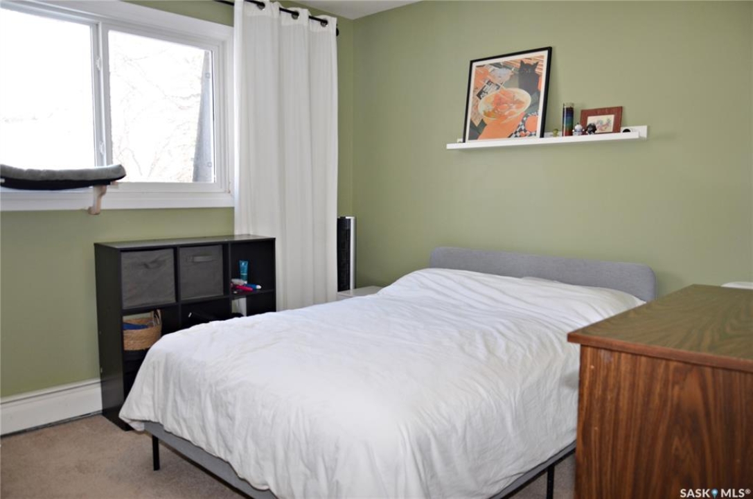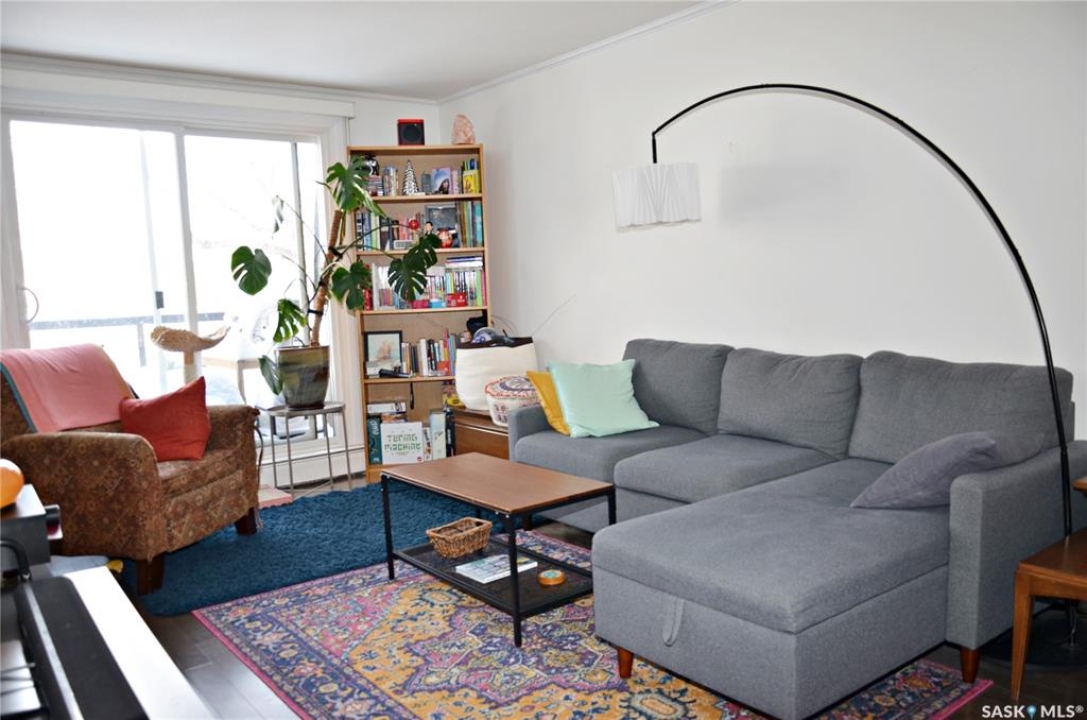 Welcome to 301 920 9th Street East! This fantastic condo is nestled in the highly sought-after Nutana neighborhood, it is a bright and beautifully updated top-floor corner condo that offers 774 square feet of living space, featuring two spacious bedrooms, a full bathroom, and in-suite laundry. The large entryway, crown moulding and abundant storage add to the appeal, while newer windows and a patio door fill the space with natural light. There is a large living room, dining space, a generous primary bedroom, and one dedicated parking stall. Don't miss out on this fantastic opportunity, call today for your private viewing!