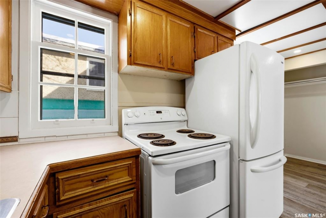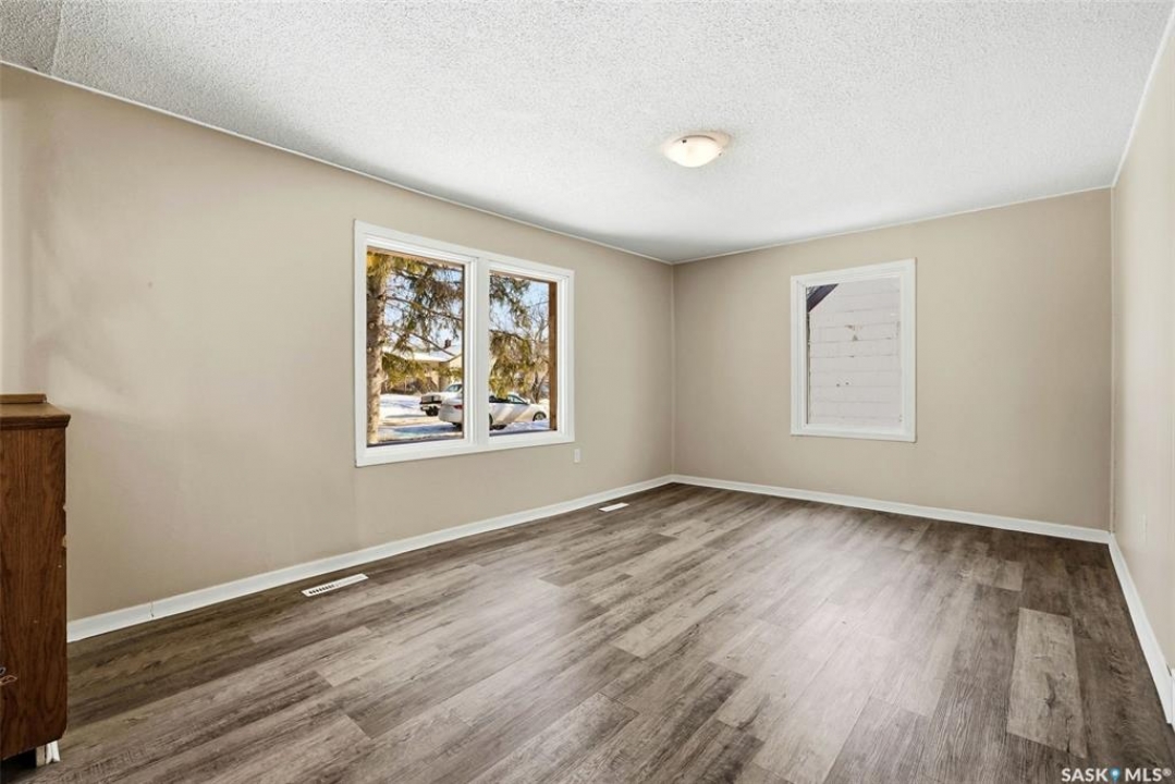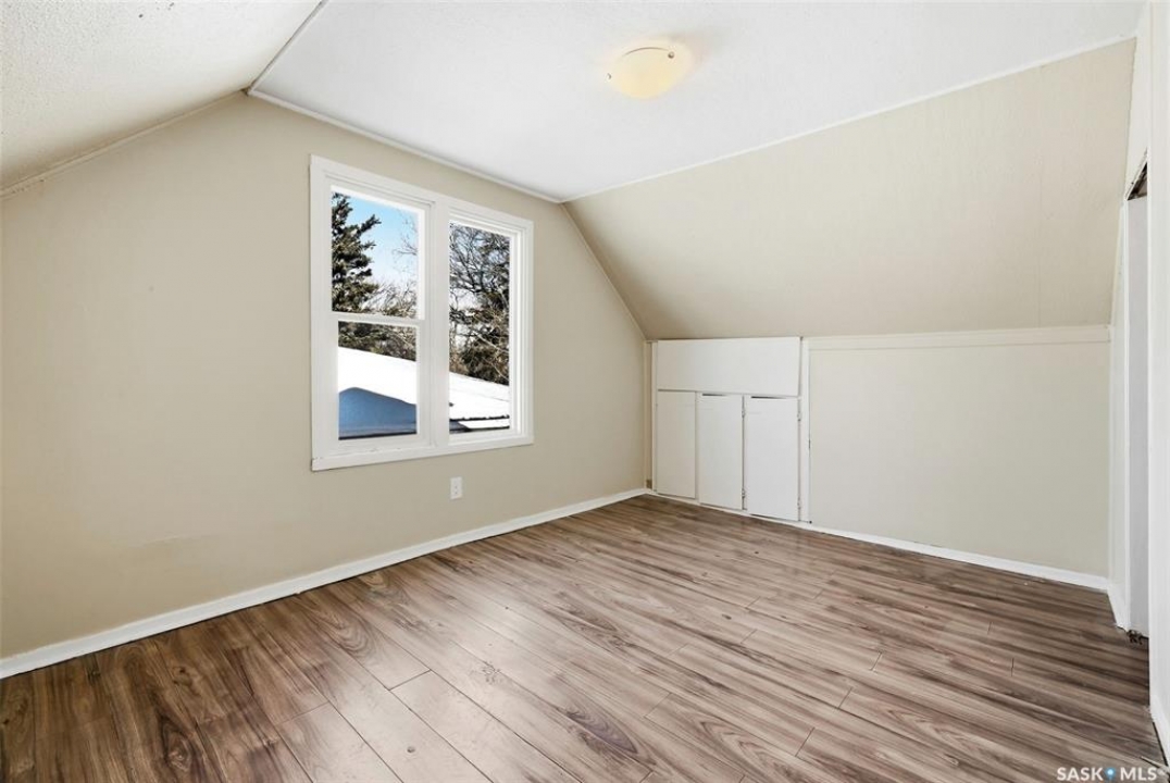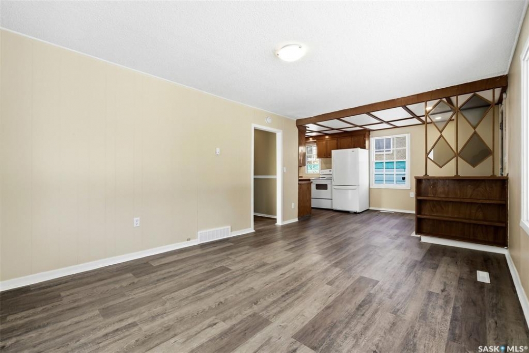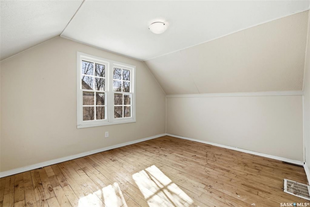 Welcome to this well maintained 1,000 sq ft home offering 3 bedrooms (one on the main floor and two upstairs) and a full bathroom conveniently located on the main level, along with main floor laundry. The bright and inviting interior features light neutral tones, oversized windows, and newer vinyl flooring throughout the main floor, creating a warm and functional living space. This home is situated on a generous 5,218 sq ft fenced lot, and boasts a large backyard, single detached garage with laneway access, and plenty of room to enjoy outdoor living. Ideally located close to schools, parks, and the hospital, with quick access to Lewvan Drive for an easy commute. This property is a perfect starter home or would make an excellent investment opportunity.