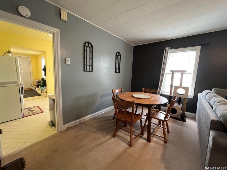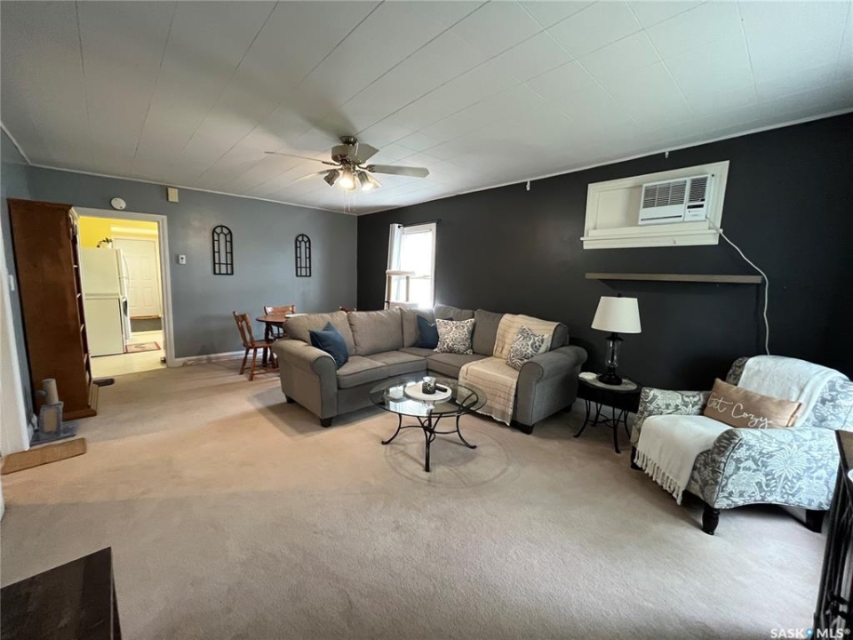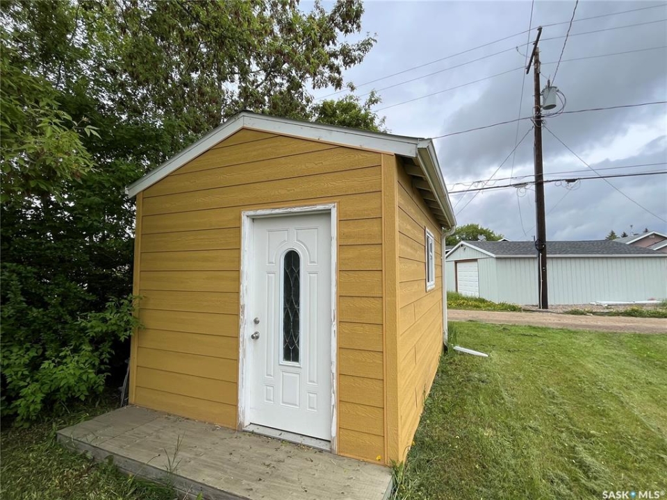 Great Starter Home or Income Property – Prime Location! This immaculately maintained 868 sq. ft. bungalow is the perfect starter home or investment opportunity. Conveniently located within walking distance to many amenities, everything you need is situated on one level for easy living. The home features bright, open living spaces with two comfortable bedrooms, a spacious living room, and a well-appointed kitchen complete with newer appliances, a pantry, and a built-in dishwasher. The shared laundry/bathroom adds to the home's functional layout. Additional highlights include a basement ideal for extra storage, a durable tin roof approximately 10 years old, and a hot water tank replaced in January. Exterior of the home features stretching lilacs from the front of the property to the rear with large shed that could double for storage, garden supplies or ideal she-shed. Move-in ready and full of potential — don't miss this fantastic opportunity!