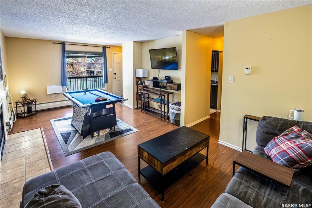 Charming 1-bedroom, 1-bathroom condo featuring a cozy wood-burning fire place in the living room. Bright eat-in kitchen-- perfect for everyday living. Step outside to your private deck with a built-in storage shed, ideally positions facing the courtyard and your convenient parking stall. A great opportunity for first-time buyers, downsizers, or investors seeking low-maintenance living in a welcoming setting! Immediate possession is available!