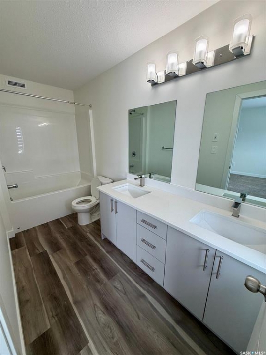 Welcome to 2978 Green Brook Road in the sought-after Greens on Gardiner! This 2023-built, 2-storey detached home offers 1,825 sq. ft. above grade plus a fully finished regulation basement suite with separate entry—an exceptional opportunity for multi-generational living or mortgage-helping income. The bright main floor features durable vinyl plank flooring, a spacious living room, dining area, and a modern kitchen complete with quartz countertops, large island, stainless steel appliances, and plenty of cabinetry. A convenient 2-pc bath completes the main level. Upstairs you'll find a versatile bonus room, second-floor laundry, two well-sized bedrooms, a full 4-pc bath, and a generous primary suite with a 5-pc ensuite. The fully finished basement includes its own kitchen, living and dining areas, two bedrooms, 4-pc bath, and laundry—professionally developed as a regulation suite for added value and flexibility. Built with wood frame construction, vinyl exterior, asphalt shingles, full concrete basement, natural gas heating, central A/C, and sump pump. Situated on a 3,017 sq. ft. lot with fenced yard, concrete driveway, and double attached garage, offering a total of 4 off-street parking spaces. Located close to parks, schools, and all east-end amenities, this modern home delivers space, style, and income potential in one of Regina's most desirable neighbourhoods.