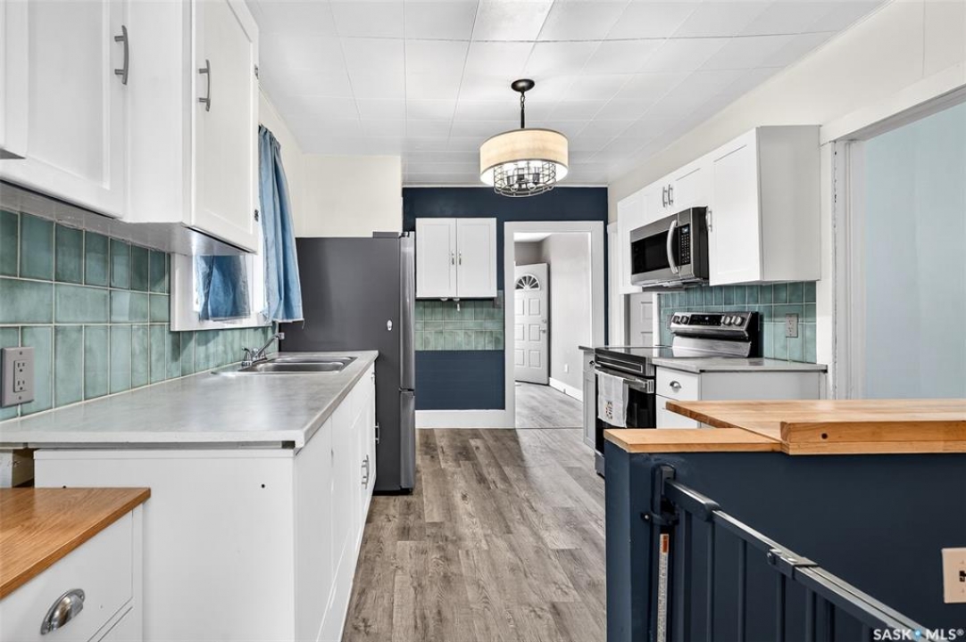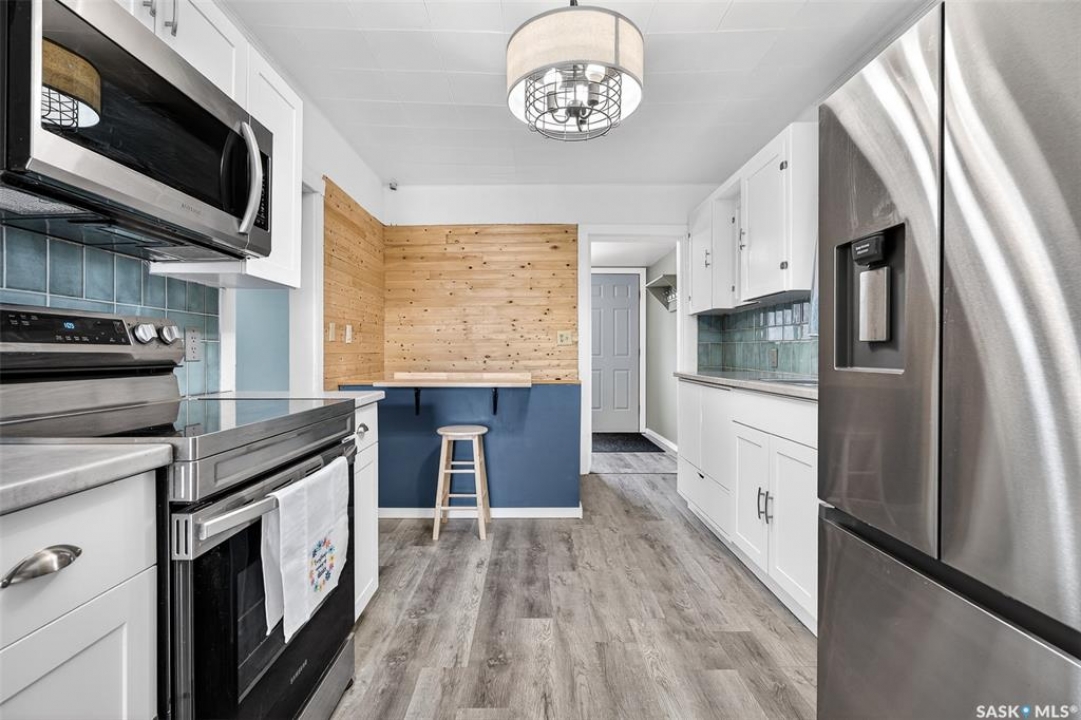 CUTE AS A BUTTON! And MOVE RIGHT IN! This charming, move-in-ready home is waiting for its new owners or investors! Has been extensively updated throughout, including front siding, windows, flooring, a beautifully renovated kitchen with newer appliances, furnace, hot water heater, electrical, and much more. FRESHLY PAINTED THROUGHOUT! Ideally located within walking distance to local sportsfields, as well as convenient amenities such as Fine Foods Grocery, Shoppers Drug Mart, and Maple Leaf Bakery, this home offers both comfort and convenience. The bright and cozy living room welcomes you in and flows seamlessly into the newer kitchen, creating an inviting space for everyday living. Primary bedroom is at the front of the home, while the second den/bedroom offers convenient flexibility, from office to dining room. A modernized 4-piece bathroom, along with main-floor laundry/mudroom makes this home a treat to view. Offers a spacious, private deck—perfect for summer BBQs. The lower level features an updated stairwell, as well as versatile space ideal for a den or recreation room, along with ample storage. Completing this attractive package is a fully fenced backyard, off-street RV parking, and a single detached garage with an immaculate interior. Don't miss this fantastic opportunity!