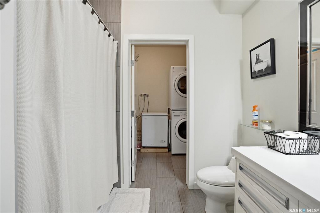 Welcome to this bright and beautifully maintained top-floor Ginger Loft unit offering 2 bedrooms and 1 full bathroom in a prime location! The open-concept layout creates a spacious and inviting atmosphere, perfect for both relaxing and entertaining. The living and dining areas flow seamlessly together, with large windows bringing in plenty of natural light and access to a private balcony. In the livingroom over the stairs, you will find a space dedicated to extra storage. The functional kitchen overlooks the main living space, making it easy to stay connected with guests or family. Located just minutes from shopping centres, restaurants, and the University of Saskatchewan, this home is perfect for students, professionals, or investors alike. Residents enjoy access to an impressive clubhouse featuring a fully equipped gym, games area, pool, and hot tub — bringing resort-style amenities right to your doorstep. Call your favourite Realtor to book your private showing!