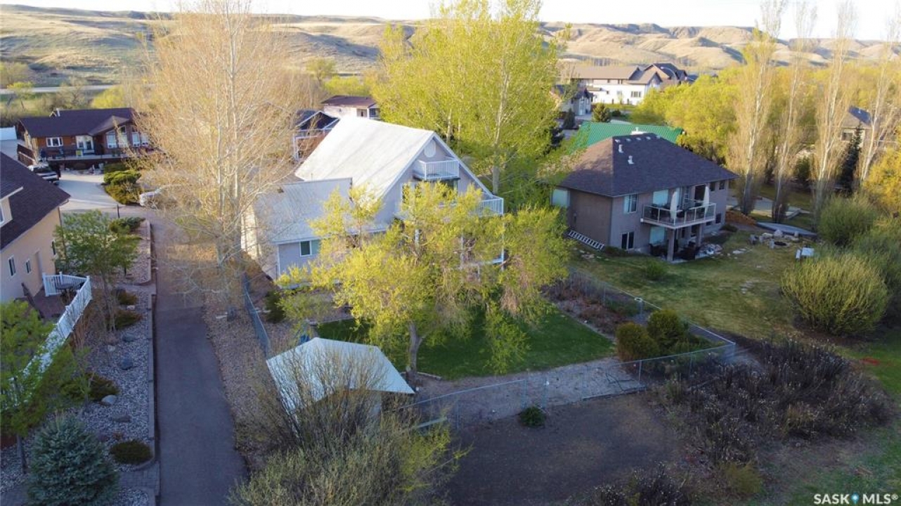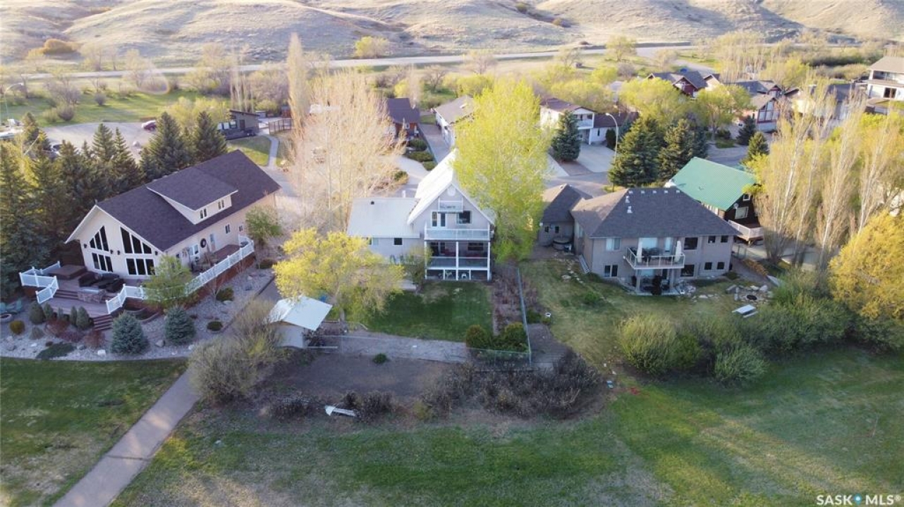 Escape the hustle of city life and embrace the relaxed rhythm of lake living at 130 Marine Drive in Saskatchewan Landing Provincial Park, just 35 minutes north of Swift Current. Enjoy fantastic south-facing views of Lake Diefenbaker from your kitchen window or from one of three decks. This spacious home offers 2,468 sq ft of living space over two levels plus a full basement. The bright open-concept main floor features a modern kitchen with newer appliances, a generous dining area, and an inviting living room designed for gathering. Two bedrooms are located on this level, including the primary suite with a 3-piece ensuite, along with a 4-piece main bath and convenient main floor laundry. Garden doors lead to a fully screened, covered south deck — the perfect place for morning coffee or evening sunsets. Upstairs, the expansive loft is currently used as family and recreation space, with garden doors leading to a private deck and access to a third elevated deck — WOW, the views! This versatile space could easily be developed into additional bedrooms if desired. The full basement offers a large family/rec room kept cozy year-round with in-floor heat and includes a bathroom rough-in for future development. The double attached garage also features in-floor heat for added comfort. Outside, enjoy a fully landscaped yard with underground sprinklers, mature trees and shrubs, perennials, lawn space, and a garden area. The provincial park lease is just $1,220 per year. With today's building costs, achieving this size and quality at this price per square foot would be extremely difficult — making this an exceptional opportunity. Fishing, boating, hiking, and golf are all minutes away. Life truly is better at the lake. Call your REALTOR � today to book your private showing. No GLE.