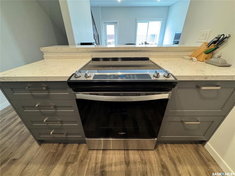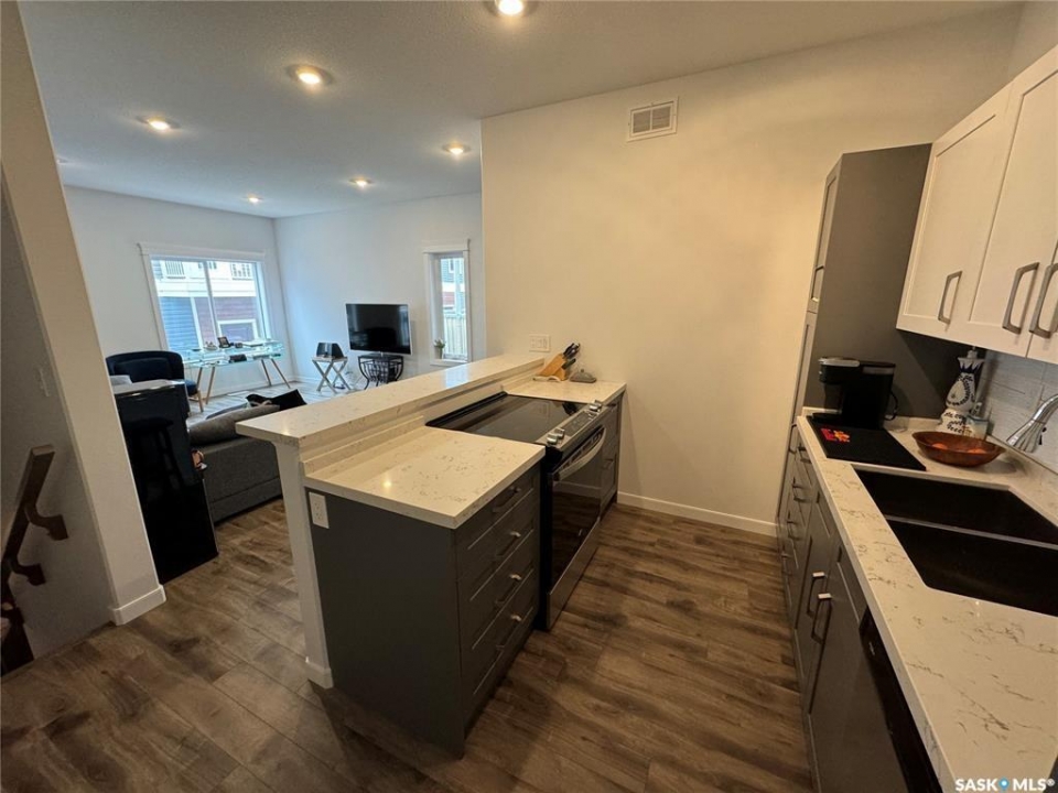 Clean, Modern Townhouse-Style Condo Offering Exceptional Value Welcome to this beautifully finished townhouse-style condo with quick access to Riversdale, the South Saskatchewan River, and minutes from Downtown. Combining modern design, functionality, and outstanding value, this home is perfect for first-time buyers, professionals, or investors. The main floor showcases a stylish two-tone kitchen with soft-close cabinetry, white quartz countertops throughout, stainless steel appliances, and energy-efficient recessed LED lighting. Premium Chestnut millwork adds warmth and character to the custom staircase railings. Upstairs features two spacious bedrooms, including a large primary with a walk-in closet and custom organizer, along with a contemporary three-piece bathroom and convenient stacked washer and dryer. The basement is neatly roughed-in and ready for future development, making it easy to add additional living space and a third bathroom leaving room for even more future opportunity to build equity and enhance long-term value. This is a fantastic opportunity to own a move-in ready home in a very central location of Saskatoon.