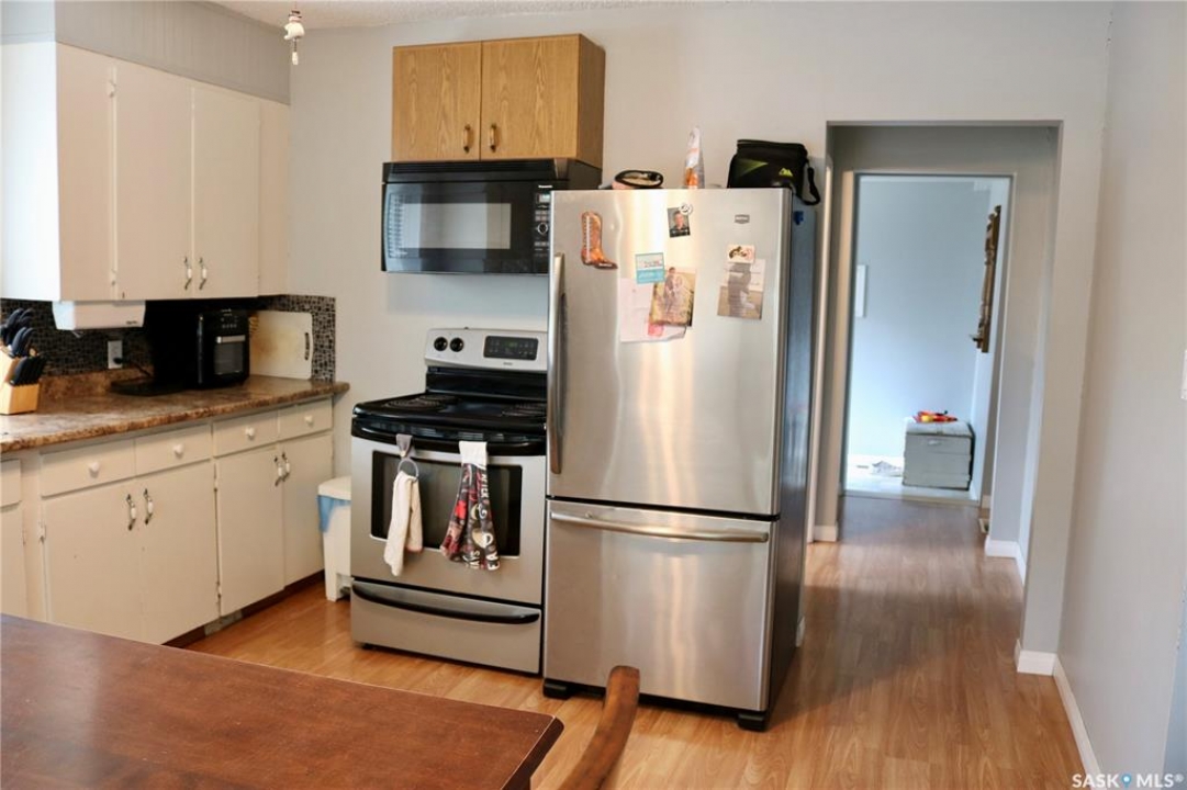 Welcome to 704 Ogilvie! A great property that is both affordable and move in ready. The back entrance has lots of space for your shoes and coats. Nicely renovated bathroom is next, with a beautiful tile surround and soaker tub. The eat-in kitchen has updated countertops and nice stainless appliances. The living room is huge with access to the front door and covered patio. Next is the large primary bedroom with laundry. Upstairs has two more good sized bedrooms, perfect for the kids or guests. With its updated windows and siding, the exterior is in great shape. You'll love the gazebo! It is a great place to sit outdoors, bbq and enjoy the hot tub too! The single, insulated garage is huge bonus! Lots of parking, including a front driveway and space beside the garage for your RV, complete with electrical plugs. This home has everything you need. Contact your agent to view!