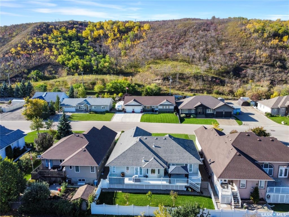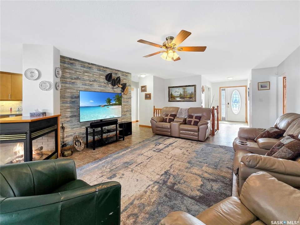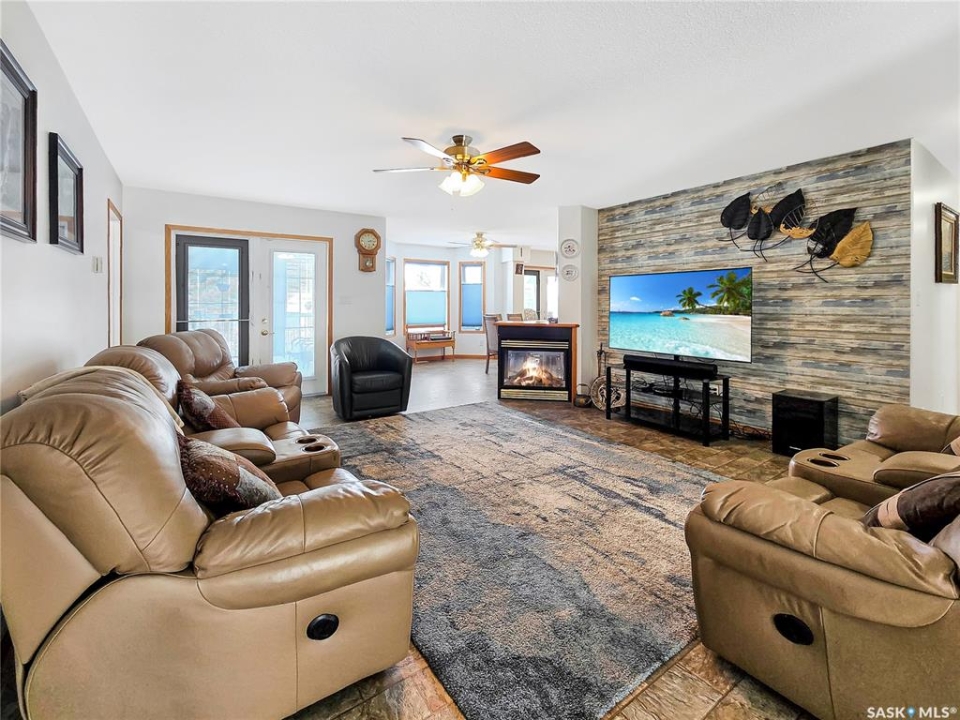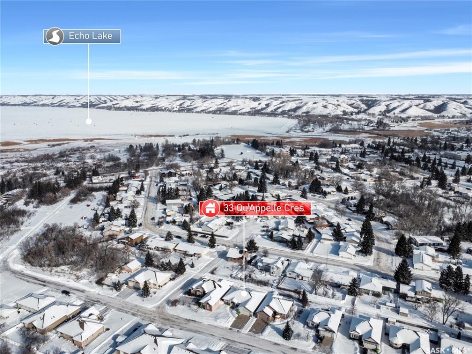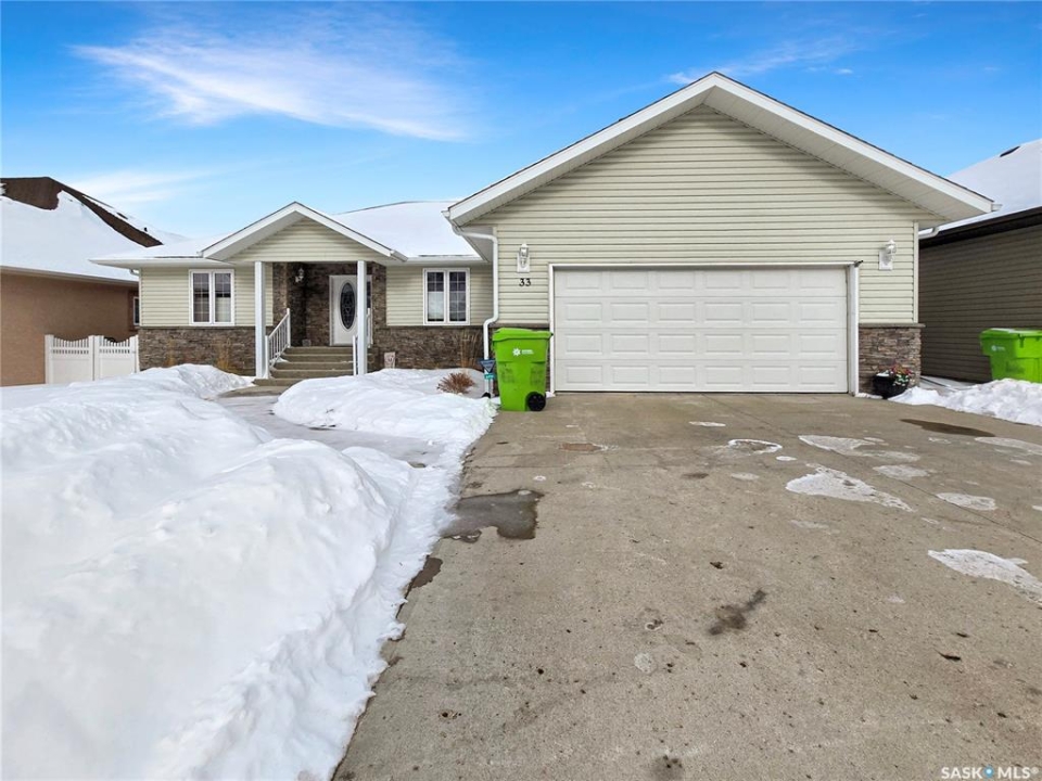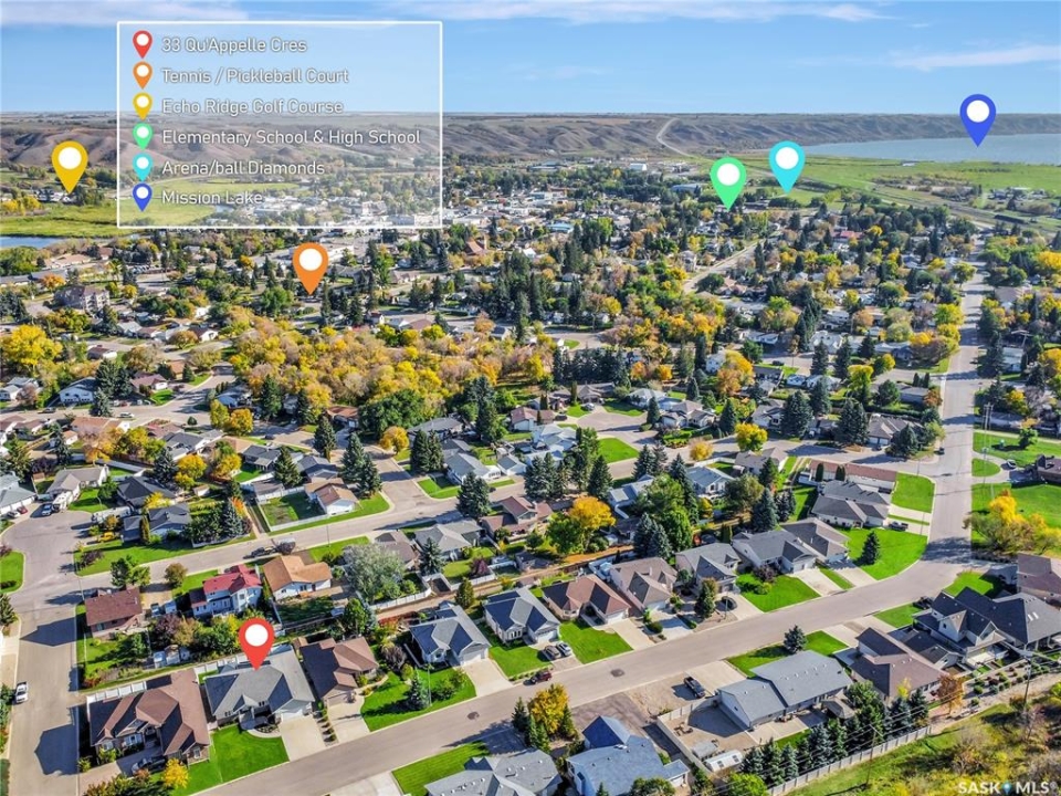 Built in 2008, this impressive, fully finished home offers over 2,000 sq. ft. of thoughtfully designed main floor living space. Nestled in a highly sought-after area of the beautiful Qu'Appelle Valley, this property perfectly blends comfort, functionality, and unique style. Step inside to find a spacious den just off the large main entrance, a versatile area ideal for a home office, cozy sitting room, reading nook, or flexible space tailored to your lifestyle. The main floor showcases a bright, open-concept kitchen and dining area that flows seamlessly into the living room. A cozy three-sided natural gas fireplace defines the space while adding warmth and ambiance throughout. Convenient main-floor laundry enhances the home's practical layout. The generous primary suite impressively measures at 20' x 12' (excluding the ensuite). The five-piece ensuite features a walk-in jetted tub, separate shower, and a spacious walk-in closet. Two additional well-sized bedrooms provide comfortable accommodations for family, guests, or the flexibility to create additional workspace. Downstairs, the fully developed basement offers an expansive open area perfect for entertaining or relaxing, complete with a pool table included, making it truly move-in ready for hosting family and friends. Outside, the home boasts excellent curb appeal with low-maintenance vinyl siding accented by attractive stone details. A double attached garage provides ample parking and storage space. If you're searching for space, versatility, and a stunning valley location, 33 Qu'Appelle Crescent is a must-see.